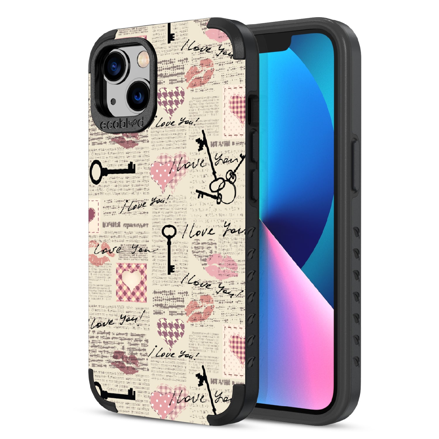 Unlock the romance with the Key to My Heart design on our Mojave rugged and compostable iPhone 13 phone case. This scrapbook-inspired pattern, adorned with keys and sweet kisses, captures the essence of a cherished love story. Your phone becomes a treasure chest of memories, each key and kiss telling a tale of affection.