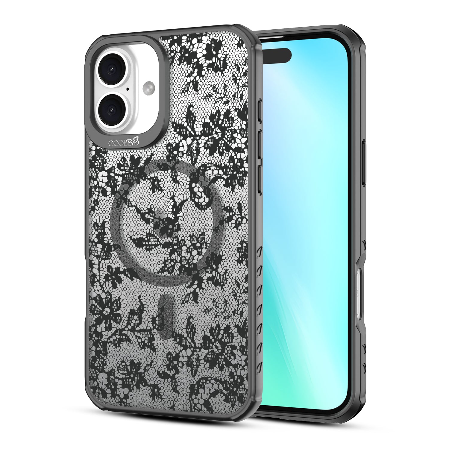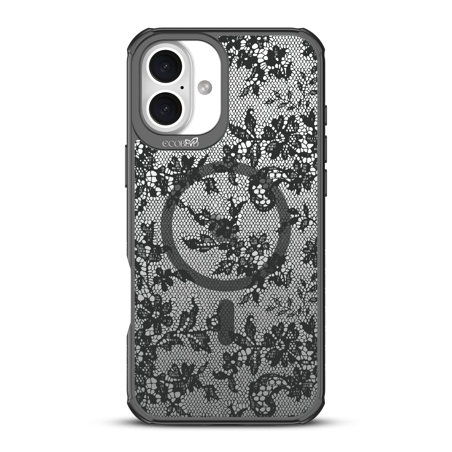 Like a lace-up corset, the Lace Me Up design on our Revive clear iPhone 16 Plus phone case cinches your phone in all the right places, adding a touch of sophistication and refinement in a French chantilly trim.