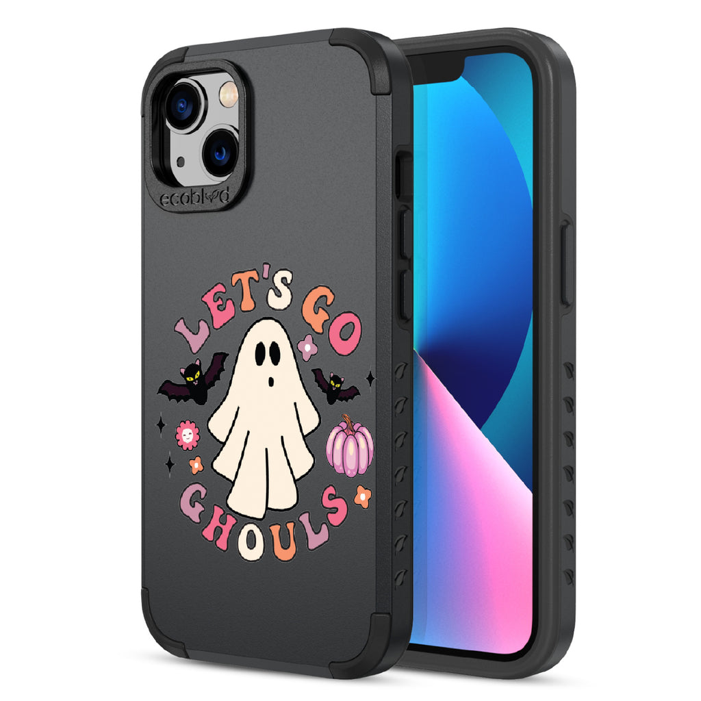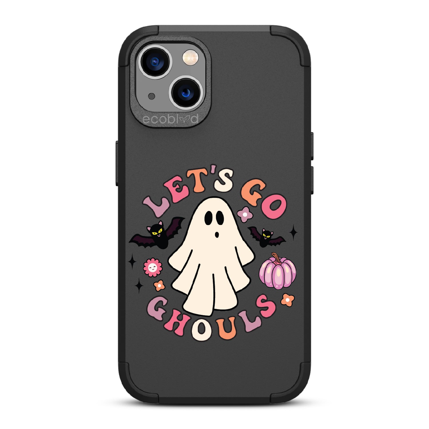 You'll be the envy of your witches' circle as the Let's Go Ghouls design on our Mojave rugged and compostable iPhone 13 phone case turns your iphone into a spooky Halloween haunt with ghosts, bats, and pumpkin. Available on our bold Midnight Black or vibrant Wildflower Pink colorways.