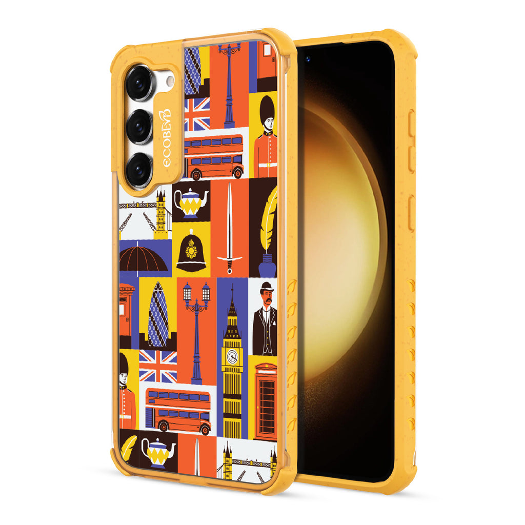 Climb onto the top deck of your own tour bus with the London Town design on our Laguna clear Galaxy S23 phone case, where every box offers a new sight to be seen. From the grand silhouette of Big Ben to the solemn beauty of the Royal Guards, and the quaint charm of the traditional red telephone box, this design is your all-access pass to the city’s most storied landmarks.