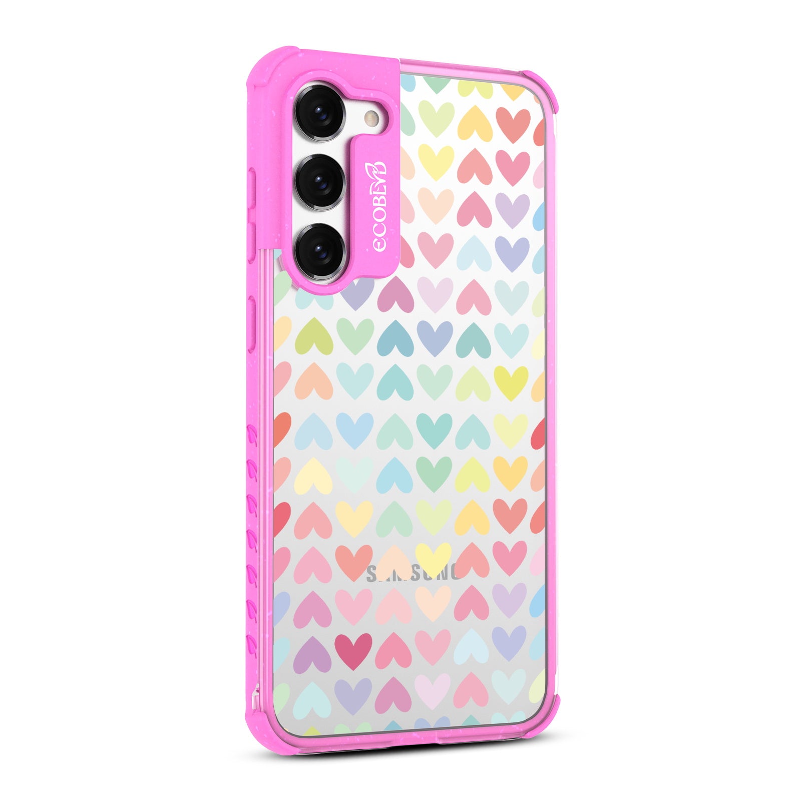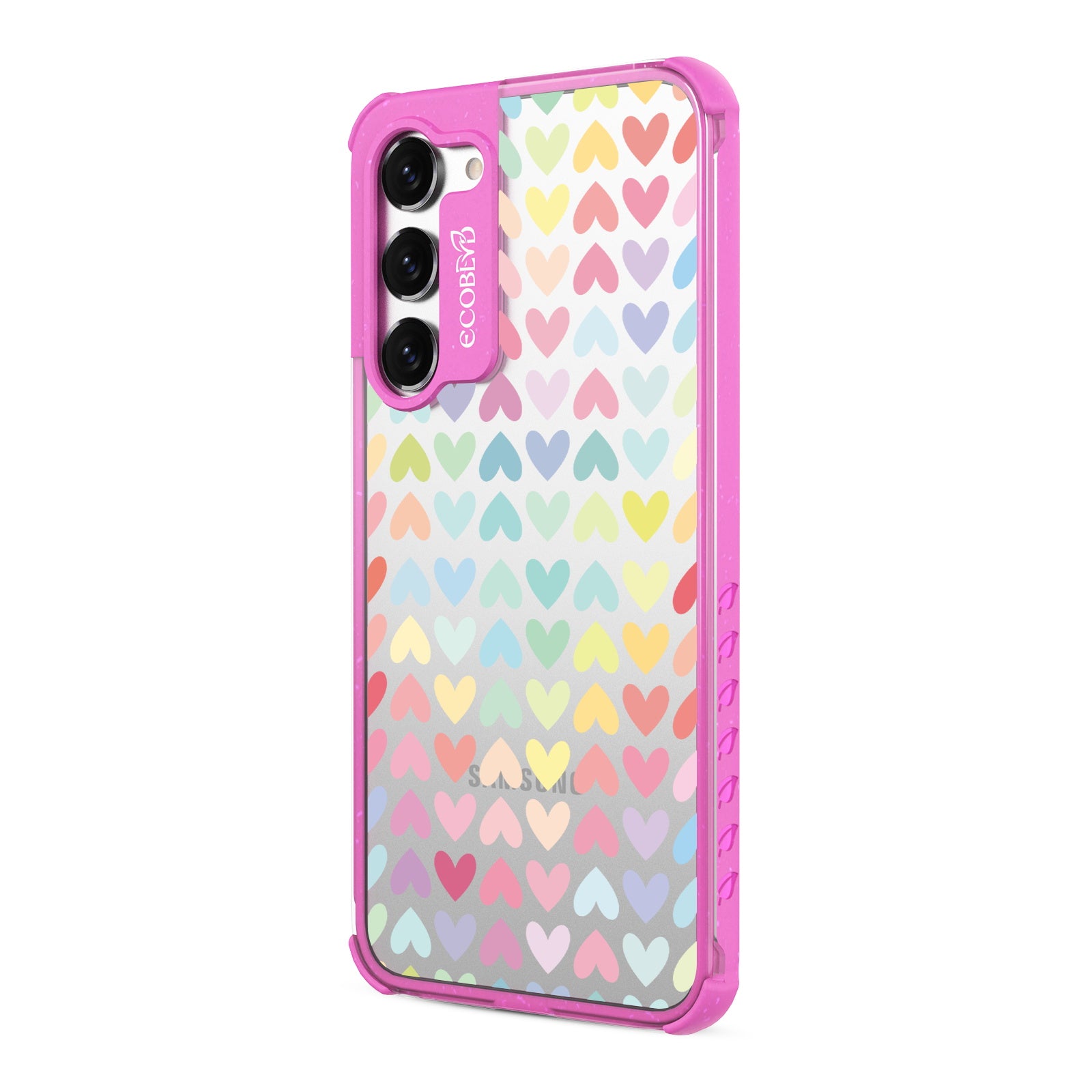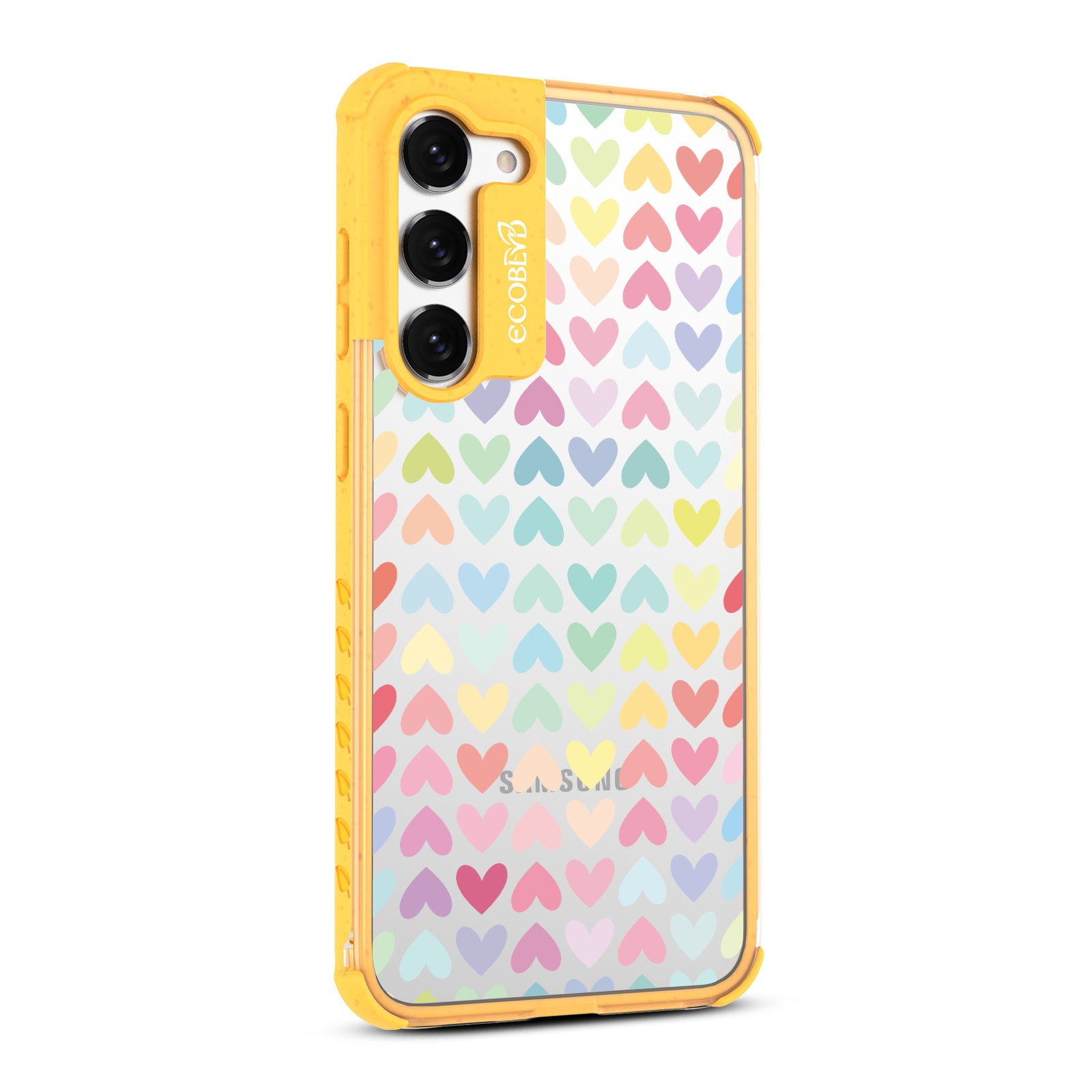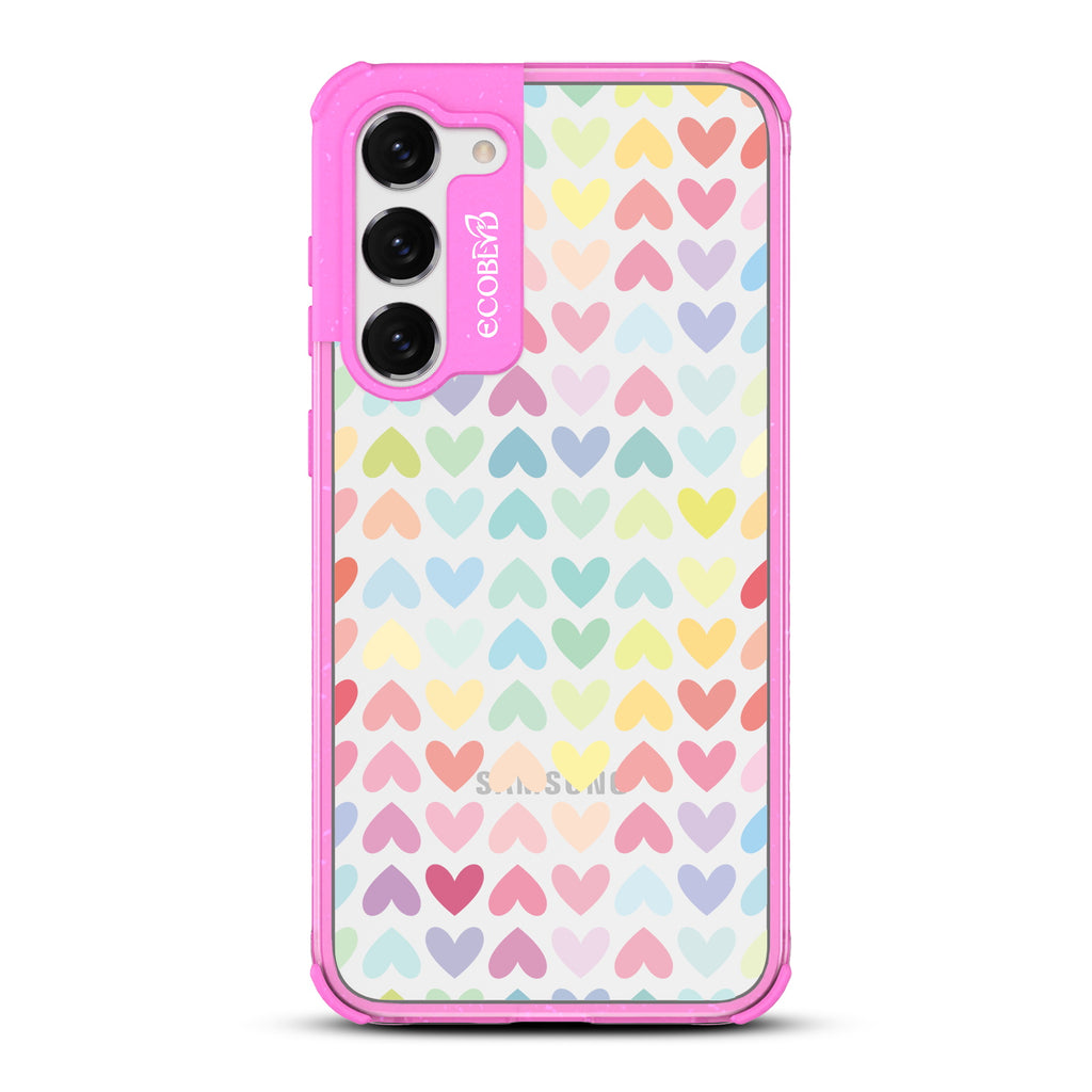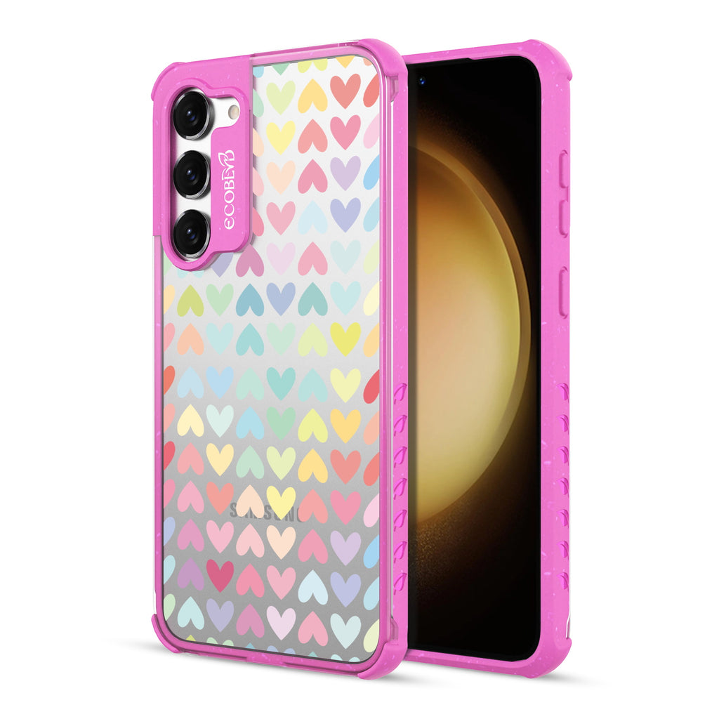 Let your phone spread love and equality with the colorful hearts of our Love Is Love design on our Laguna clear Galaxy S23 phone case, available in five vibrant colorways: Midnight Black, Cascade Blue, Foliage Green, Illuminating Yellow, and Wildflower Pink.