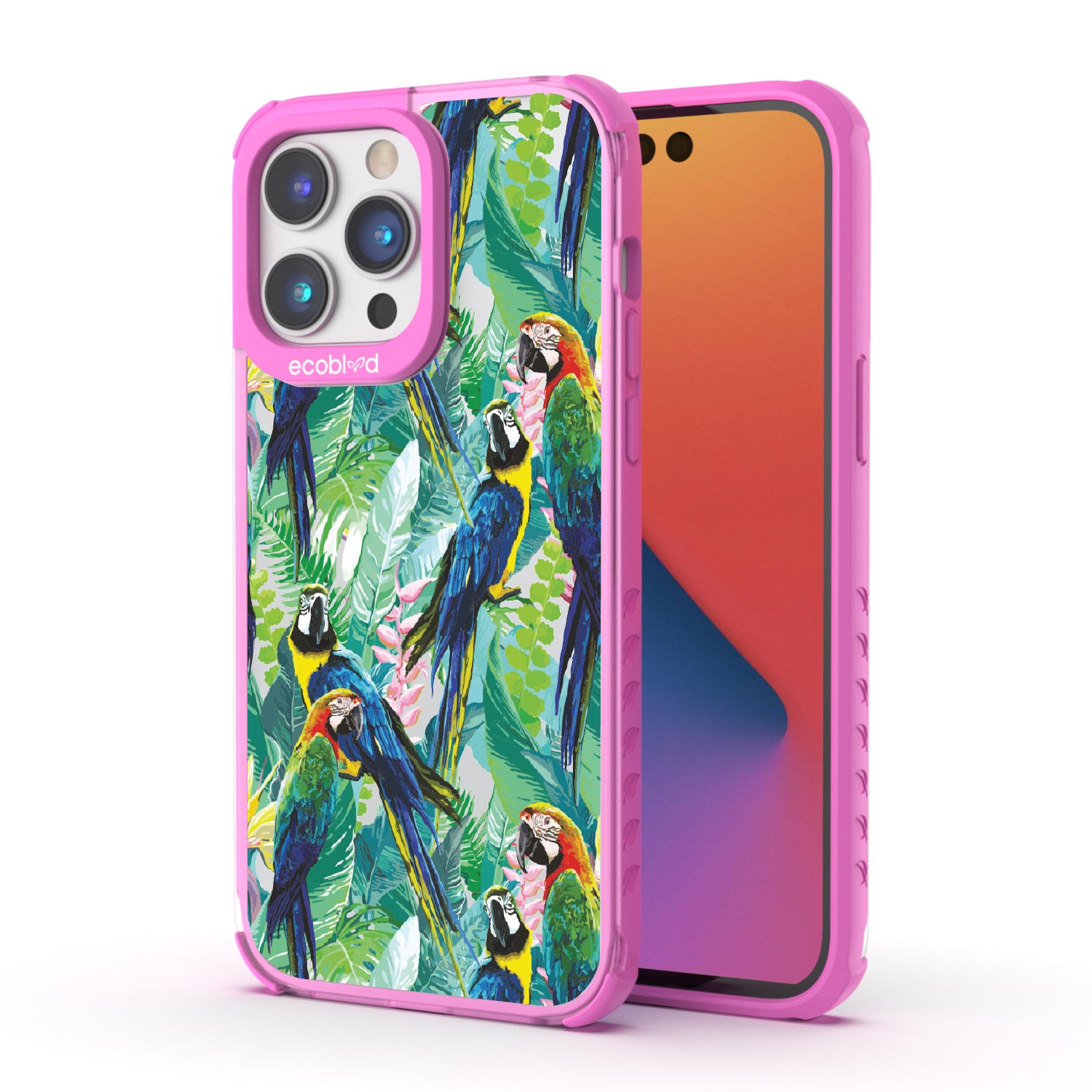 Immerse yourself in the untamed allure of the tropical jungle as the captivating watercolor collage of macaws takes flight on the Macaw Medley design, an exclusive design crafted for the Laguna clear iPhone 14 Pro Max phone case. Embrace a radiating sense of freedom, adventure, and unapologetic self-expression while supporting ocean conservation efforts. Macaw Medley is a visual duet, a pairing of colorful birds in a harmonious melody that will transport you to a tropical paradise in five captivating colors: Midnight Black, Cascade Blue, Foilage Green, Illuminating Yellow, and Wildflower Pink. So spread your wings, unleash your inner wildness, and let Macaw Medley be your guide in the pursuit of unforgettable experiences!