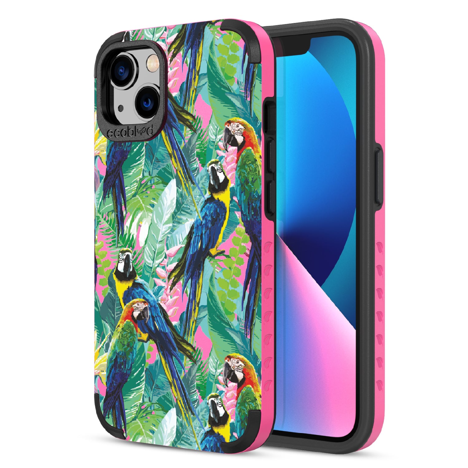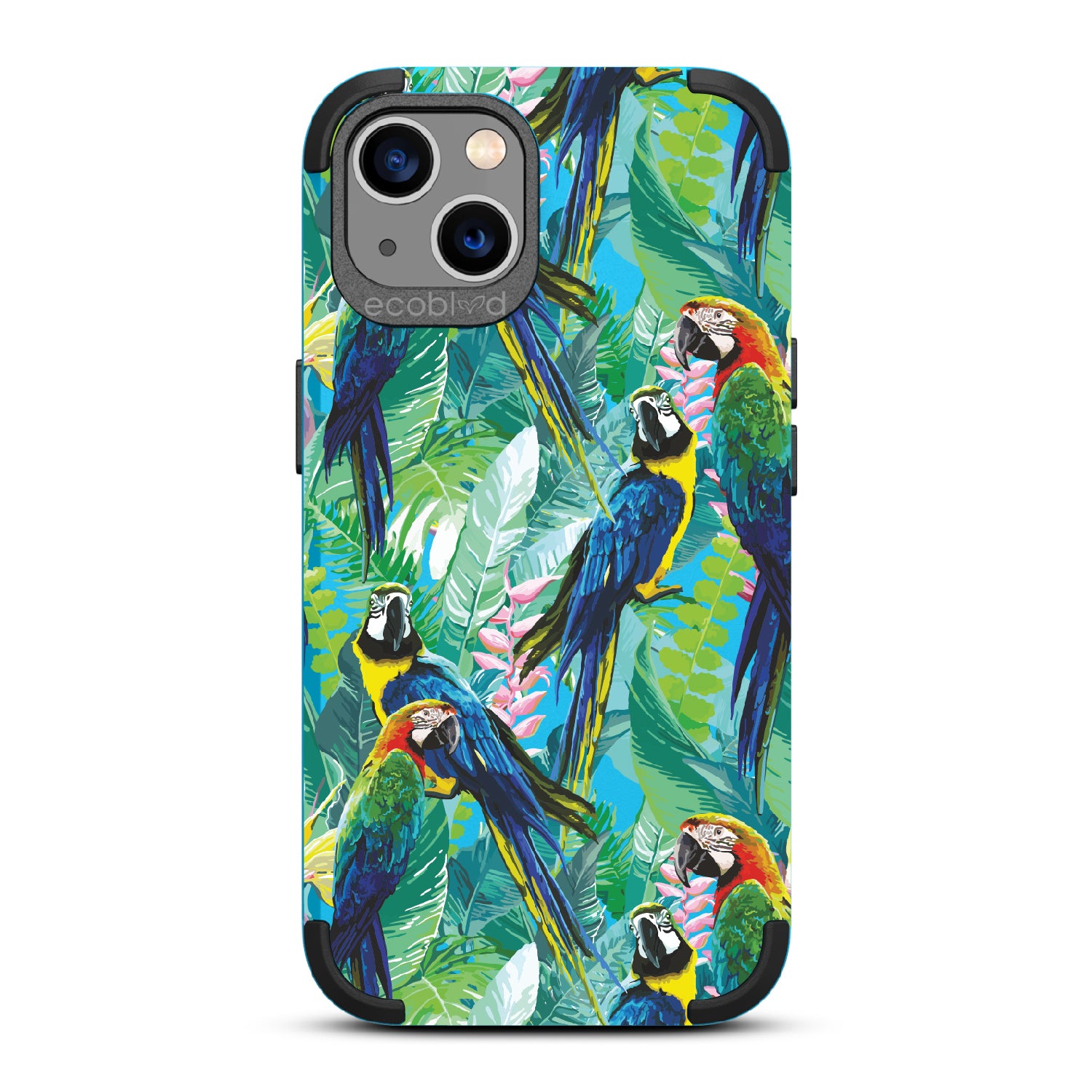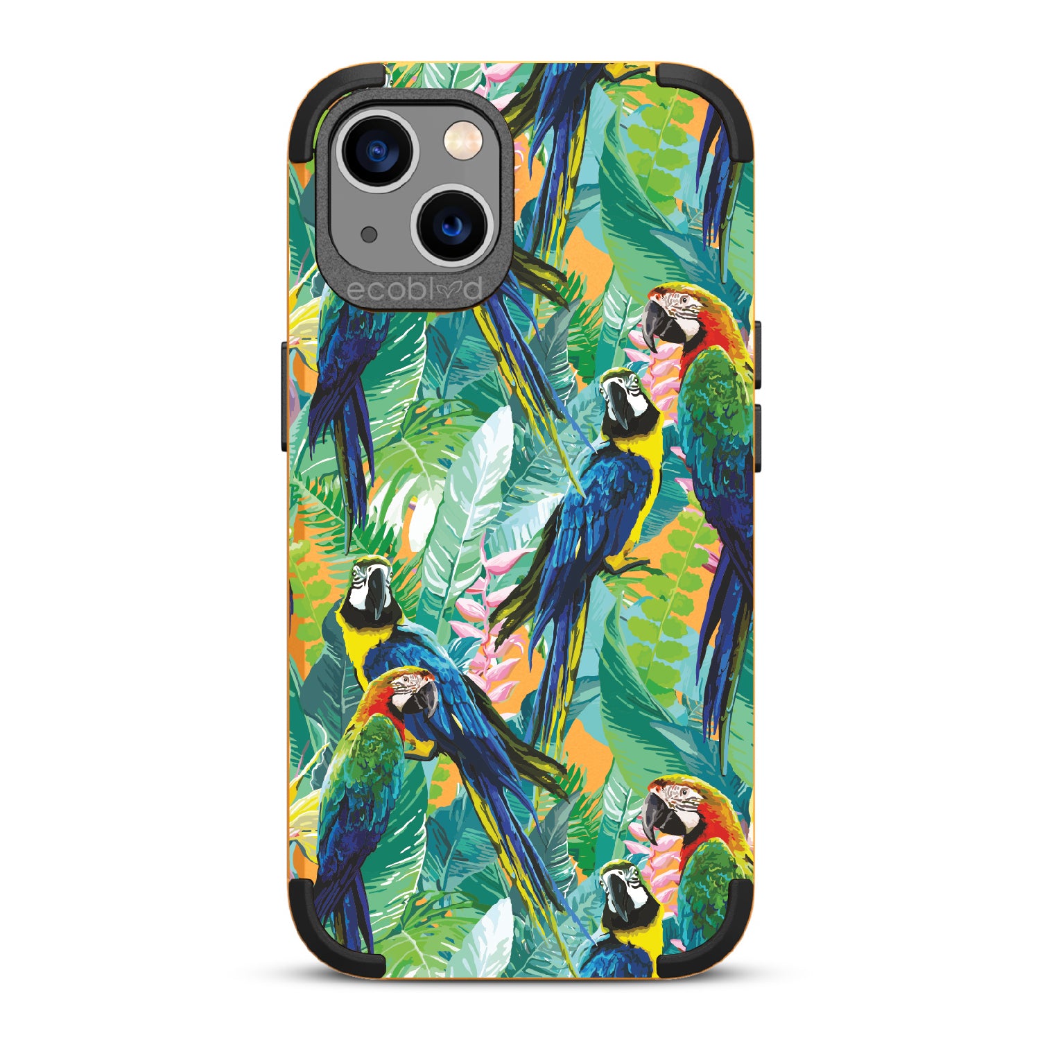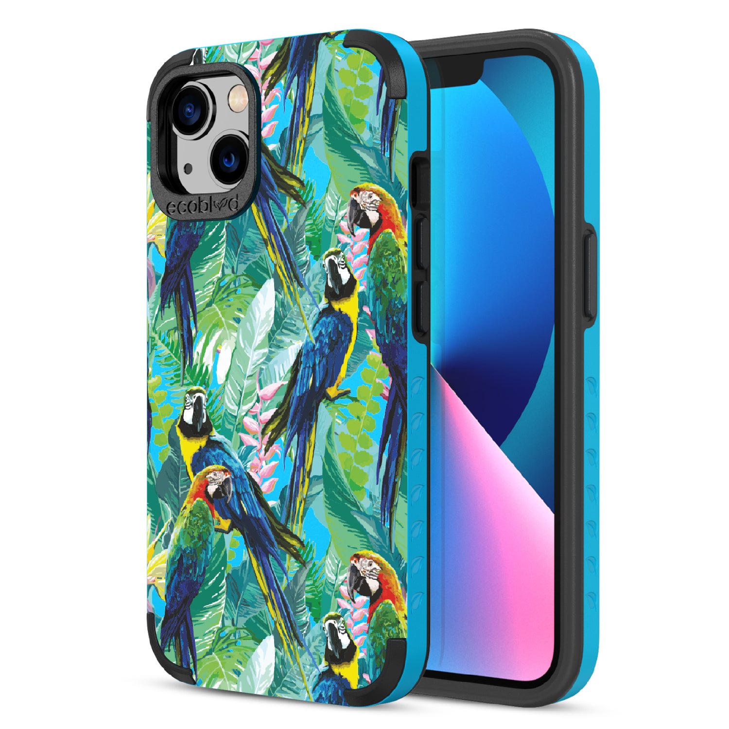 Immerse yourself in the untamed allure of the tropical jungle as the captivating watercolor collage of macaws takes flight on the Macaw Medley design on our Mojave rugged and compostable iPhone 13 phone case. Embrace a radiating sense of freedom, adventure, and unapologetic self-expression while supporting ocean conservation efforts. Macaw Medley is a visual duet, a pairing of colorful birds in a harmonious melody that will transport you to a tropical paradise in five captivating colors: Midnight Black, Cascade Blue, Foilage Green, Illuminating Yellow, and Wildflower Pink. So spread your wings, unleash your inner wildness, and let Macaw Medley be your guide in the pursuit of unforgettable experiences!