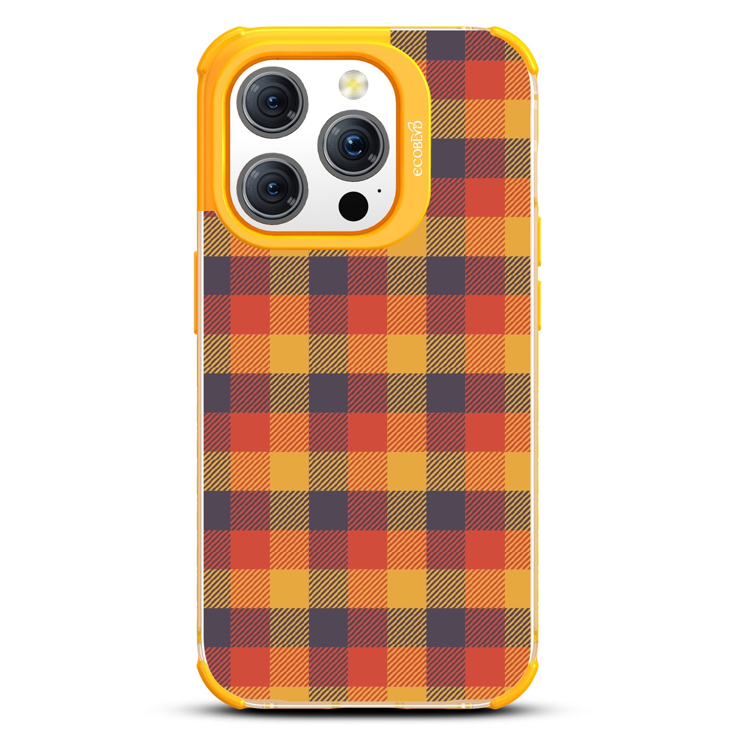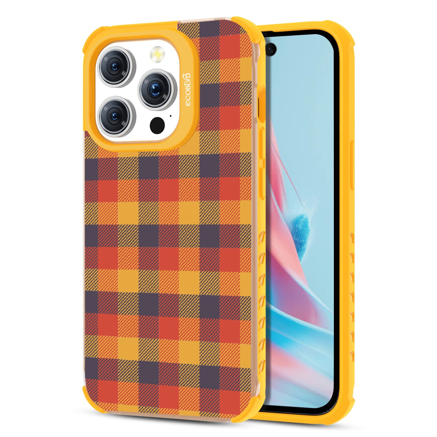 The Maple & Mahogany design on our Laguna clear iPhone 15 Pro case pays homage to the woodworker's art by infusing the spirit of fine wood grains into a classic plaid pattern. With this case on your phone, you'll carry the natural charm of autumn wherever you go. Like the timeless beauty of maple and mahogany, this design elevates your phone to an accessory that captures the warmth and allure of the season.