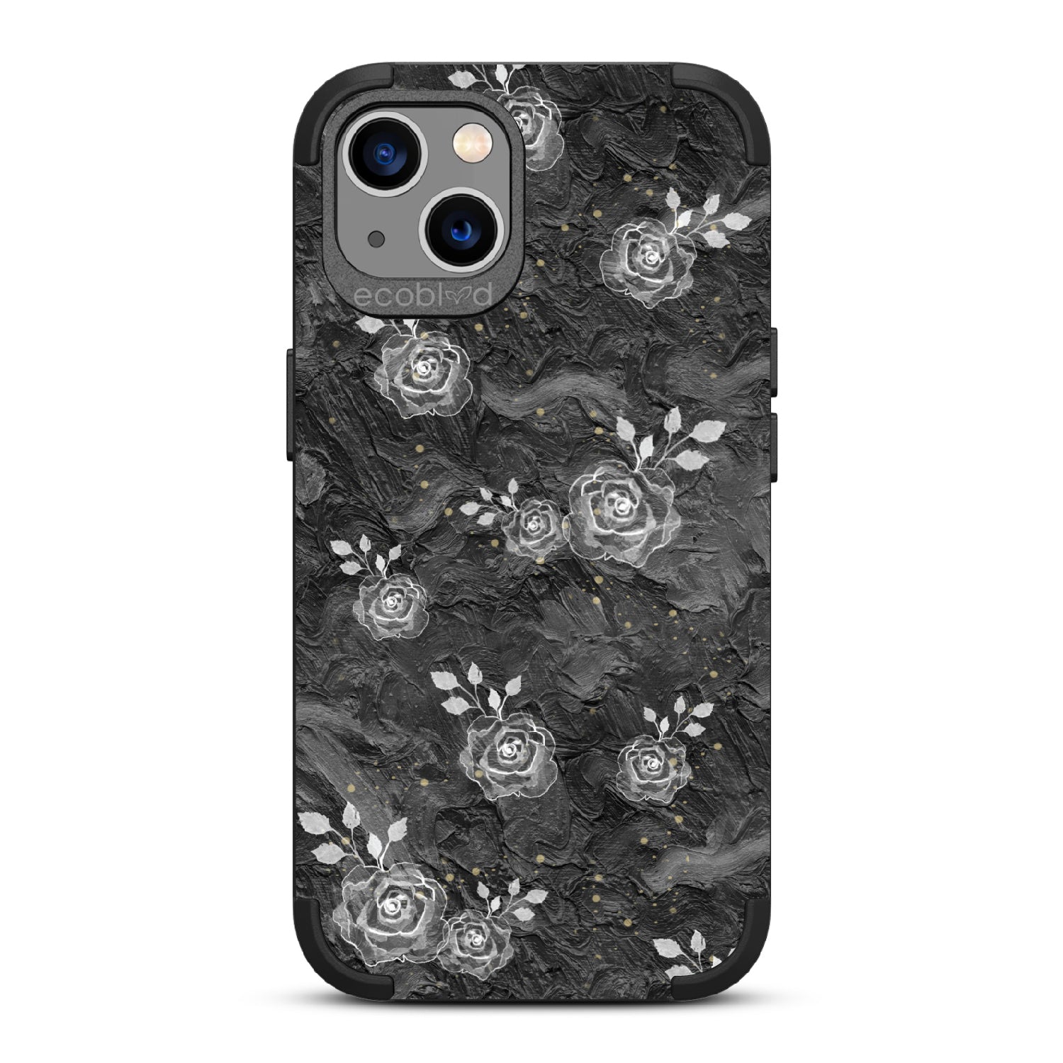 Surrender to the captivating beauty of the Midnight Rose design on our Mojave rugged and compostable iPhone 13 phone case as its white rose silhouettes on a black lacquer-like background are polished to perfection and bloom with a hint of romantic intrigue. Available on our stunning Midnight Black colorway.