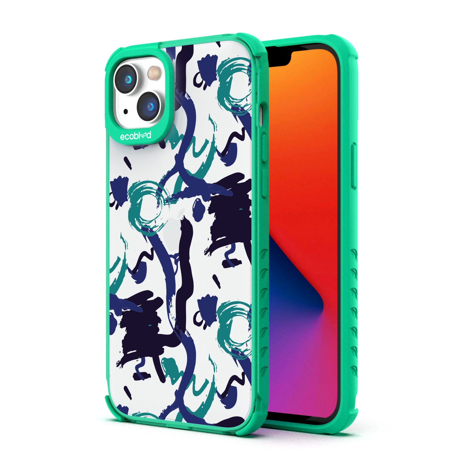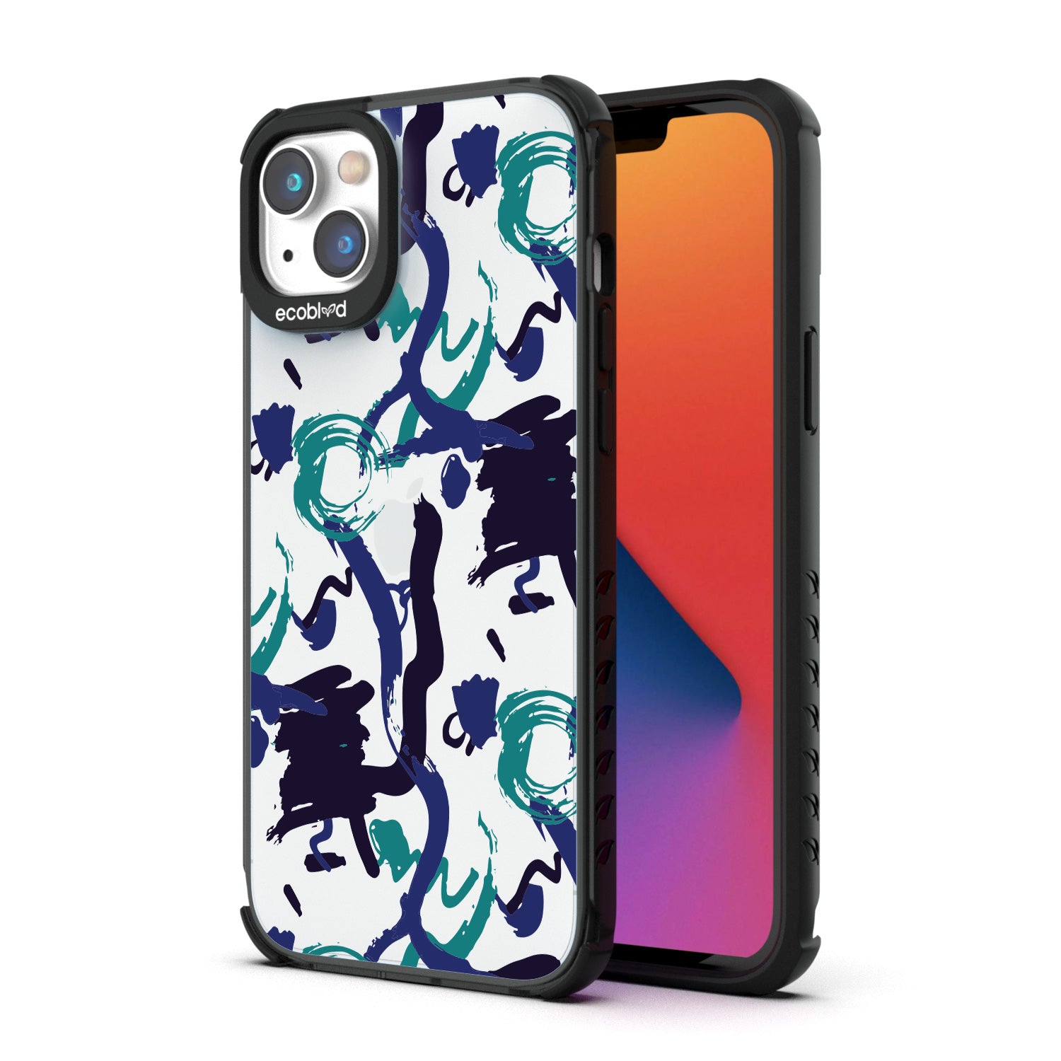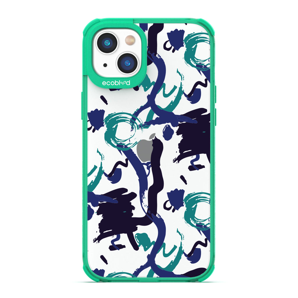 The swirling brushwork of the Out Of The Blue design on our Laguna clear iPhone 14 Plus case is a testament to the power of creative inspiration striking at any moment - it's an ode to those moments when something extraordinary is conjured seemingly out of nowhere, much like this unique and captivating design on your phone in three colorways: Midnight Black, Cascade Blue, and Foliage Green.
