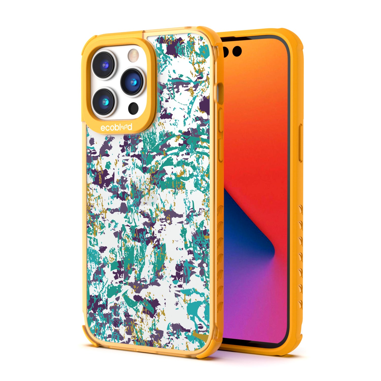 Step out into the world of self-expression with the stunning Paint The Town design on our Laguna clear iPhone 14 Pro case, perfect for those looking to make their mark in life right on their phone with its abstract mix of paint splatter, dabs, and drips -- letting you create a look that is all yours. on all four colorways: Midnight Black, Cascade Blue, Foliage Green, and Illuminating Yellow.