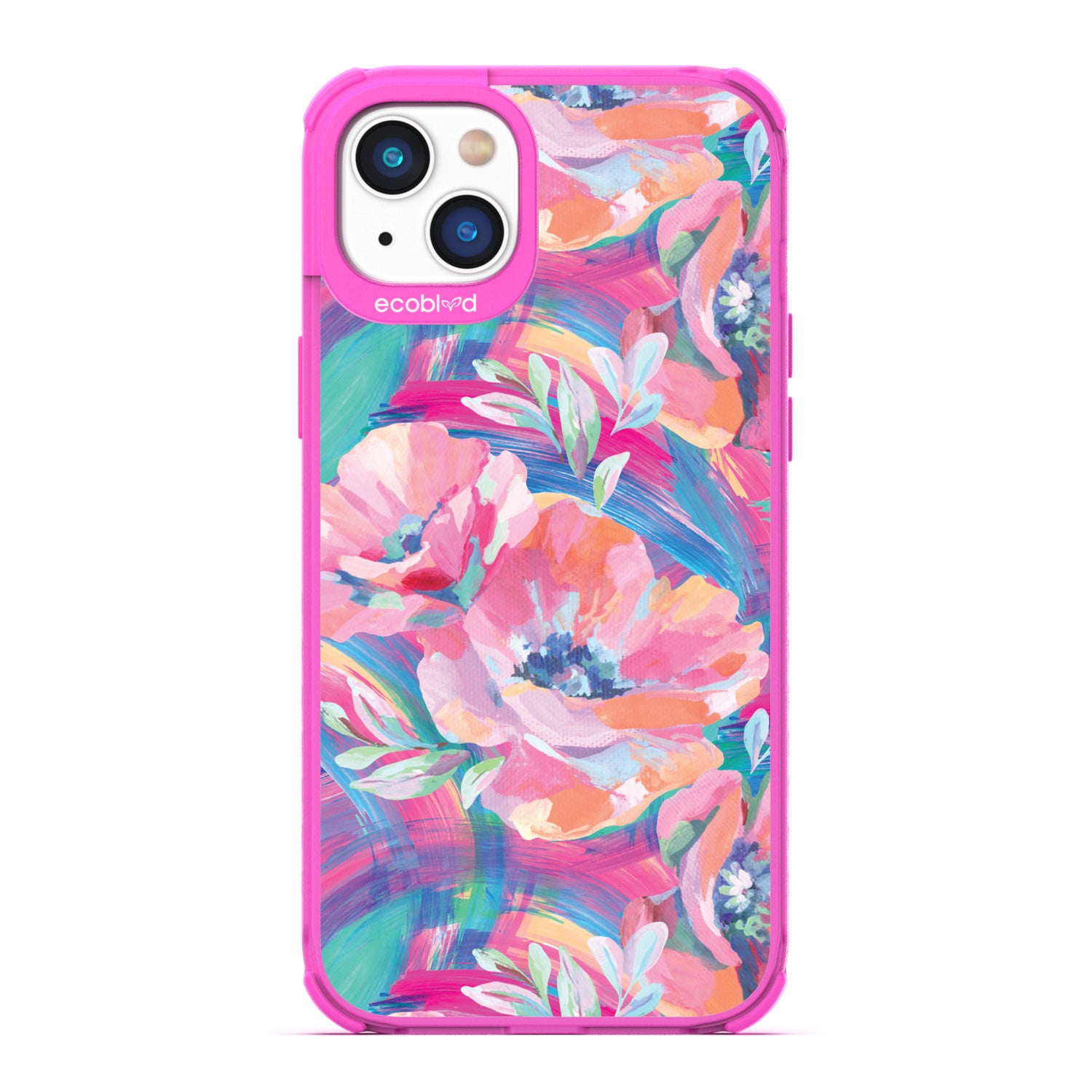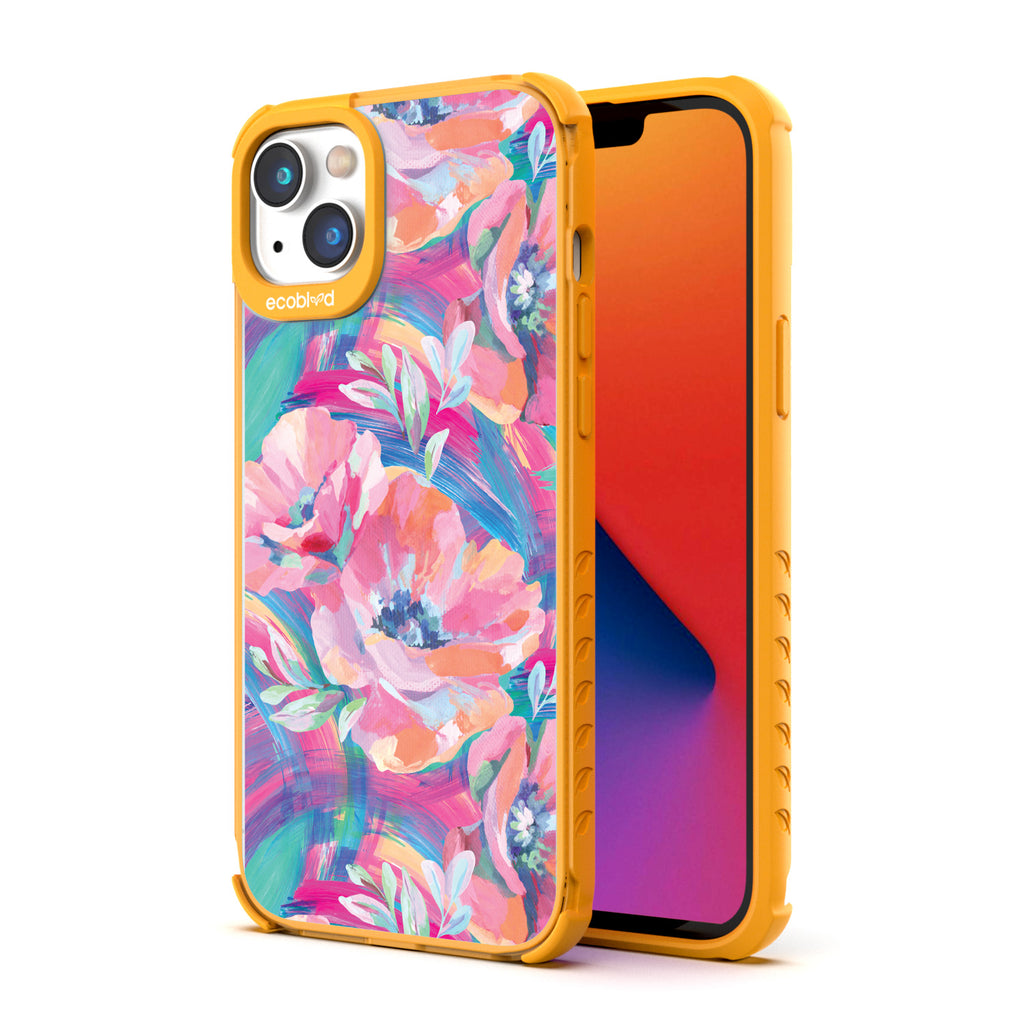 The Pastel Poppy design on our Laguna clear iPhone 14 Plus case radiates with beautiful and cheerful energy, captivating the eye with its abstract brush stroke poppies and bright pastel colors, a perfect way to celebrate the start of a new bloom, five bright colorways: Midnight Black, Cascade Blue, Foliage Green, Illuminating Yellow, and Wildflower Pink.
