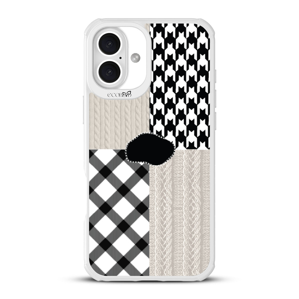 Mix and match your phone's style with the Pattern Play design on our Revive clear iPhone 16 Plus phone case. It's where cozy cable knit meets classic houndstooth, plaid dances with more cable knit, and the black uneven patch is the unexpected twist that makes your phone's look uniquely fabulous.