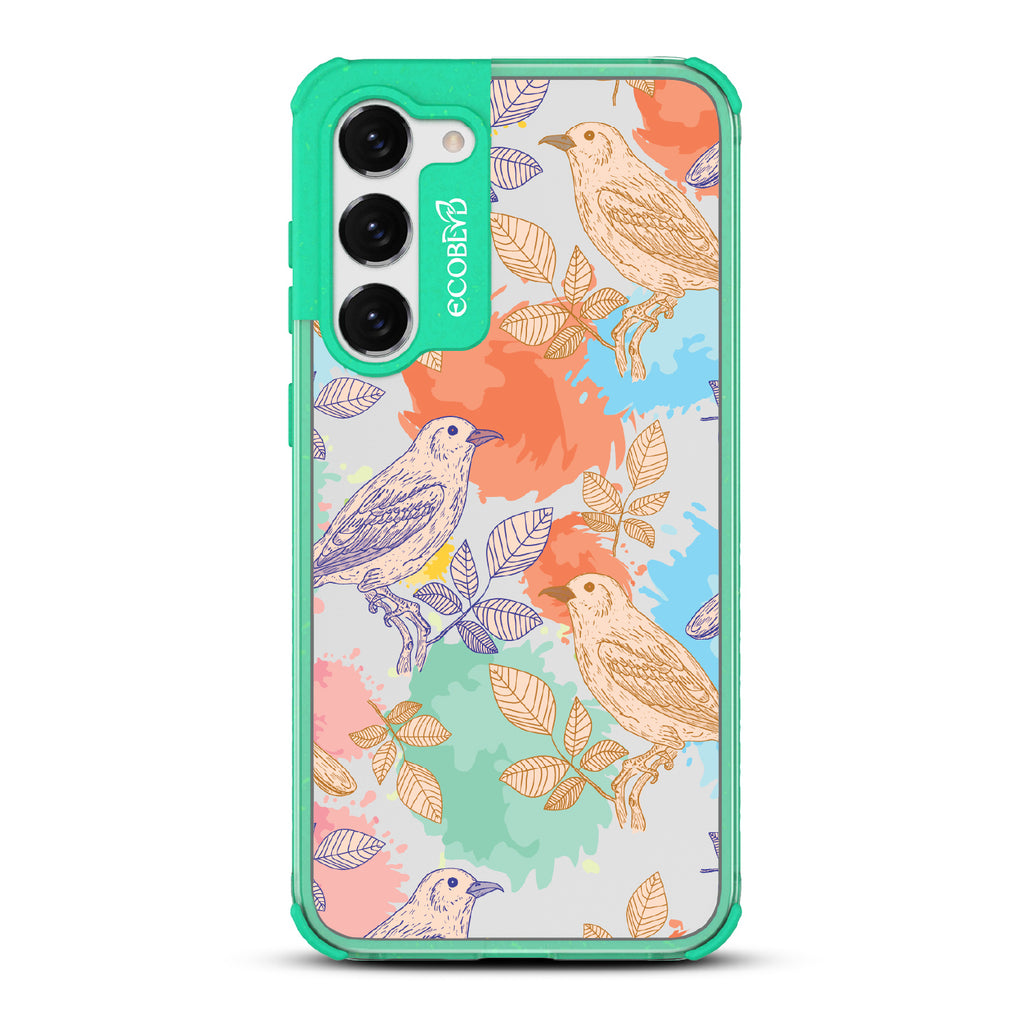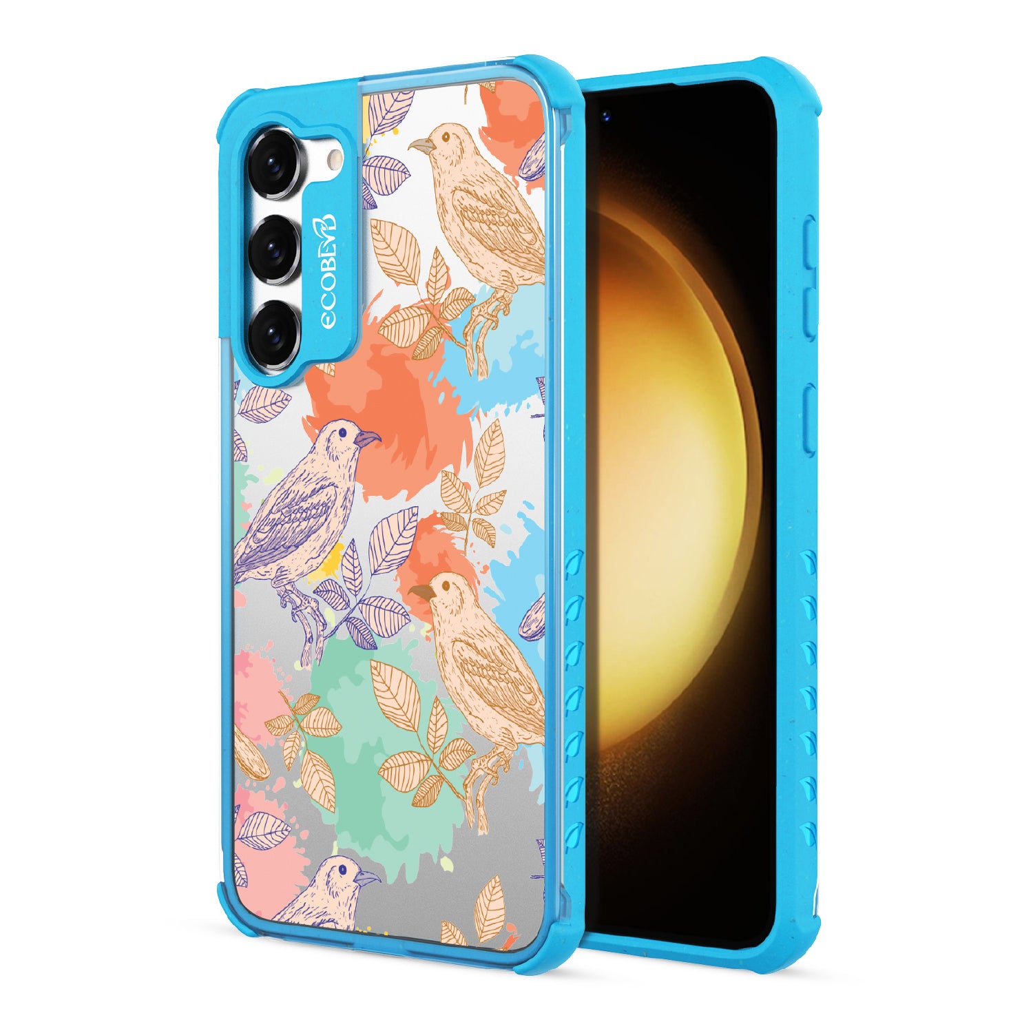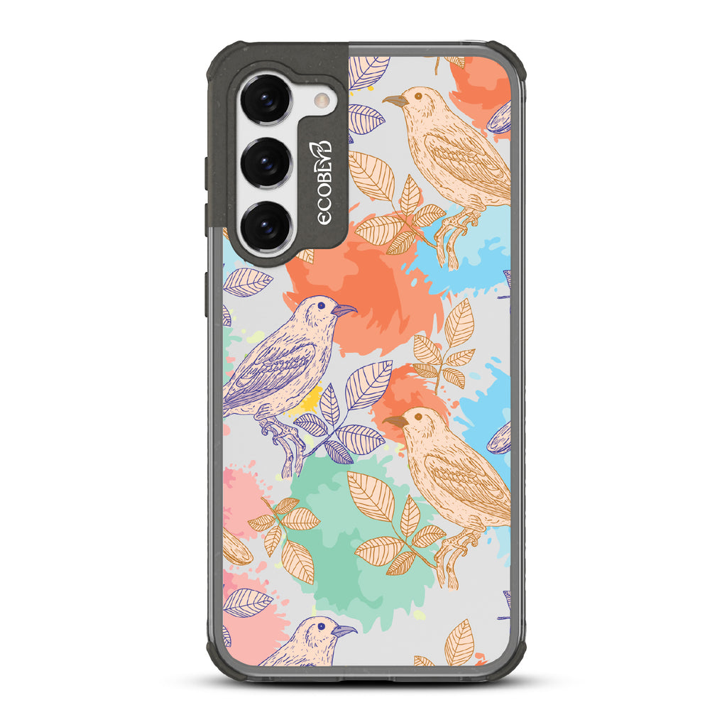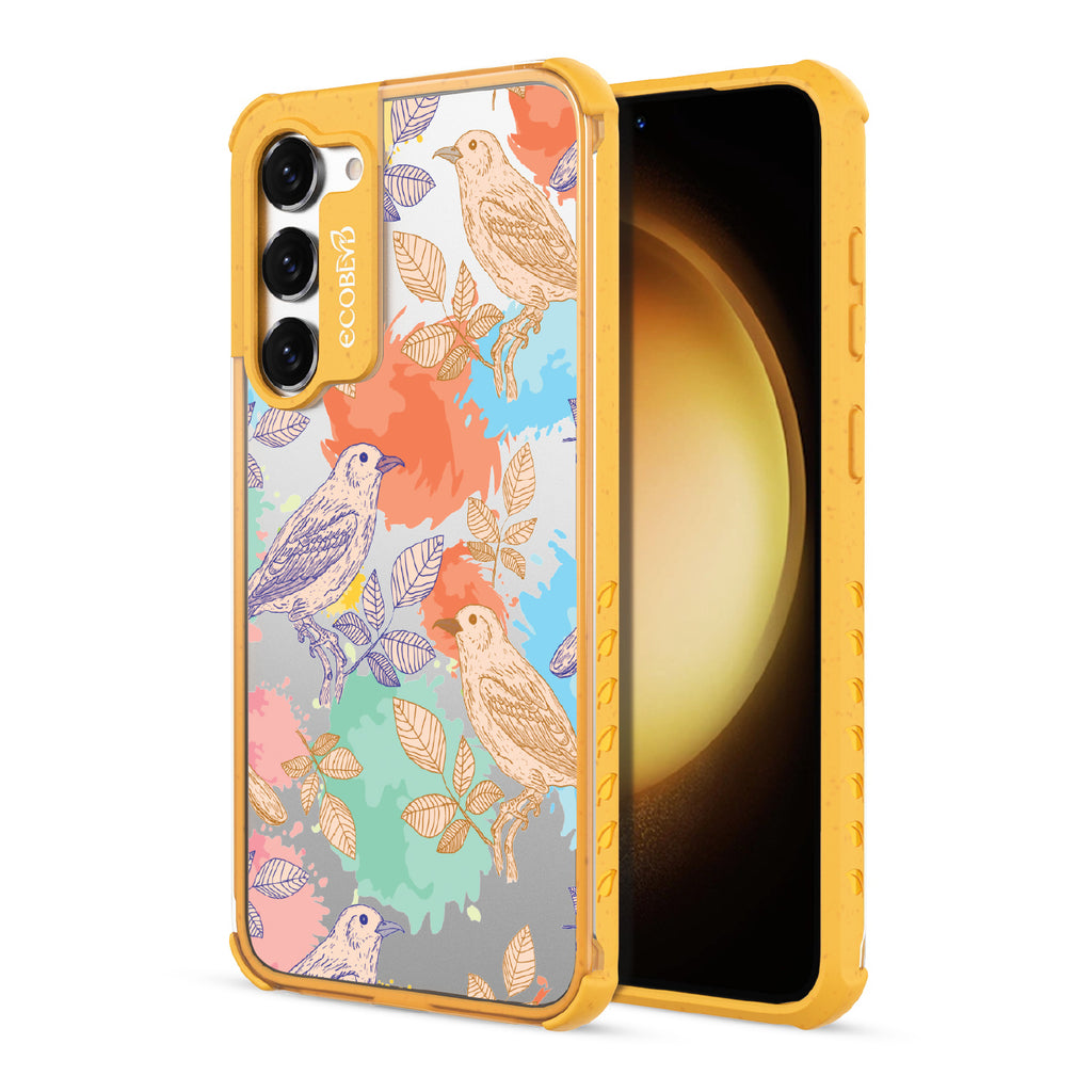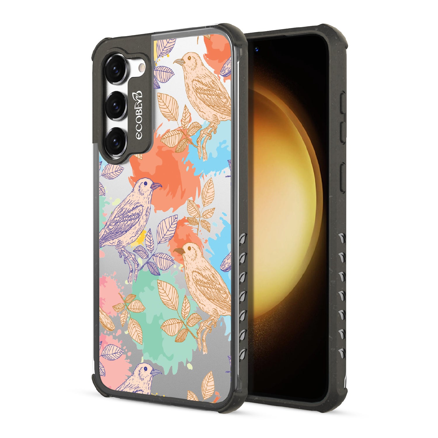 Get ready to soar to new heights with the Perch Perfect design for the Laguna clear Galaxy S23 Plus case. This feathered symphony will have you tweeting in delight as colorful birds perch on branches, creating a harmonious composition that hits all the right notes. The Perch Perfect design is like a symphony for your phone, hitting all the right notes with its playful bursts of color and intricate line art birds perched on a branch. Each bird adds its own unique melody to the song, creating a harmonious design that captures the essence of feeling wild and free. Let your phone be the conductor of this beautiful masterpiece with Perch Perfect in five captivating colors: Midnight Black, Cascade Blue, Foliage Green, Illuminating Yellow, and Wildflower Pink.