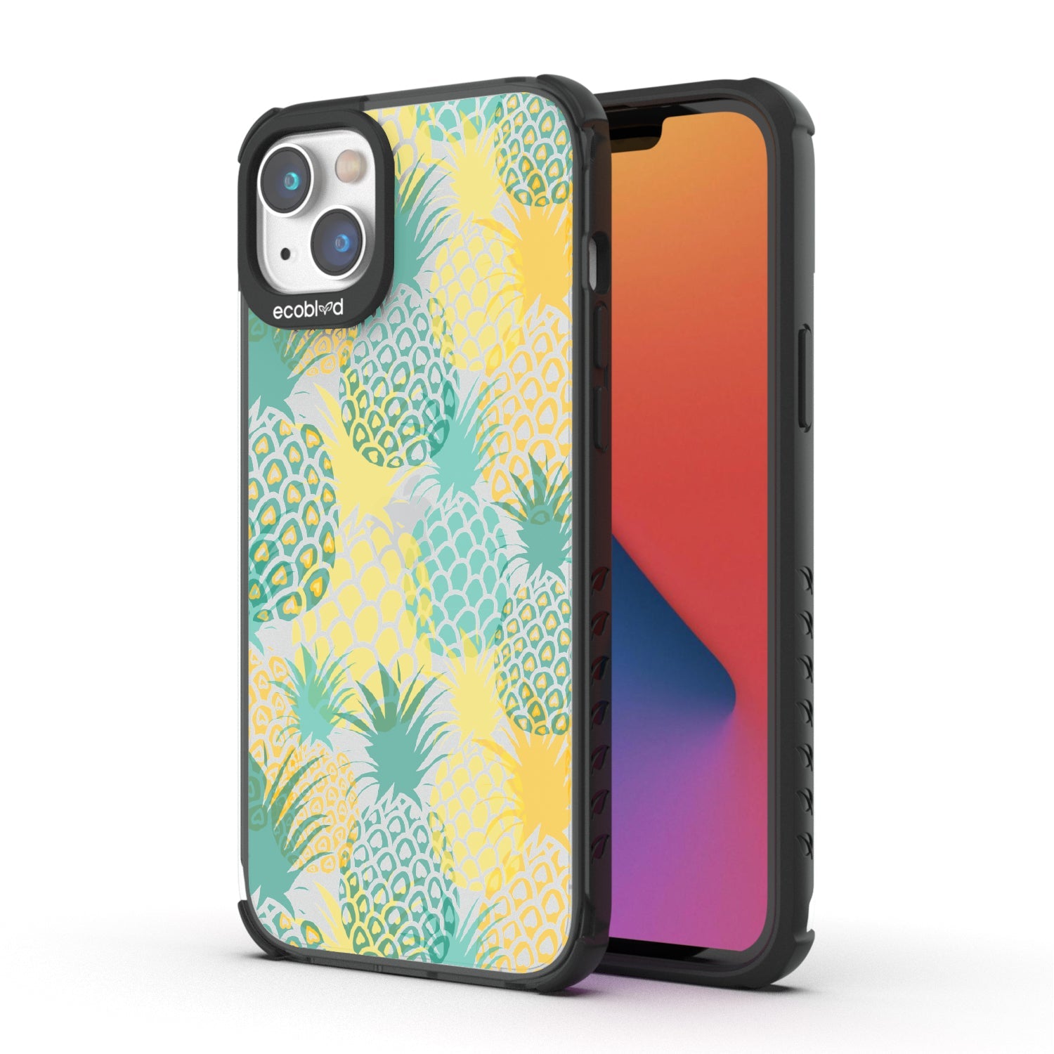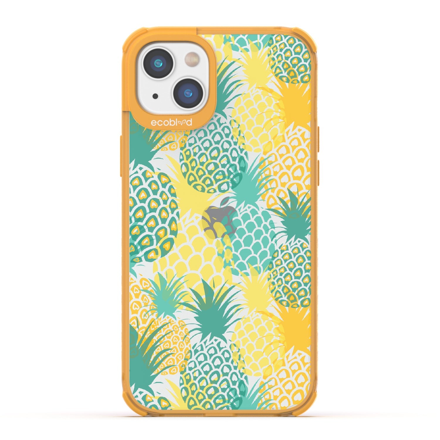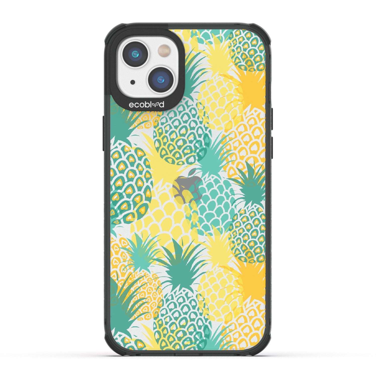 If you like Pina Coladas and getting caught in the sun, then this design on our Laguna clear iPhone 16e, iPhone 14, and iPhone 13 case is for you! Pineapple Breeze is a refreshing phone case that embodies the spirit of tropical relaxation. Its vibrant array of ripe pineapples will transport you to exotic shores, where the golden rays of the sun dance upon your skin.