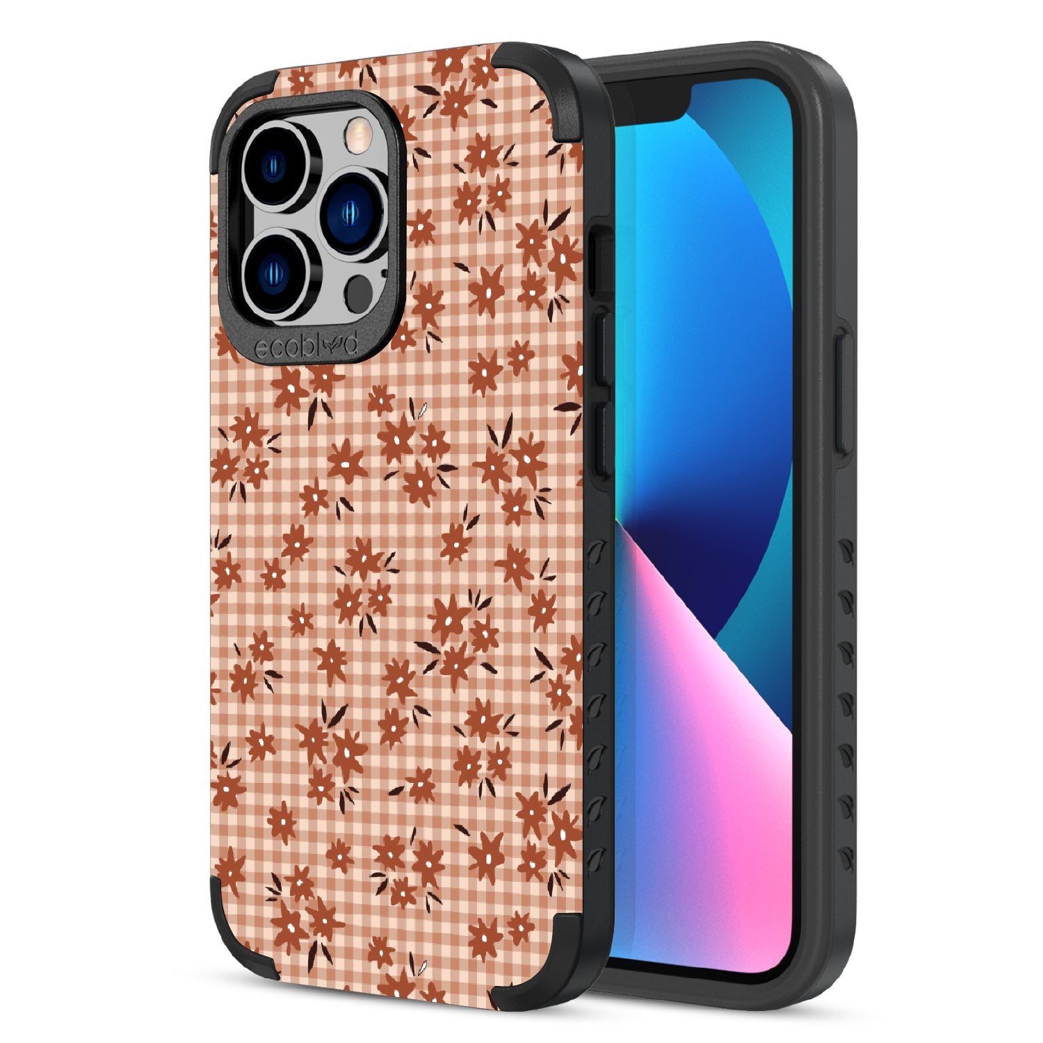 Wrap yourself in fall’s coziest combo with the Plaid and Petals design on our Mojave rugged and compostable iPhone 13 Pro Max cases & iPhone 12 Pro Max cases. It’s like your favorite flannel shirt decided to bloom, blending warm plaid checks with soft flowers scattered across the surface. Earthy browns and creams set the tone, while the playful florals bring a light-hearted touch. It’s fall, but with a floral twist—perfect for layering your look with a mix of rustic and fresh vibes.