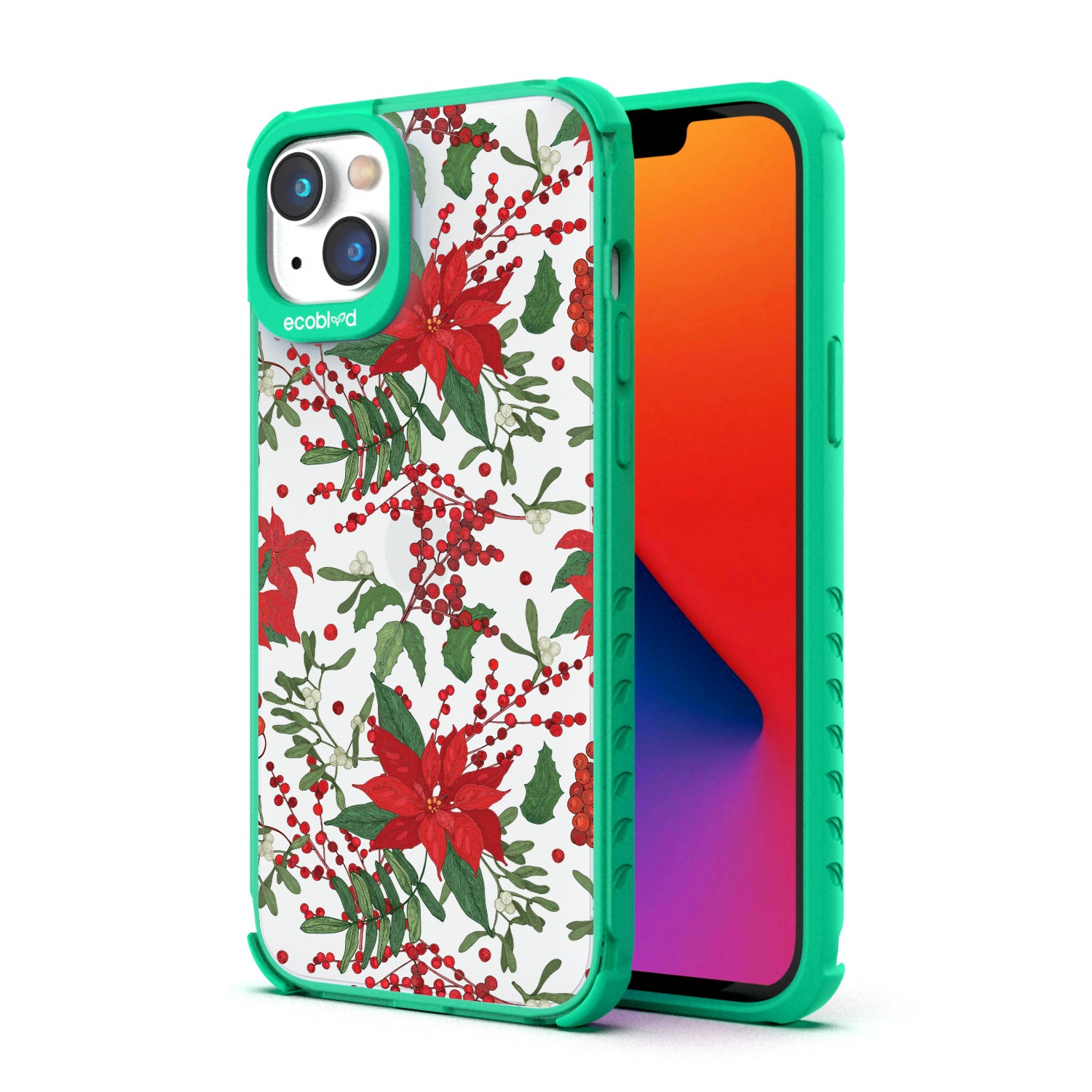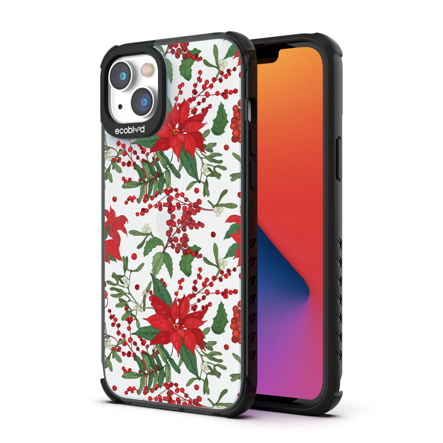 Let your winter wishes blossom with the Poinsettia design on our Laguna clear iPhone 14 Plus case red and white flowers adorning your iPhone 14 Plus and letting your goodwill and compassion show in two stunning colorways: Midnight Black and Foliage Green.