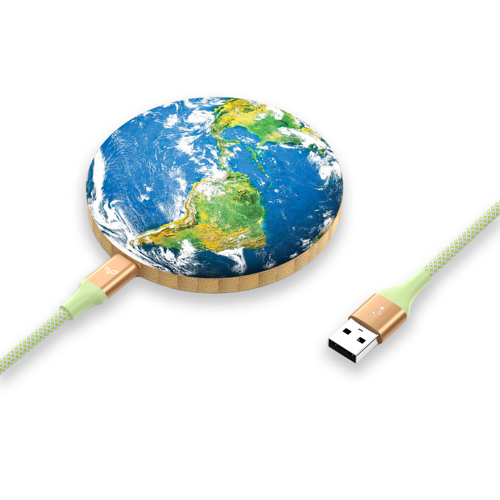 Thanks to its earth-inspired print, the Power The Planet Bamboo Wireless Charger design keeps your devices naturally charged with enough energy to change the world.
