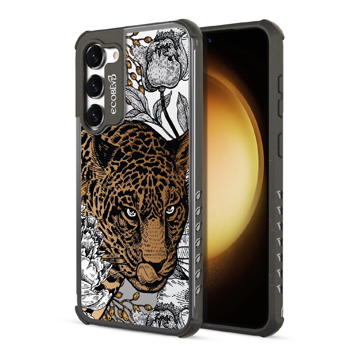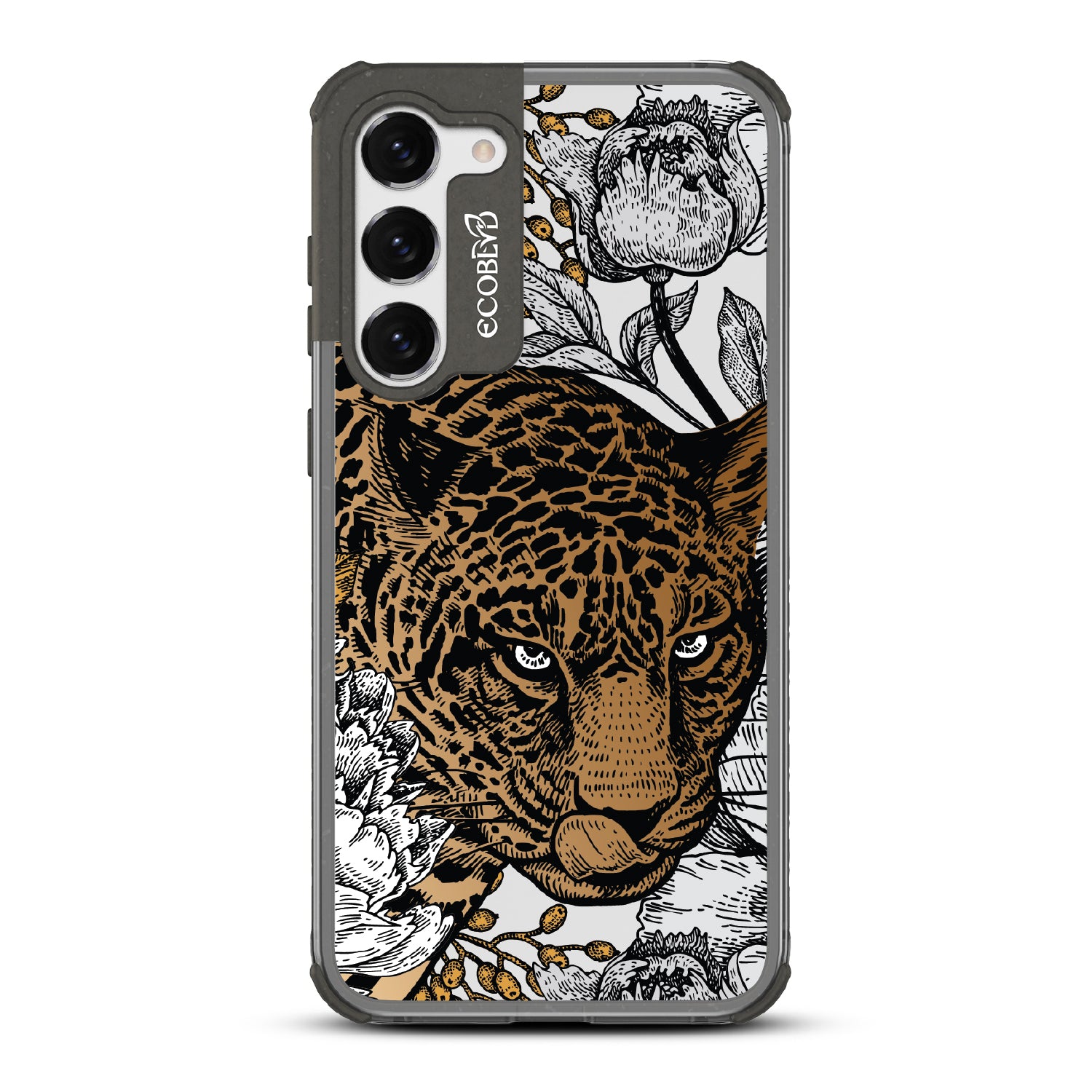 Captivating with its striking rendition of a fierce leopard in action, Purrfectly Striking, an exclusive design crafted for the Laguna clear Galaxy S23 case embraces the untamed beauty of this majestic wildcat. Experience the perfect blend of impeccable style and protection while championing ocean conservation efforts. Step out of the ordinary and into the wild with this Purrfectly Striking design! Featuring a fierce leopard on the prowl amidst a sea of grayscale flowers, this phone case roars with confidence thanks to its bold print and striking contrast in two captivating colors: Midnight Black and Illuminating Yellow. Purrfectly Striking is the perfect choice for those who want to unleash their inner wild side and look ferociously cool.