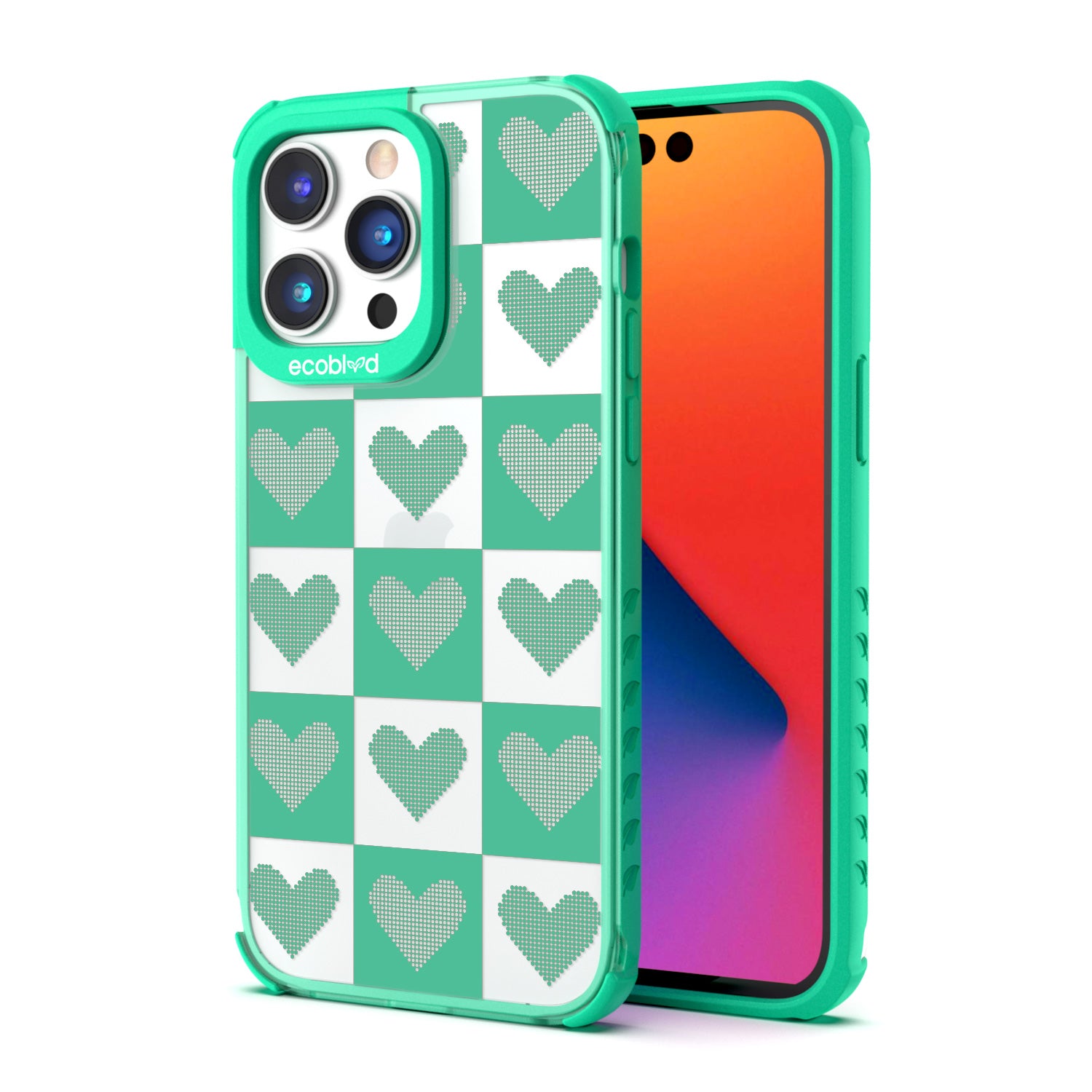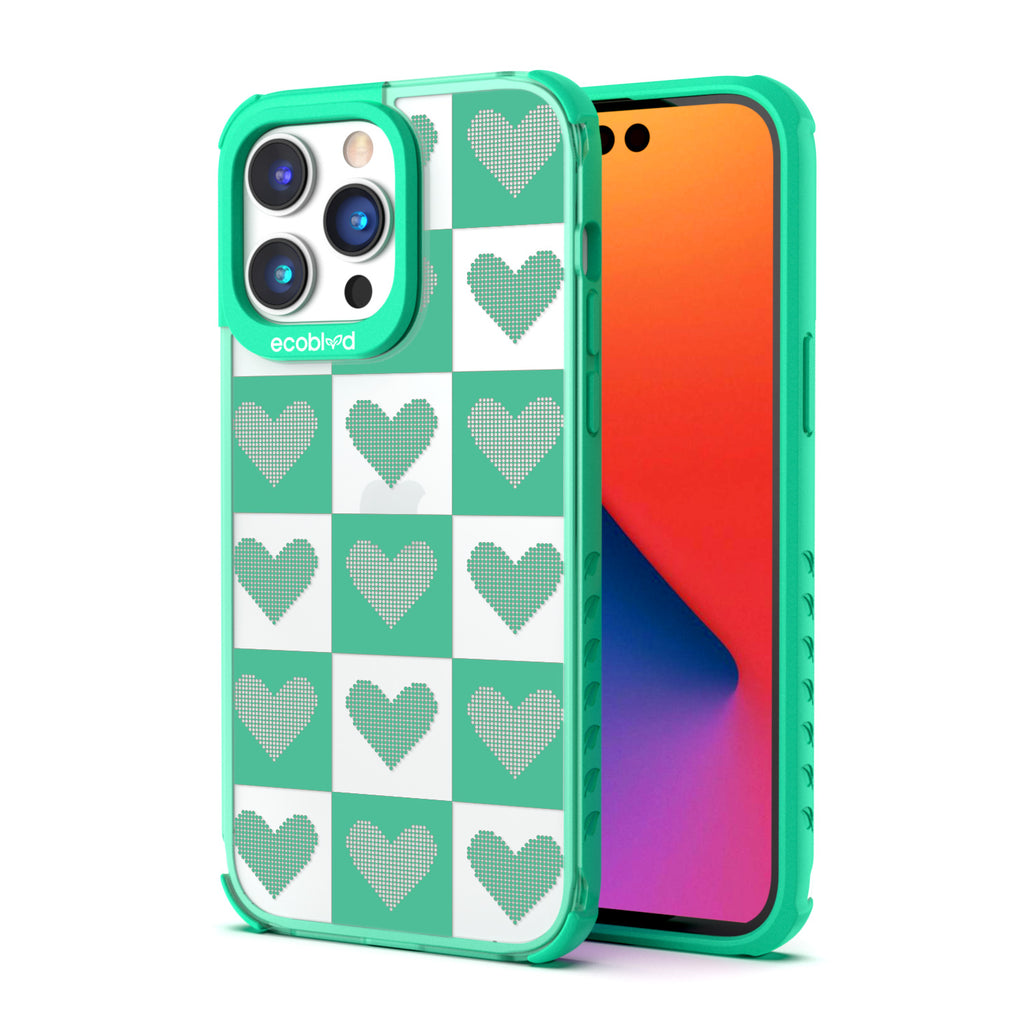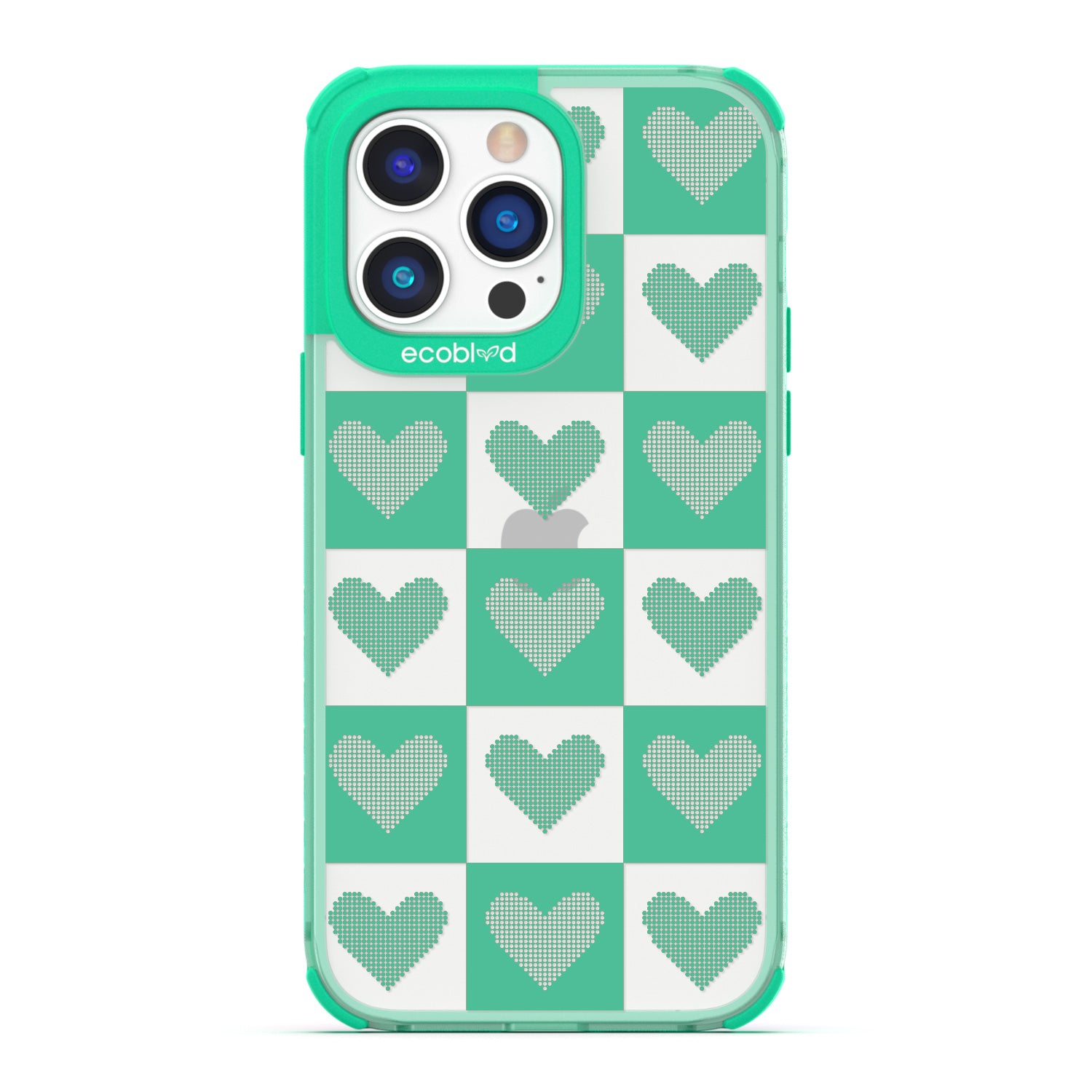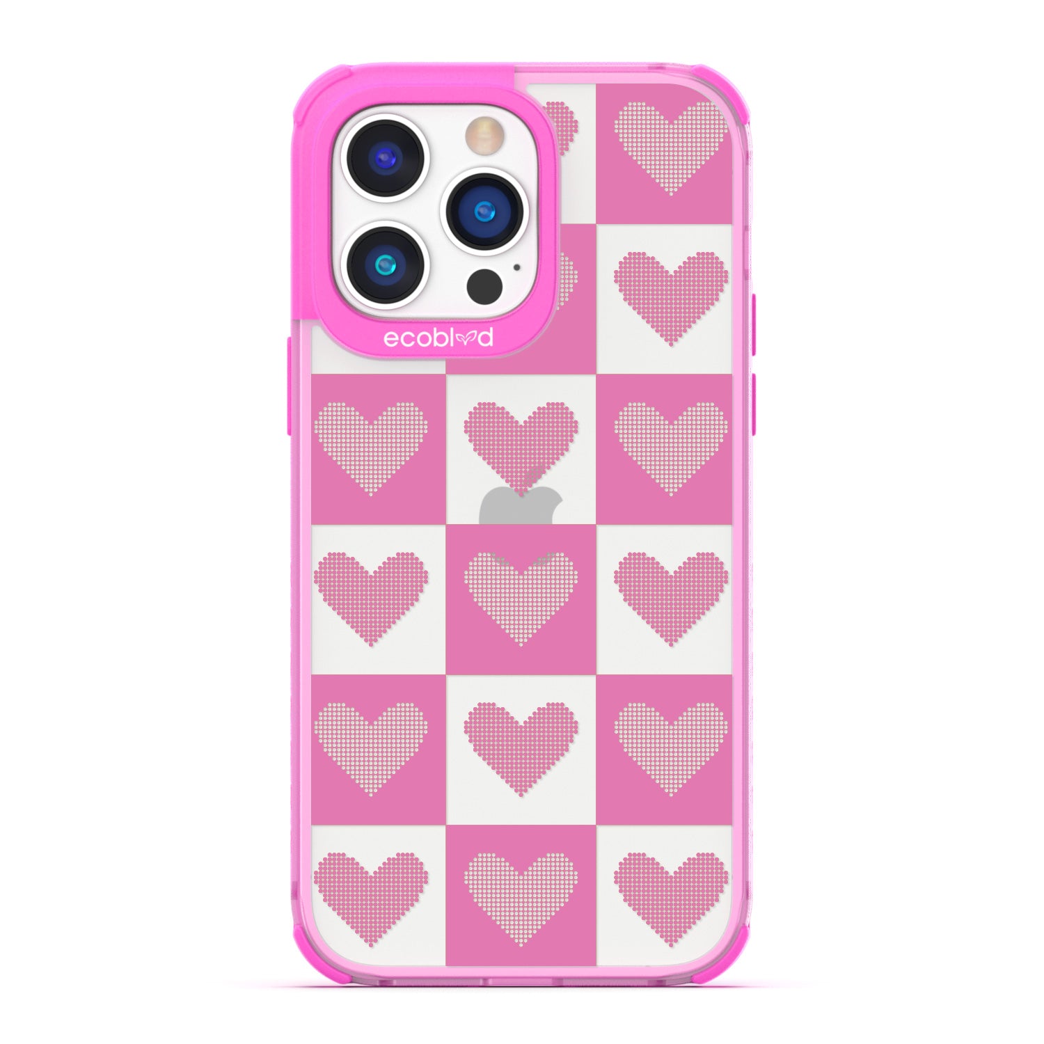 Soften up with the quilted hearts of the Quilty Pleasures design on our Laguna clear iPhone 14 Pro Max case, lovingly stitched and crafted with a gingham plaid pattern and hearts sewn inside to give you a warm embrace every time you look at your phone with 6 lovely colorways: Midnight Black, Red on Midnight Black, Cascade Blue, Foliage Green, Illuminating Yellow, and Wildflower Pink.