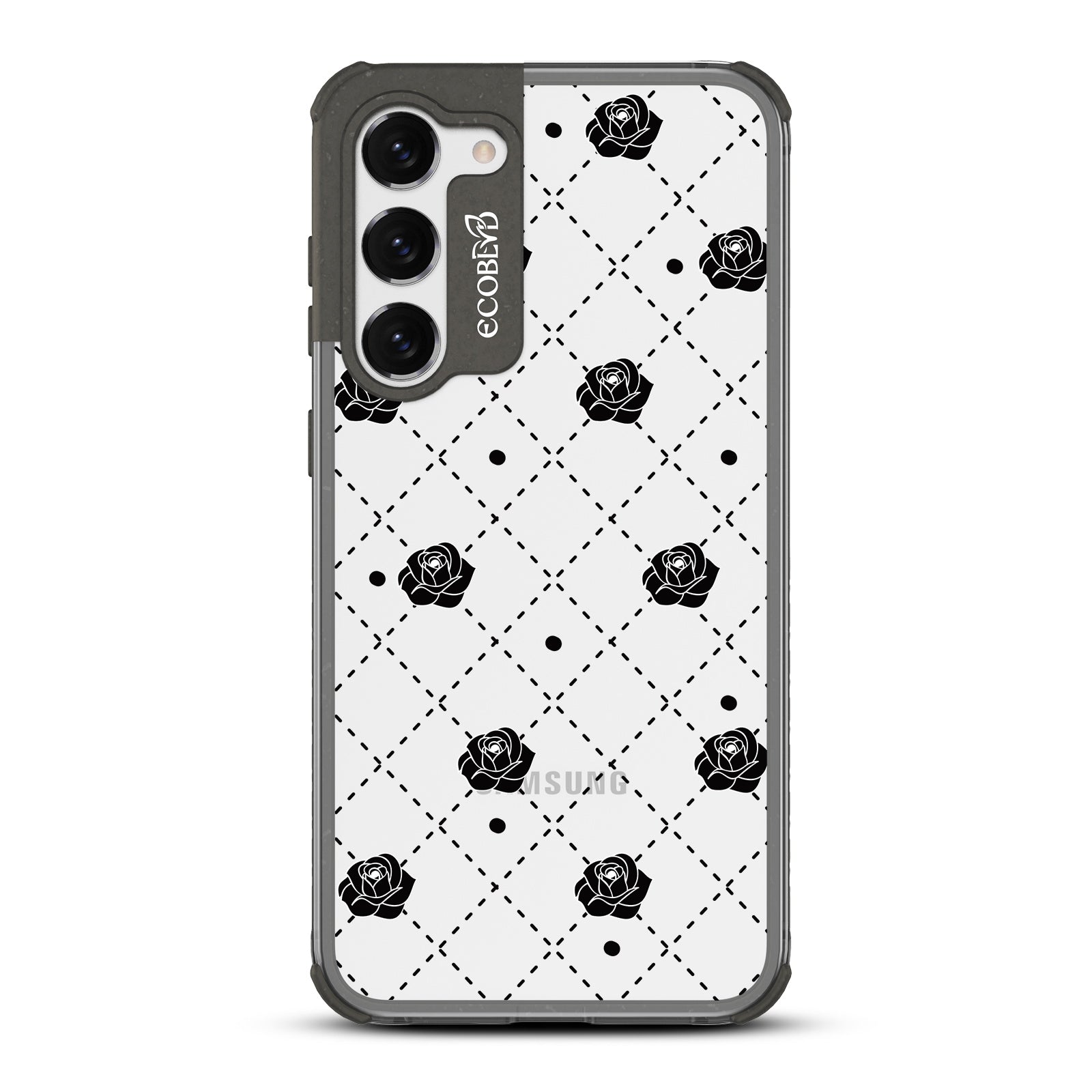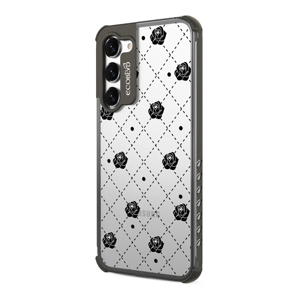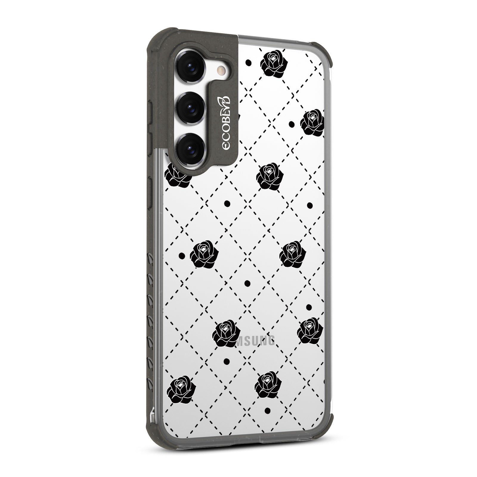 Roses are red, violets are blue, but with this Rose To The Occasion design on our Laguna clear Galaxy S23 case, your phone's look will be nothing but fresh and new with its white roses and polka dots on a stitched argyle background, adding that extra oomph to your style especially while on our Midnight Black colorway.