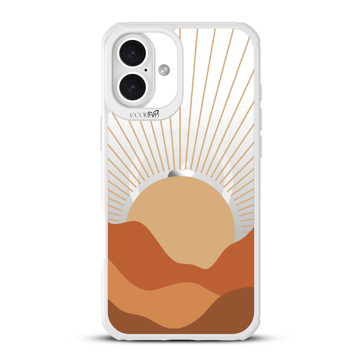 Take in the breathtaking beauty of the Rustic Sunrise design on our Revive clear iPhone 16 Plus case, as it mirrors the magnificent fall sunrise with rich tones of gold, orange, tan, and brown. The warm hues come to life, radiating over rolling hills and capturing the essence of an autumn morning. Add a touch of rustic charm to your day.
