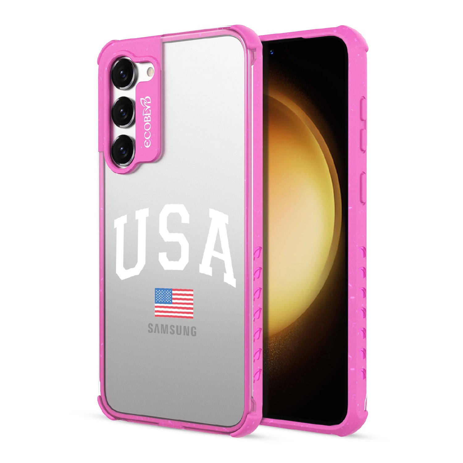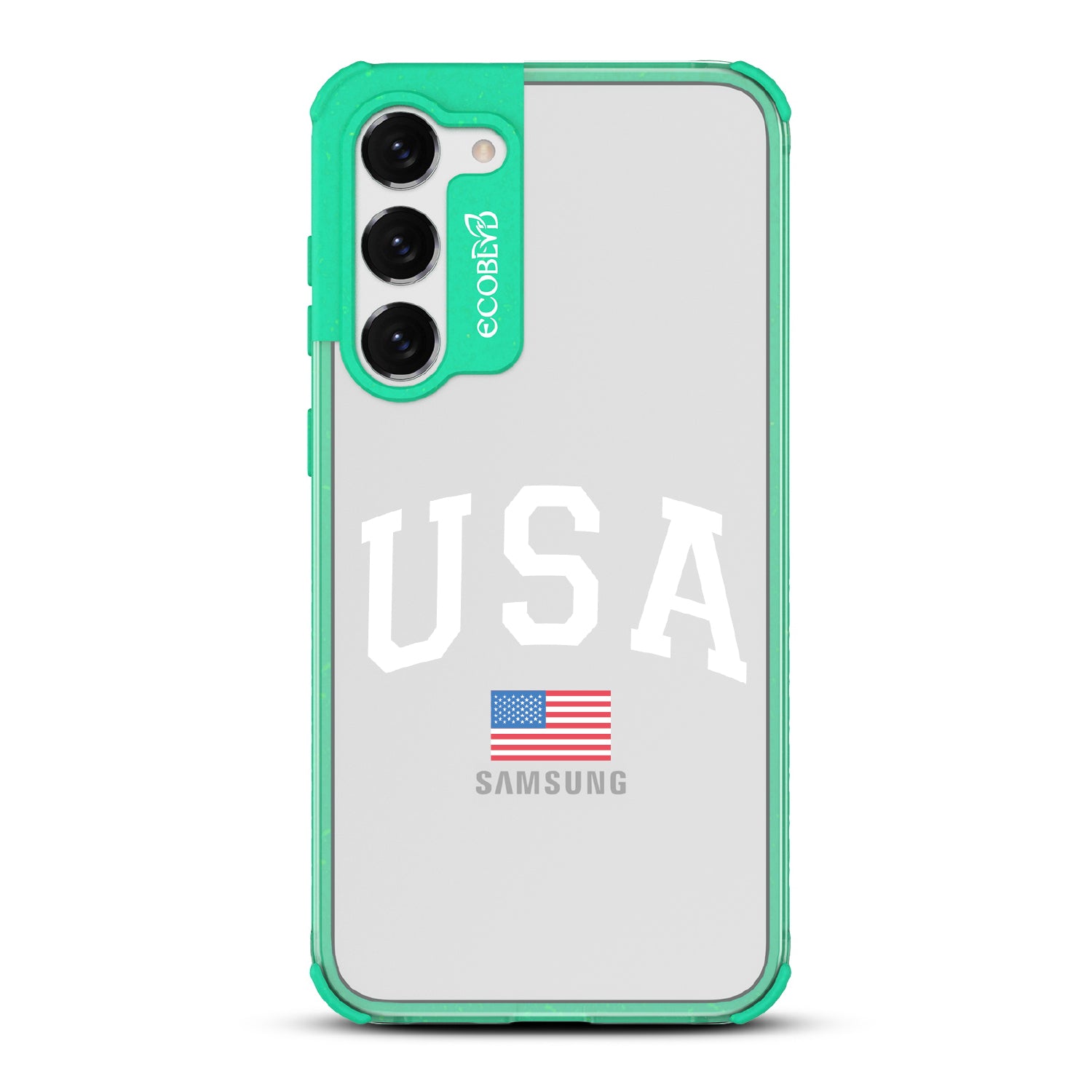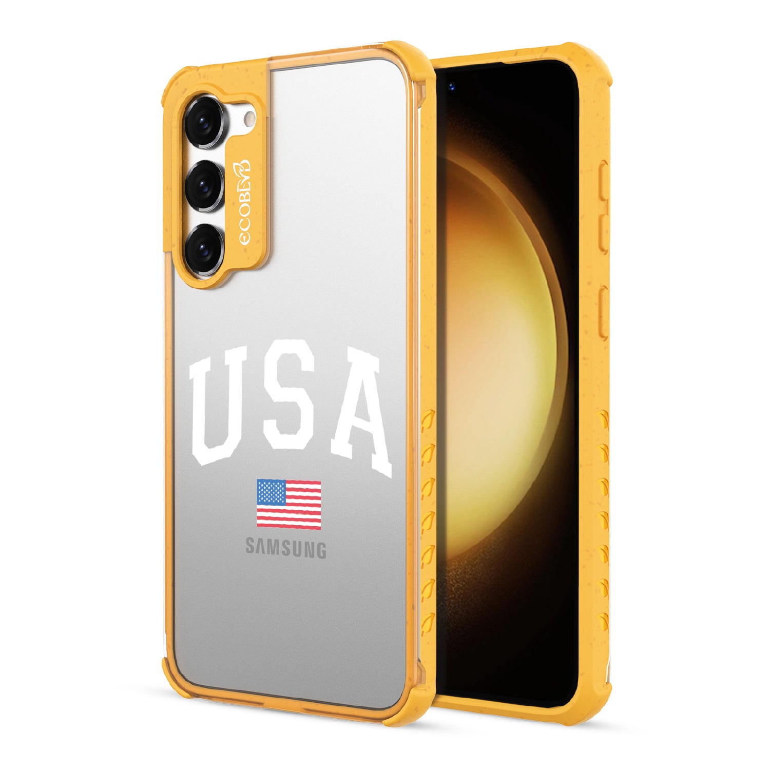 Cheer on the stars and stripes with the All-American design on our Laguna clear Galaxy S23 phone case. With bold "USA" and the American flag, this case celebrates Team USA and the Olympic games.