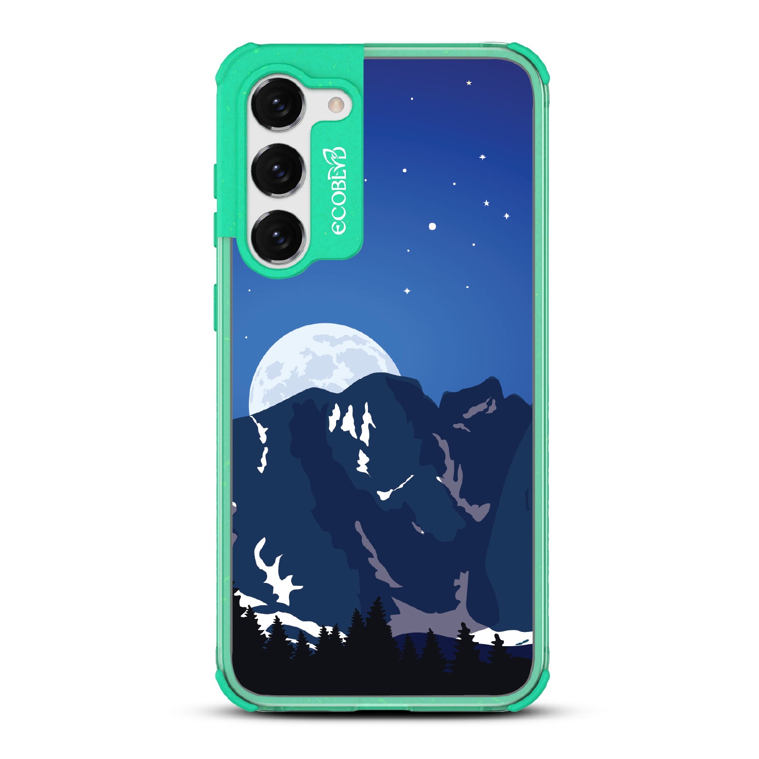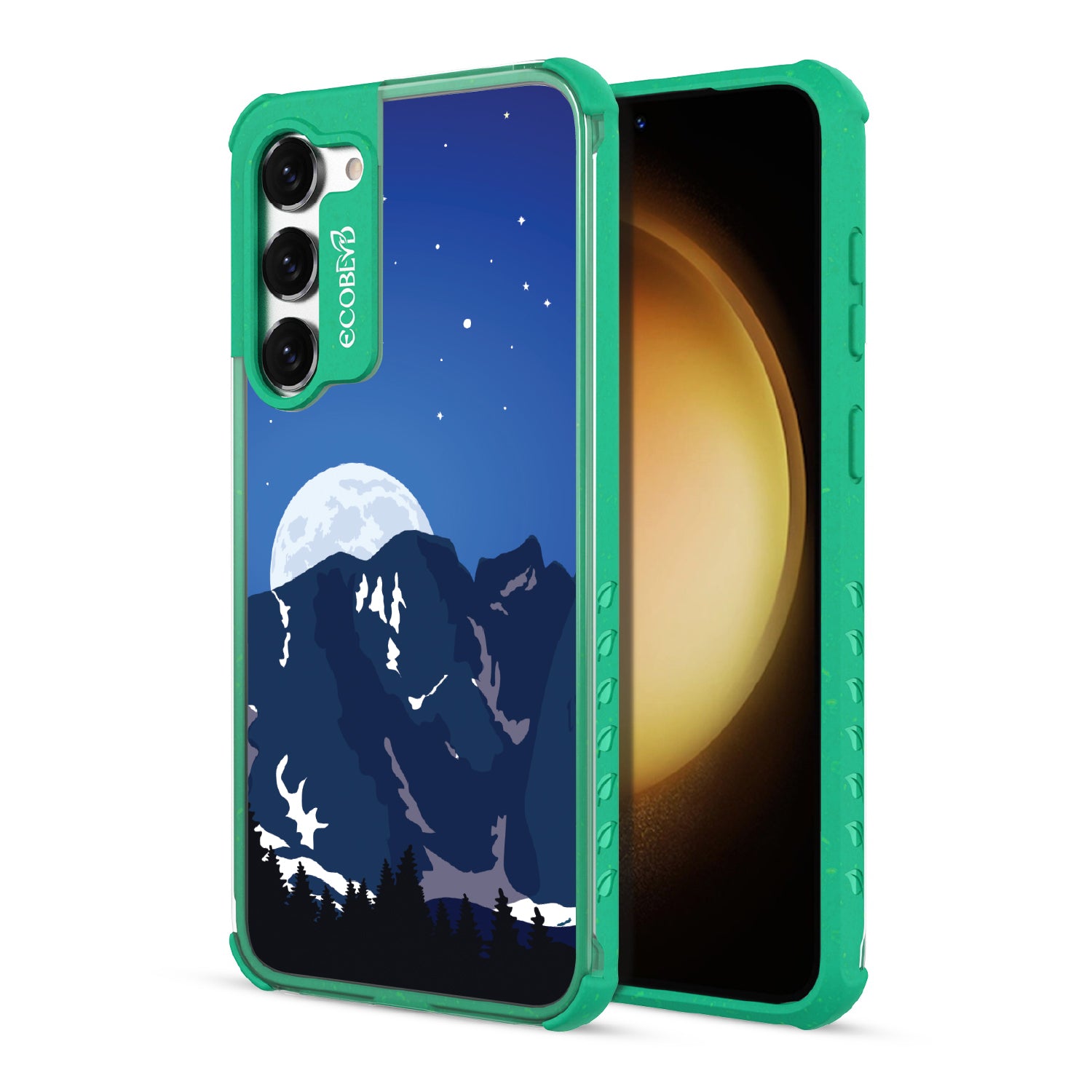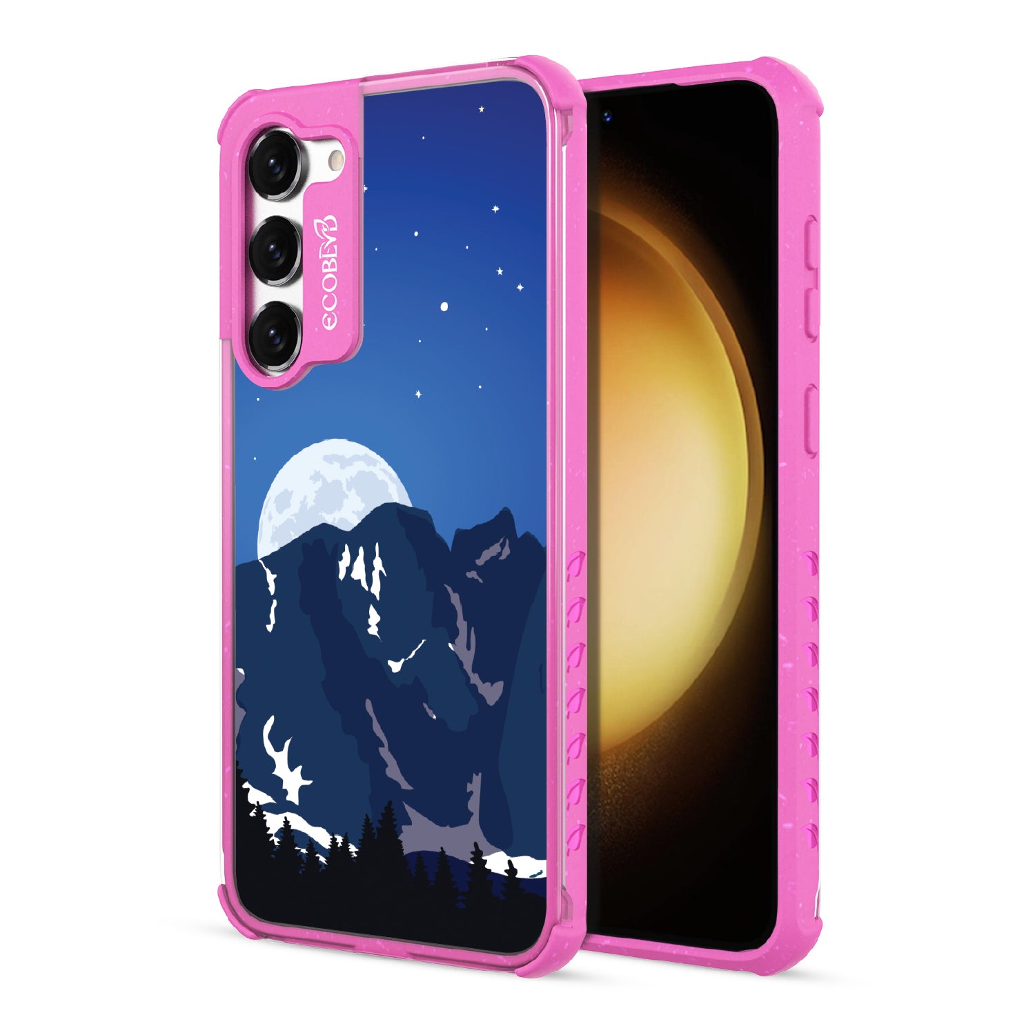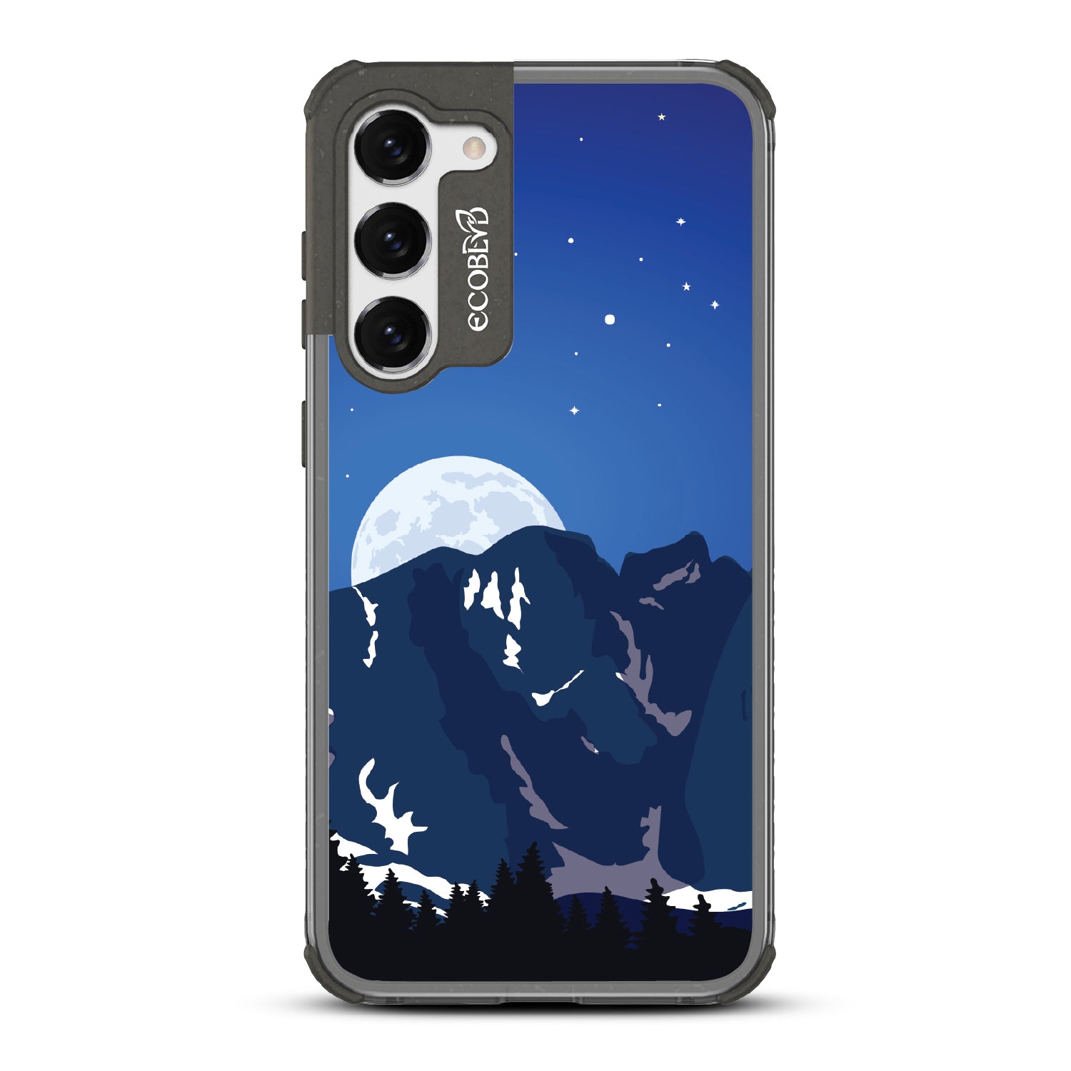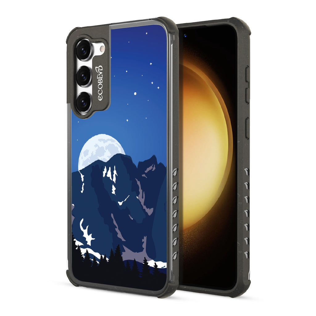 Bask in the ethereal glow of our Alpine Moon design on our Laguna clear Galaxy S23 case, where the moon hangs like a luminous pearl against the velvet canvas of the night sky, casting its soft radiance upon the rugged terrain below.