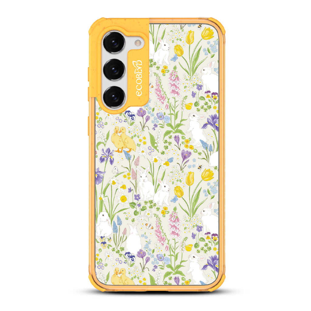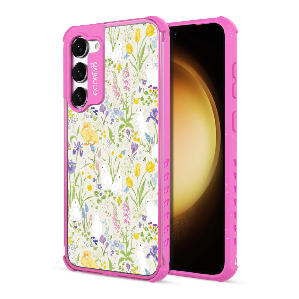 The Blossom Buddies design on our Laguna clear Galaxy S23 case is a playful parade of nature's friends, cleverly camouflaged among spring's finest flowers. It’s a delightful scene of critters finding sanctuary in the vibrant blossoms, bringing stories of hide-and-seek to your phone.