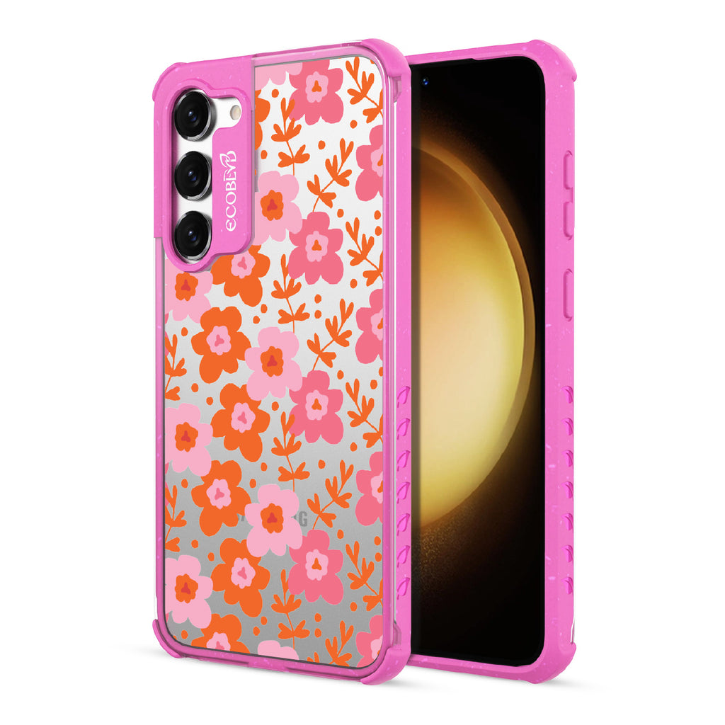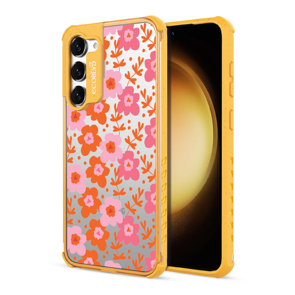 Prepare to make a boom with the explosive energy of spring's freshness with the Floral Burst design on our Laguna clear Galaxy S23 case. Bursting forth with an eruption of lively blooms, each petal dances on the breeze. Whether you find yourself amidst the hustle of a crowded city street or seeking serenity in the calm of nature, let this design keep your days bright.