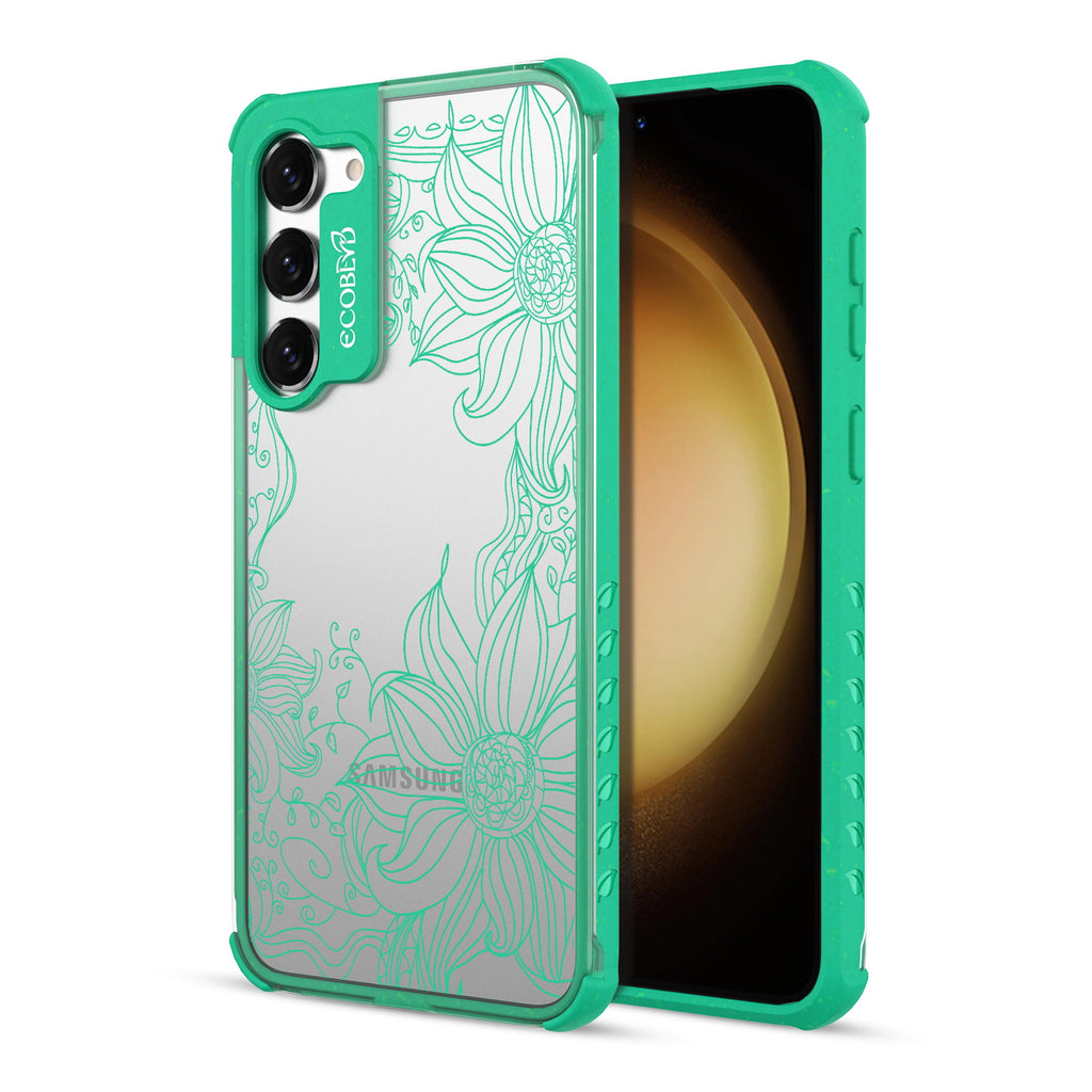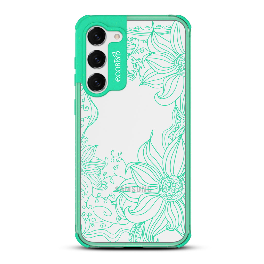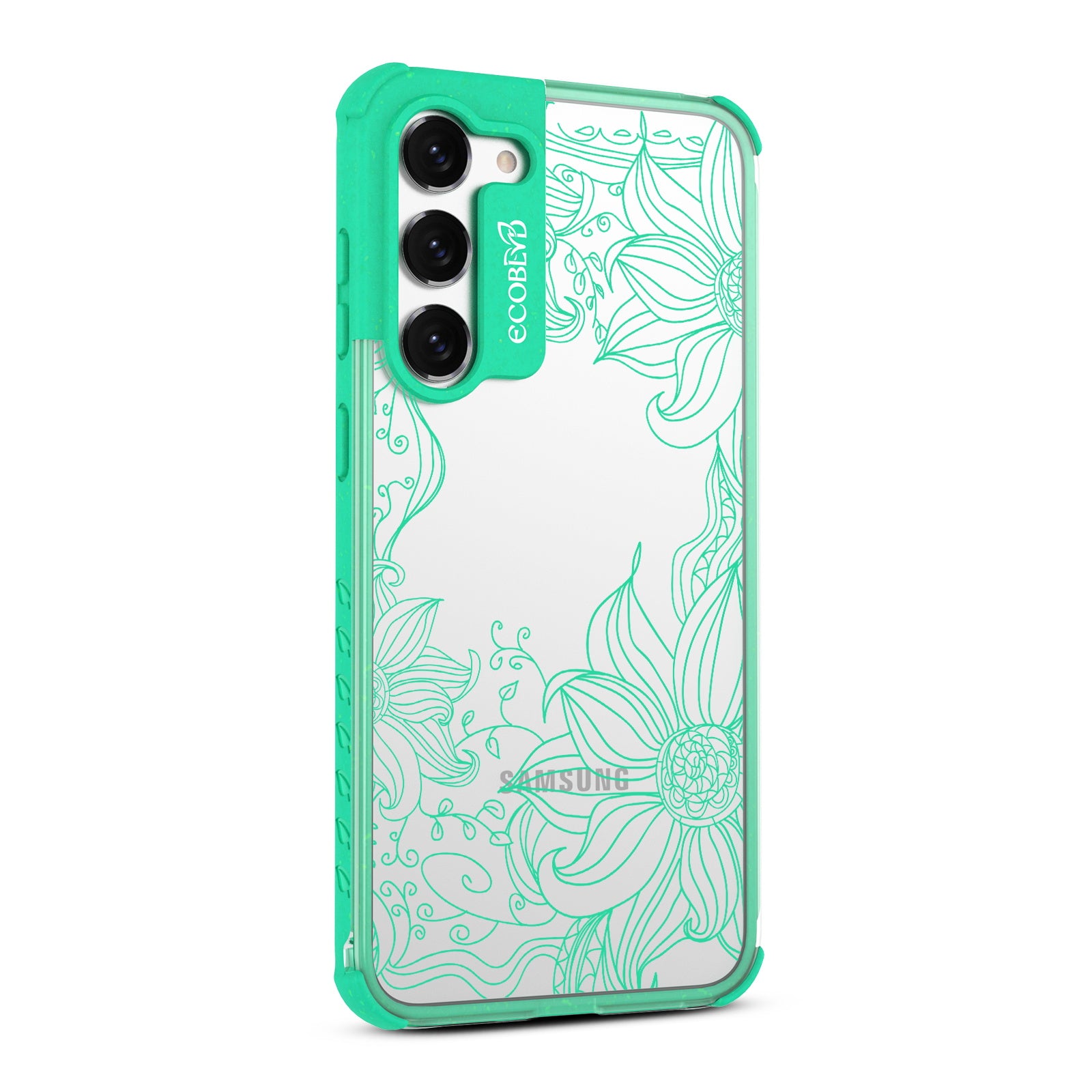 Often all it takes is a subtle outline to truly show the beauty around us, like the strikingly minimalist Flower Stencil design on our Laguna clear Galaxy S23 case whose sunflower print transforms your phone into a natural masterpiece with five vibrant color options: Midnight Black, Cascade Blue, Foliage Green, Illuminating Yellow, and Wildflower Pink.