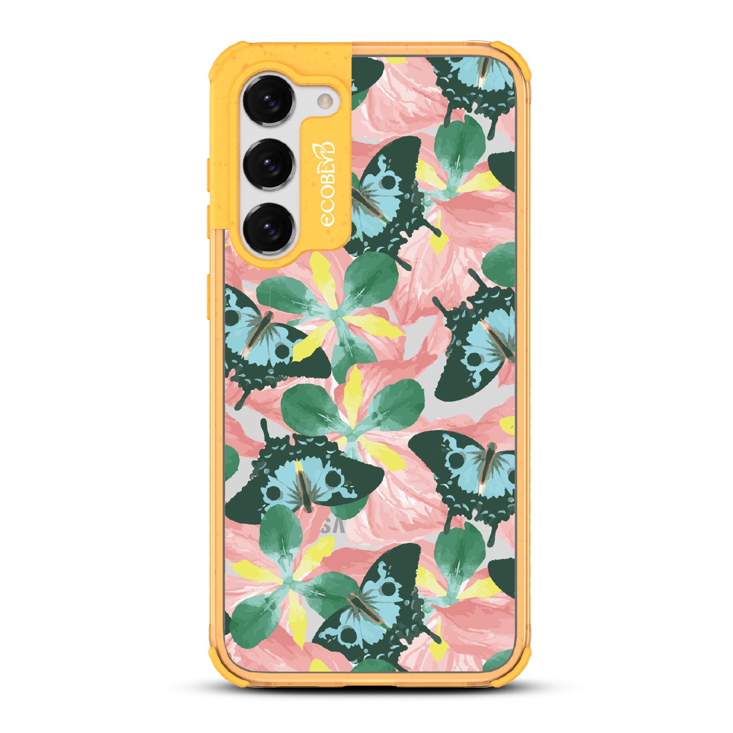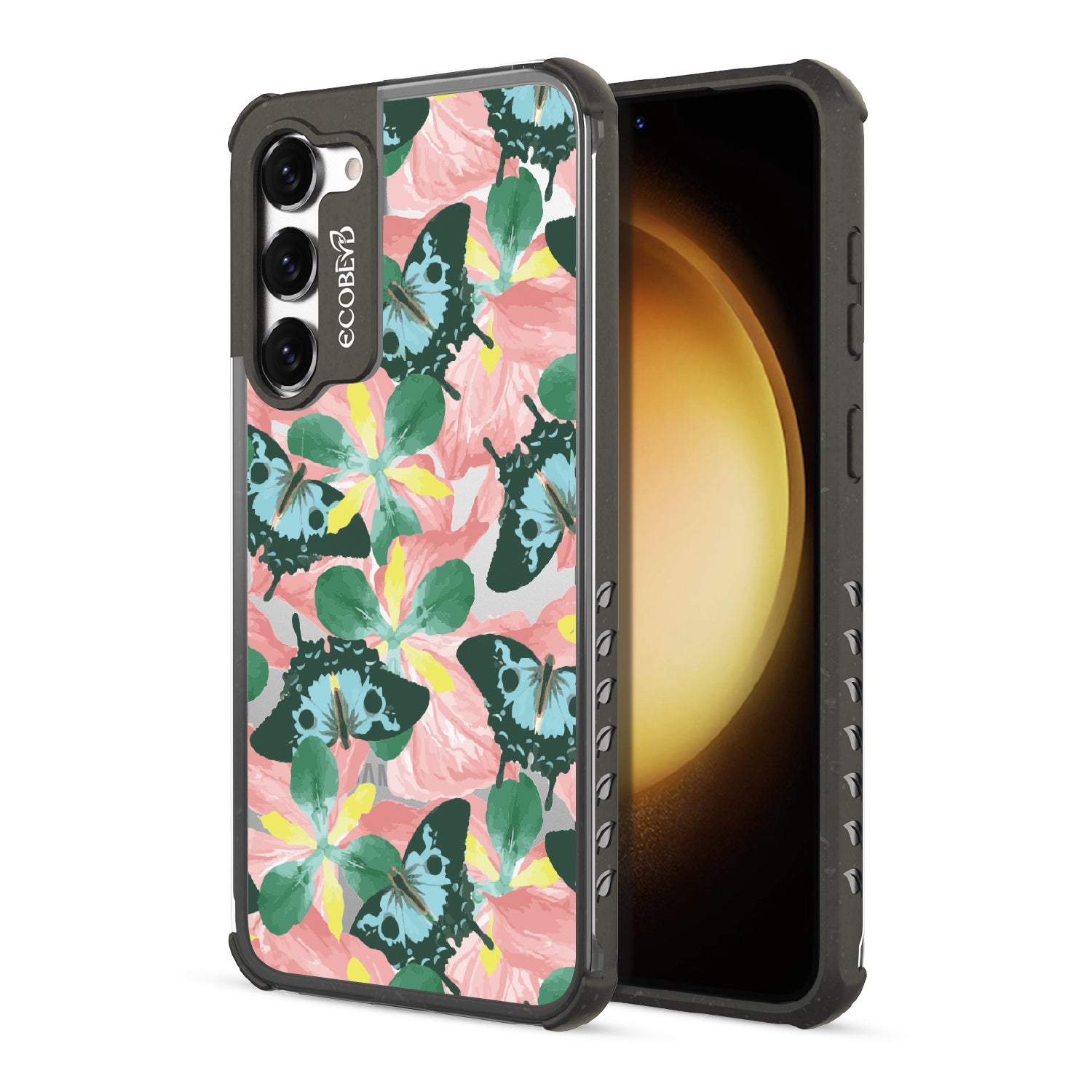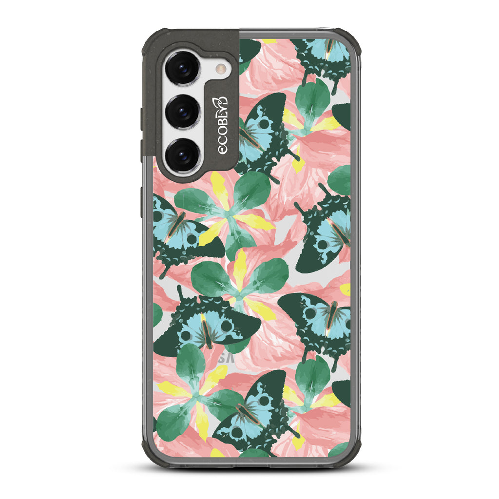 Time to look even more fly with the Fluttering Bouquet design on our Laguna clear Galaxy S23 case - featuring a stunning floral and butterfly phone case design that offers soaring style and protection while supporting ocean conservation efforts. This design is a secret garden of butterflies and flowers, with each petal blooming like a delicate wing that spreads and takes flight in the breeze in five captivating colors: Midnight Black, Cascade Blue, Foliage Green, Illuminating Yellow, and Wildflower Pink.