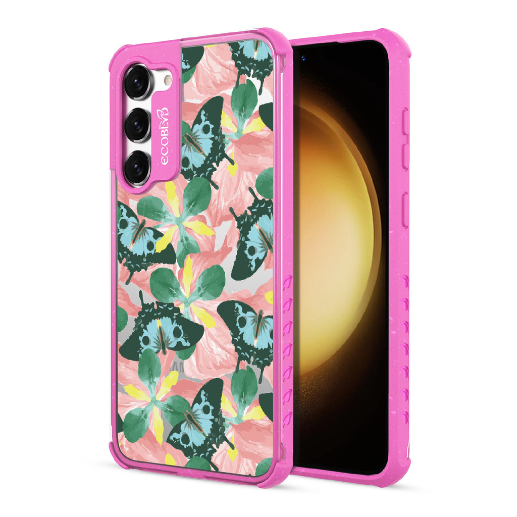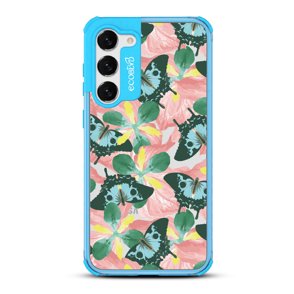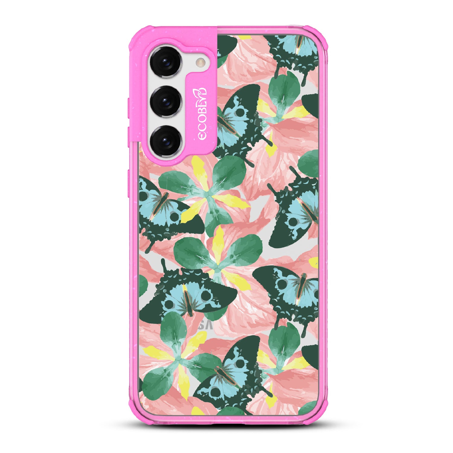 Time to look even more fly with the Fluttering Bouquet design on our Laguna clear Galaxy S23 case - featuring a stunning floral and butterfly phone case design that offers soaring style and protection while supporting ocean conservation efforts. This design is a secret garden of butterflies and flowers, with each petal blooming like a delicate wing that spreads and takes flight in the breeze in five captivating colors: Midnight Black, Cascade Blue, Foliage Green, Illuminating Yellow, and Wildflower Pink.