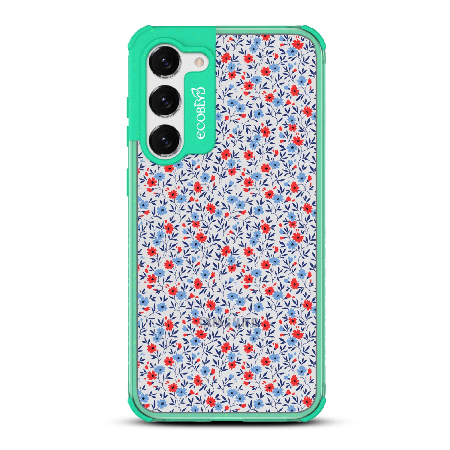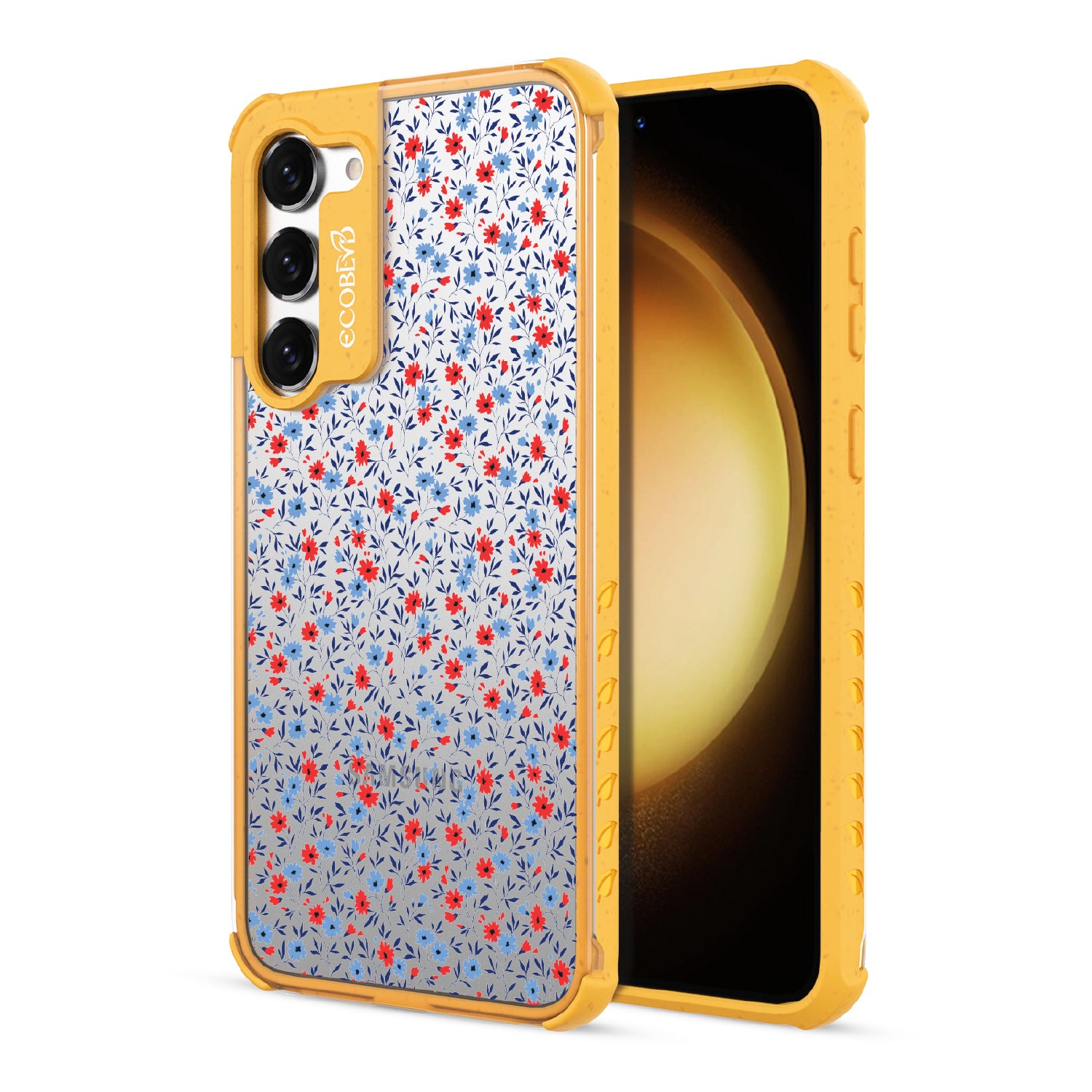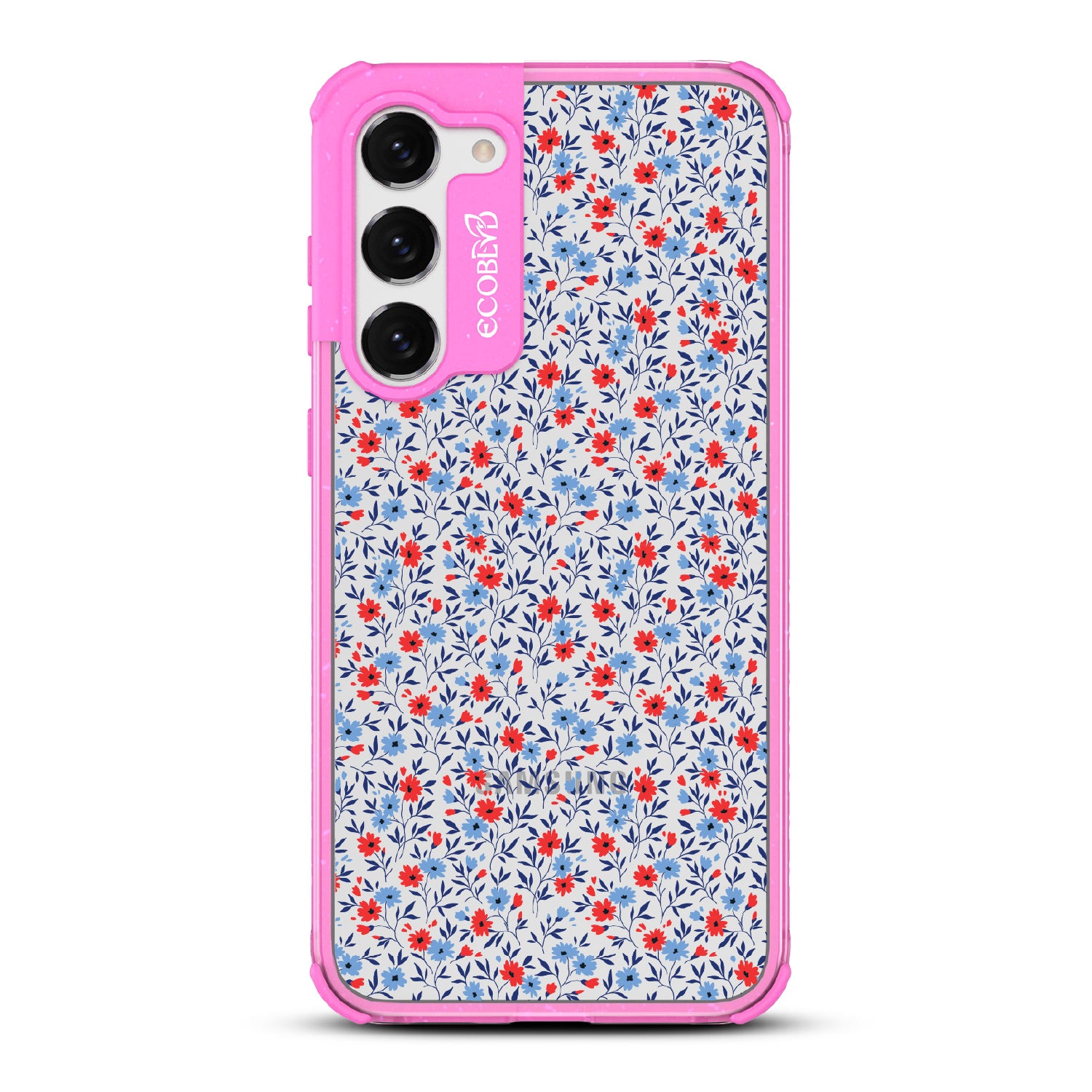Show off your country roots with the Home Grown design on our Laguna clear Galaxy S23 phone case. Adorned with red, white, and blue flowers, this vintage floral pattern brings rustic charm and, some true American flair.
