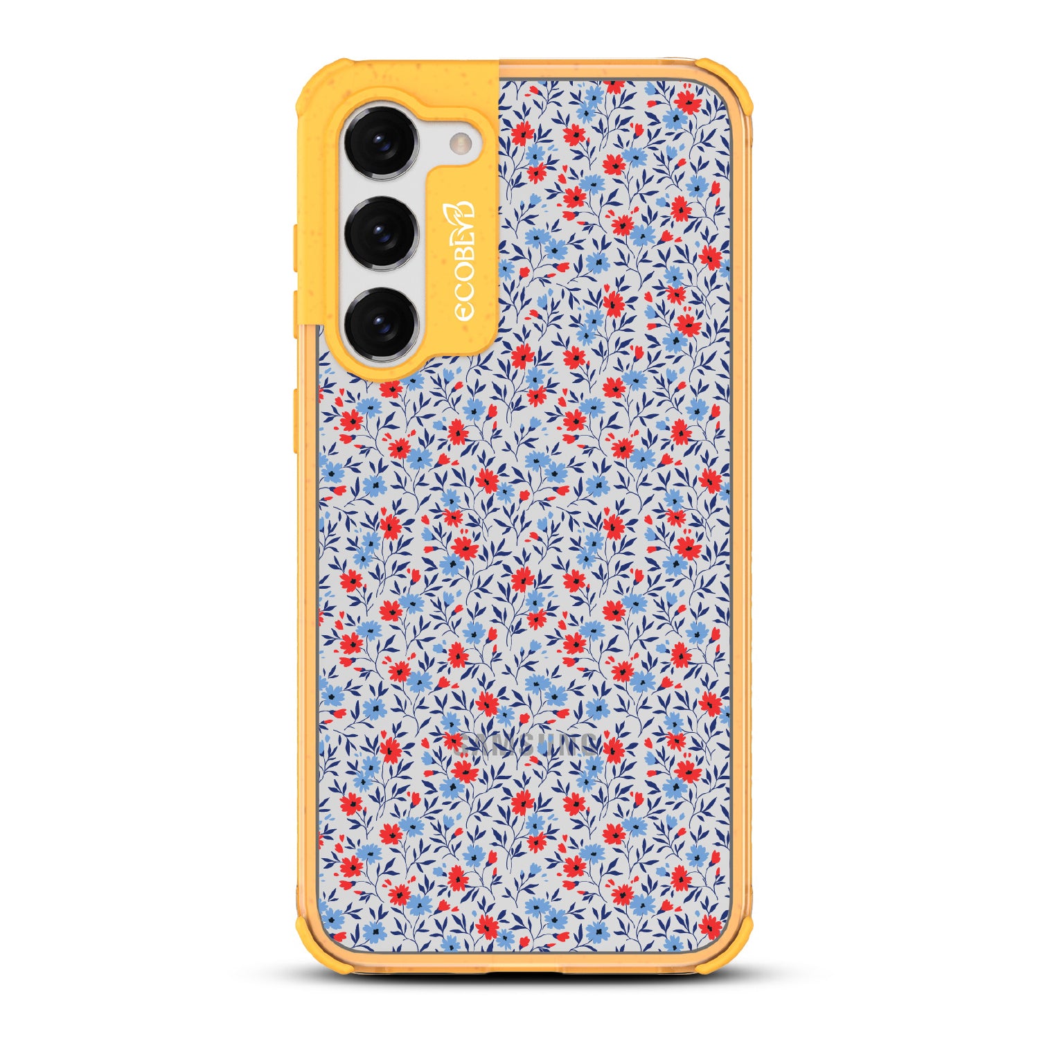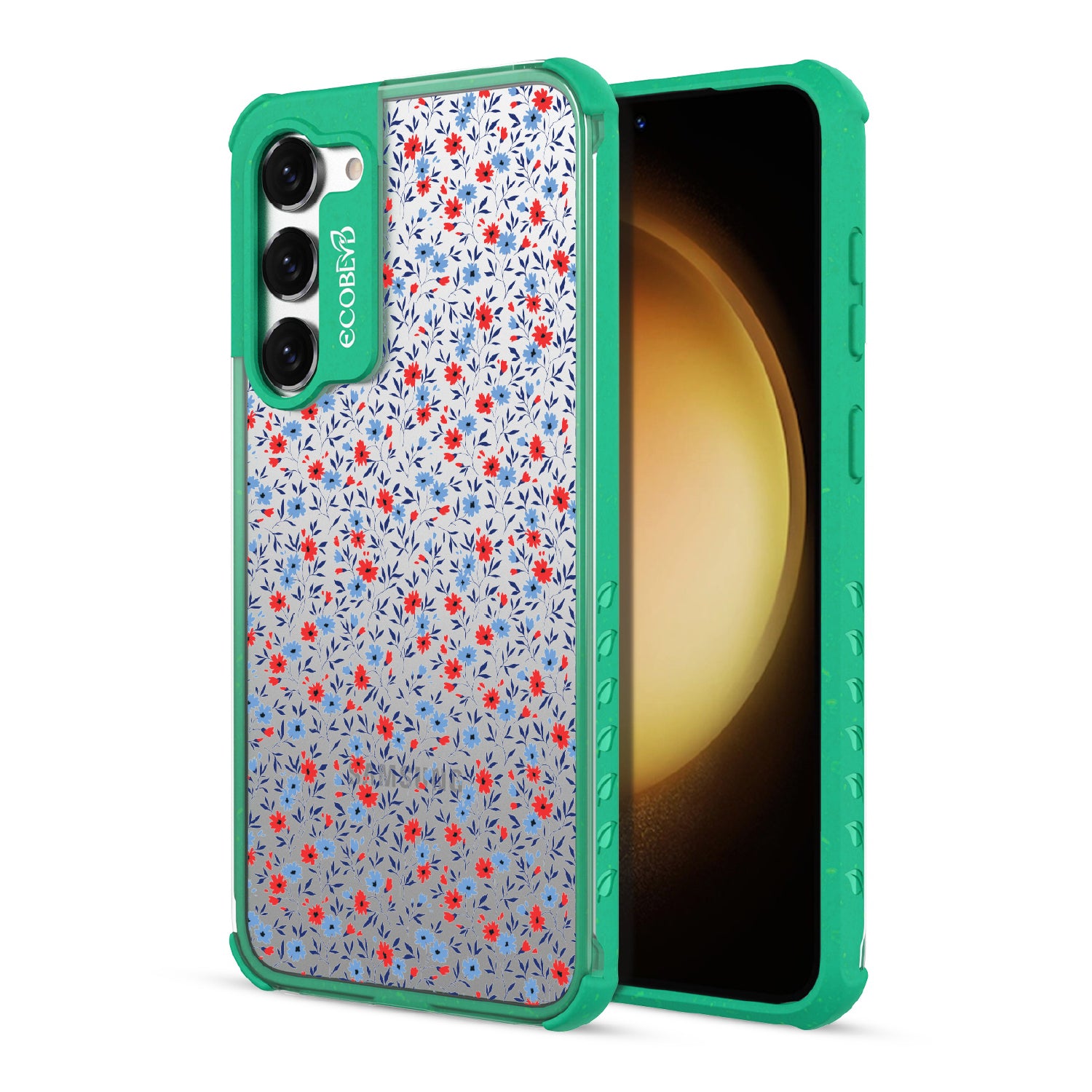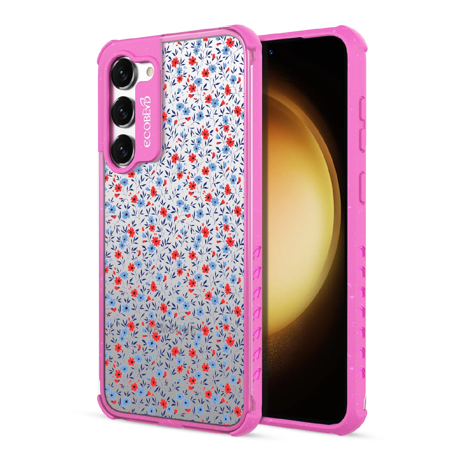 Show off your country roots with the Home Grown design on our Laguna clear Galaxy S23 phone case. Adorned with red, white, and blue flowers, this vintage floral pattern brings rustic charm and, some true American flair.