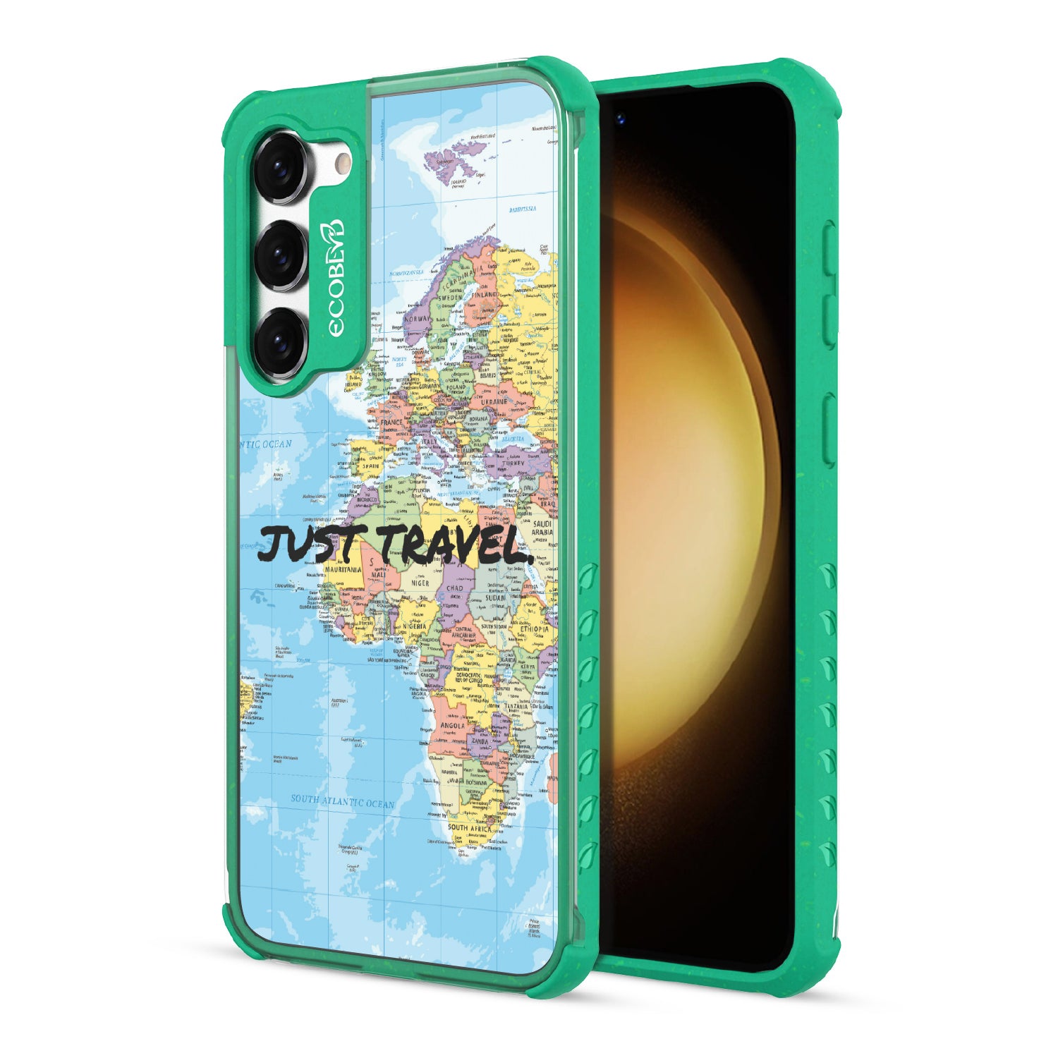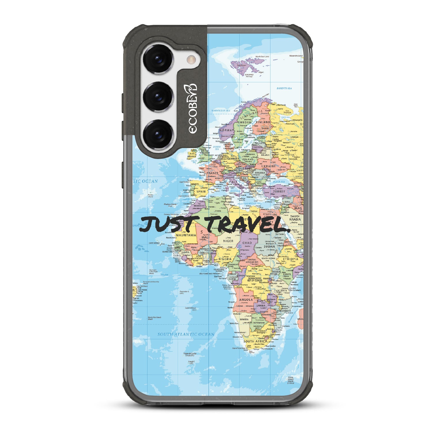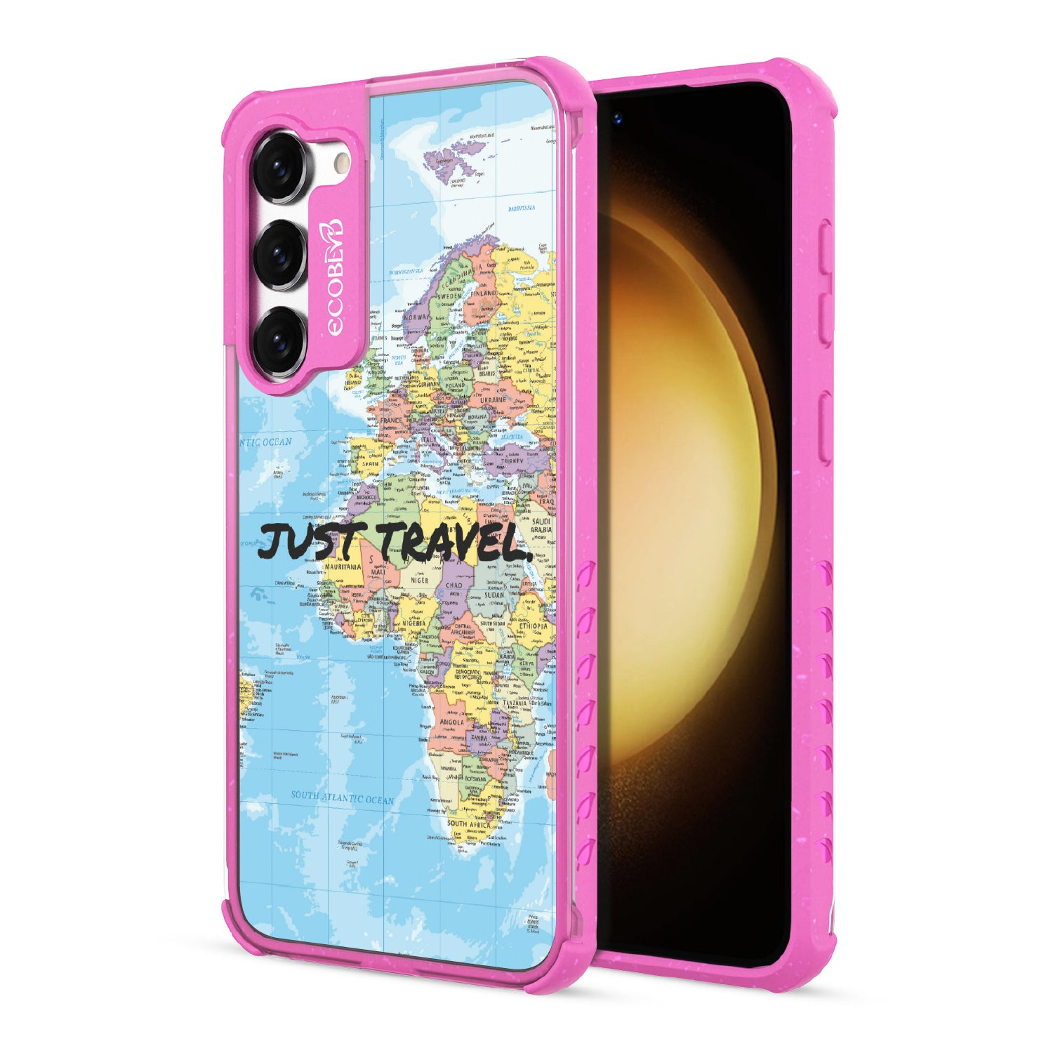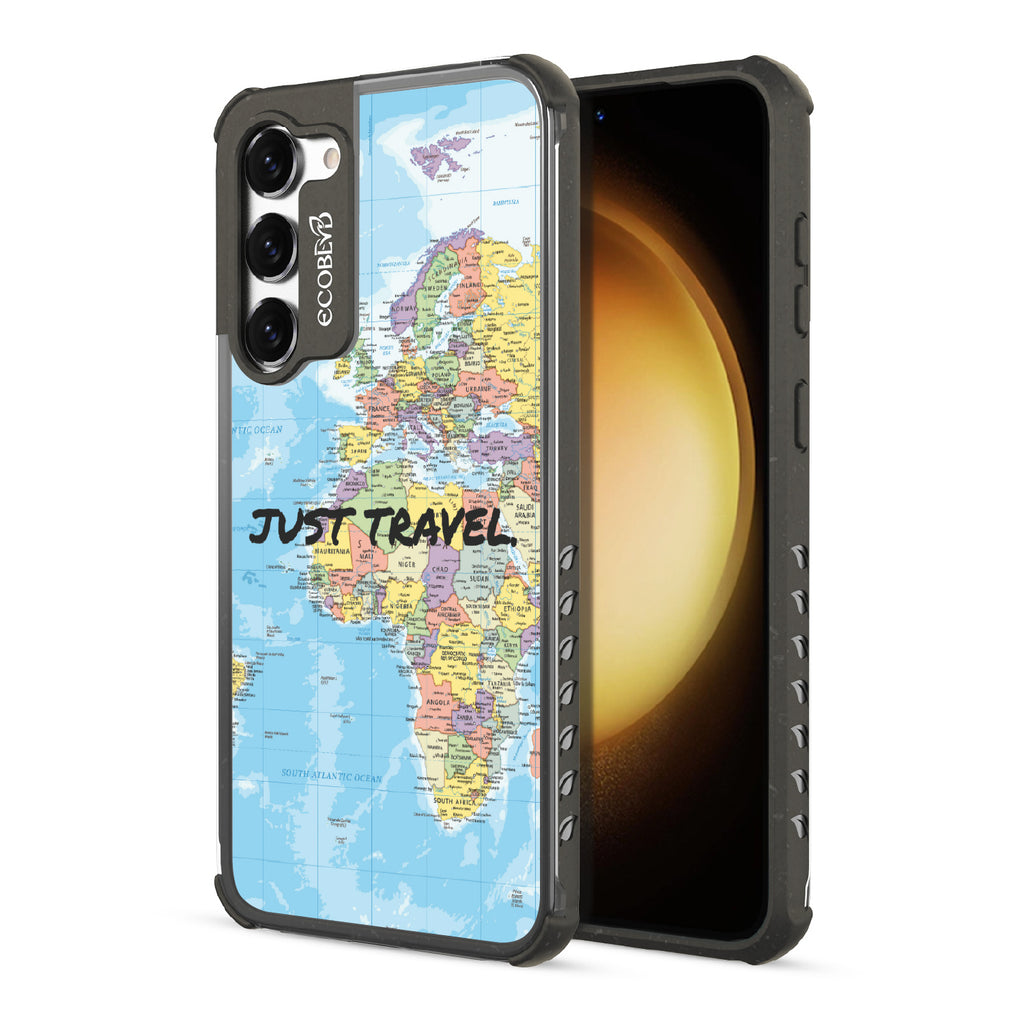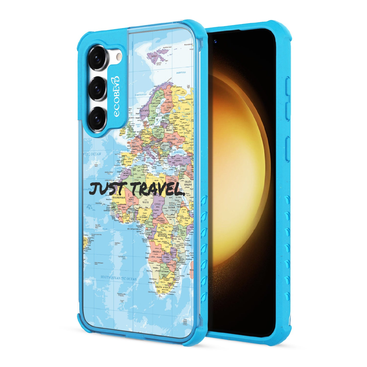 The Just Travel design on our Laguna clear Galaxy S23 phone case is your daily nudge to let go of the routine and lose yourself in the beauty of the unknown. Its bold map backdrop is a call to action—a call to just travel, to explore without limits, and to discover the rich diversity of cultures that make up our world. With this design, every day is a step closer to your next great adventure.