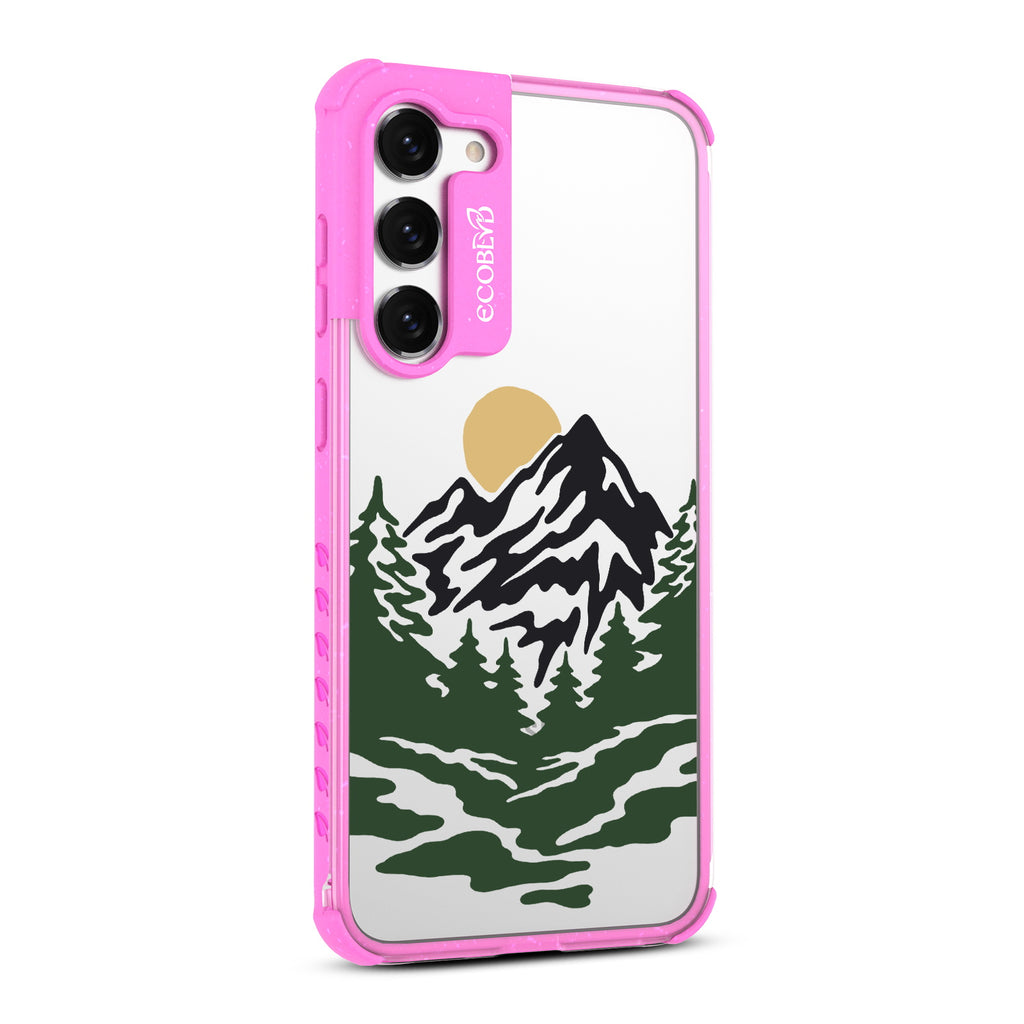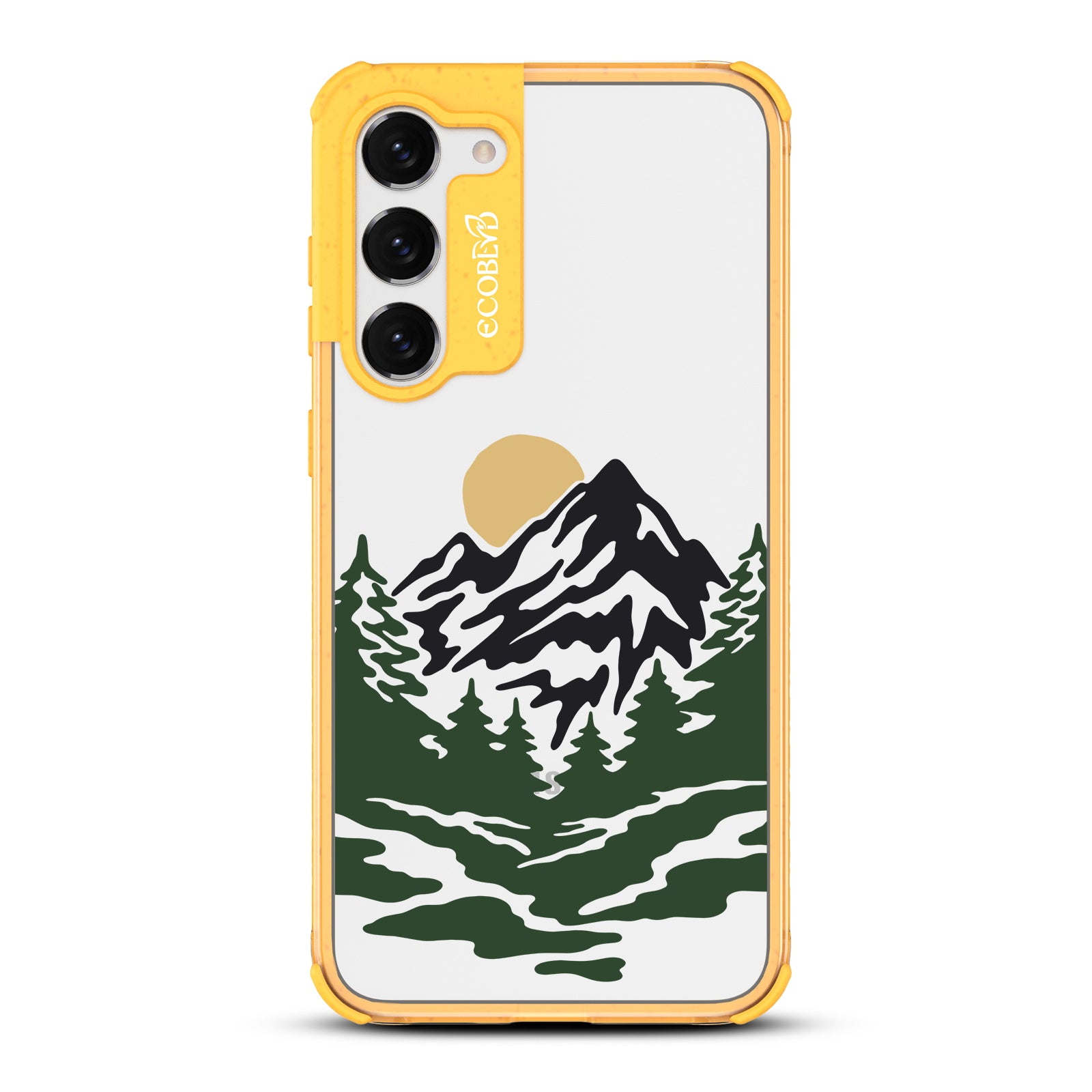 Like a breath of fresh air, the Mountains design on our Laguna clear Galaxy S23 phone case puts your phone in the middle of a stunning nighttime wooded mountain trail that captures the excitement of camping and hiking in five vibrant colors: Midnight Black, Cascade Blue, Foliage Green, Illuminating Yellow, and Wildflower Pink.