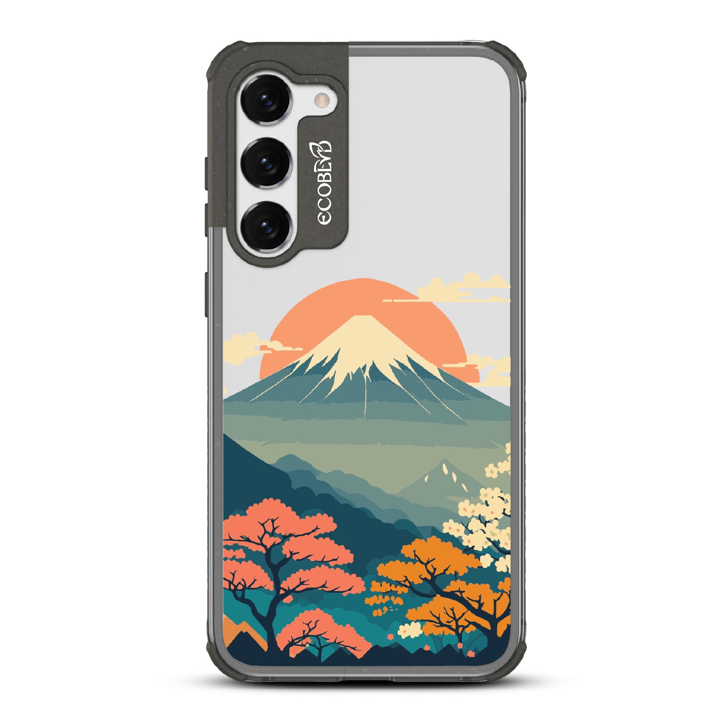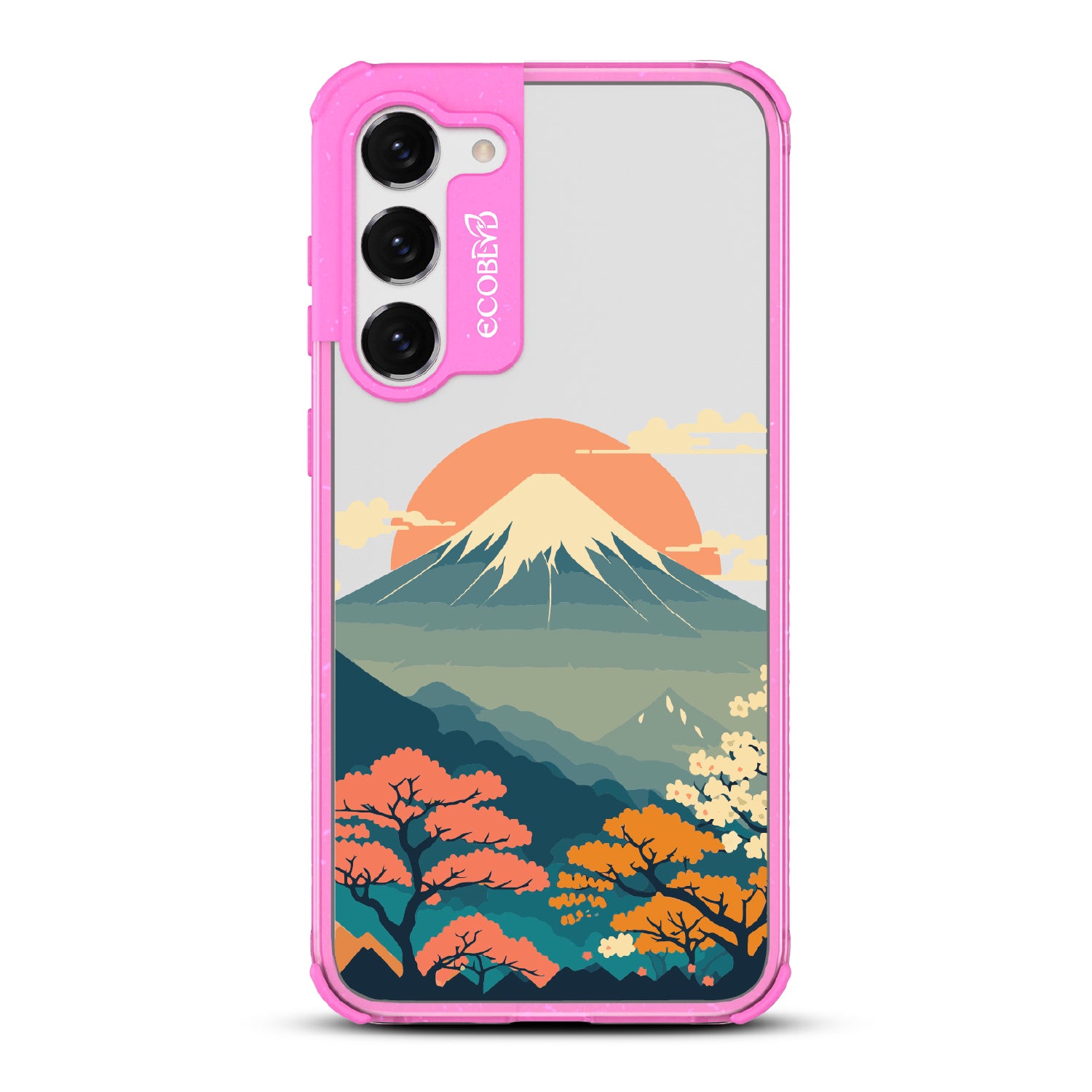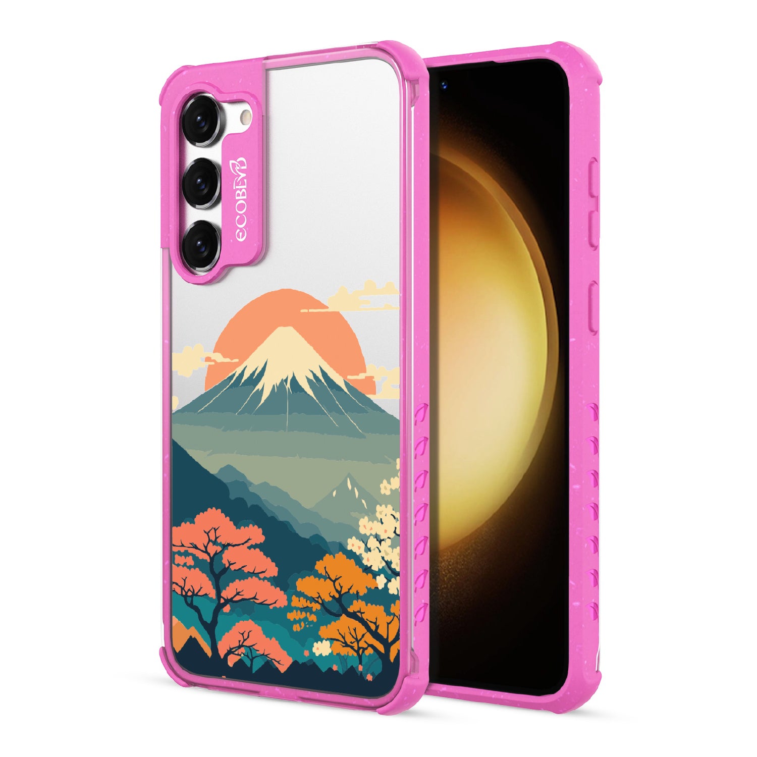 Witness the mesmerizing sunrise over Mt. Fuji with this captivating design on our Laguna clear Galaxy S23 phone case. As dawn breaks over Japan's iconic peak, painting the sky in hues of pink and orange, let your phone transport you to the serene beauty of this majestic landmark.