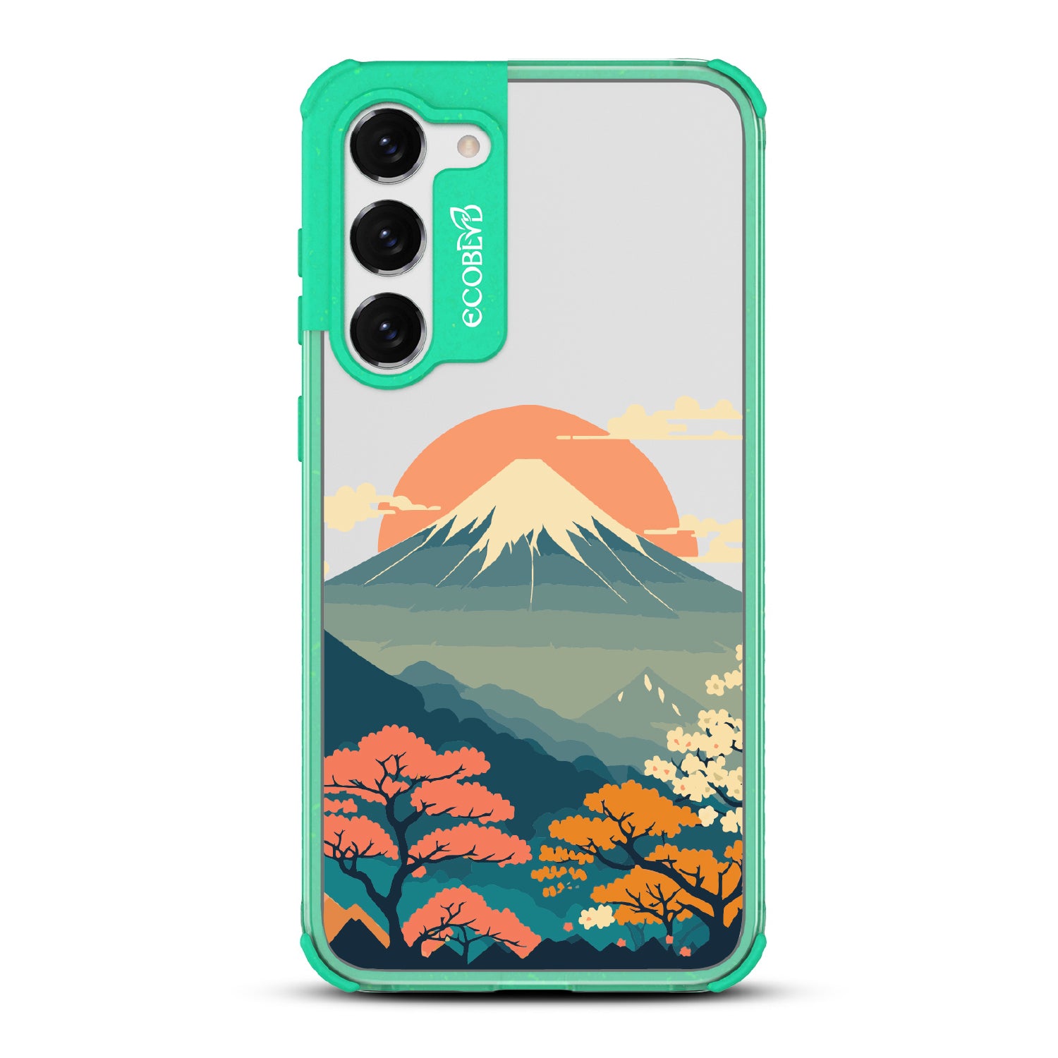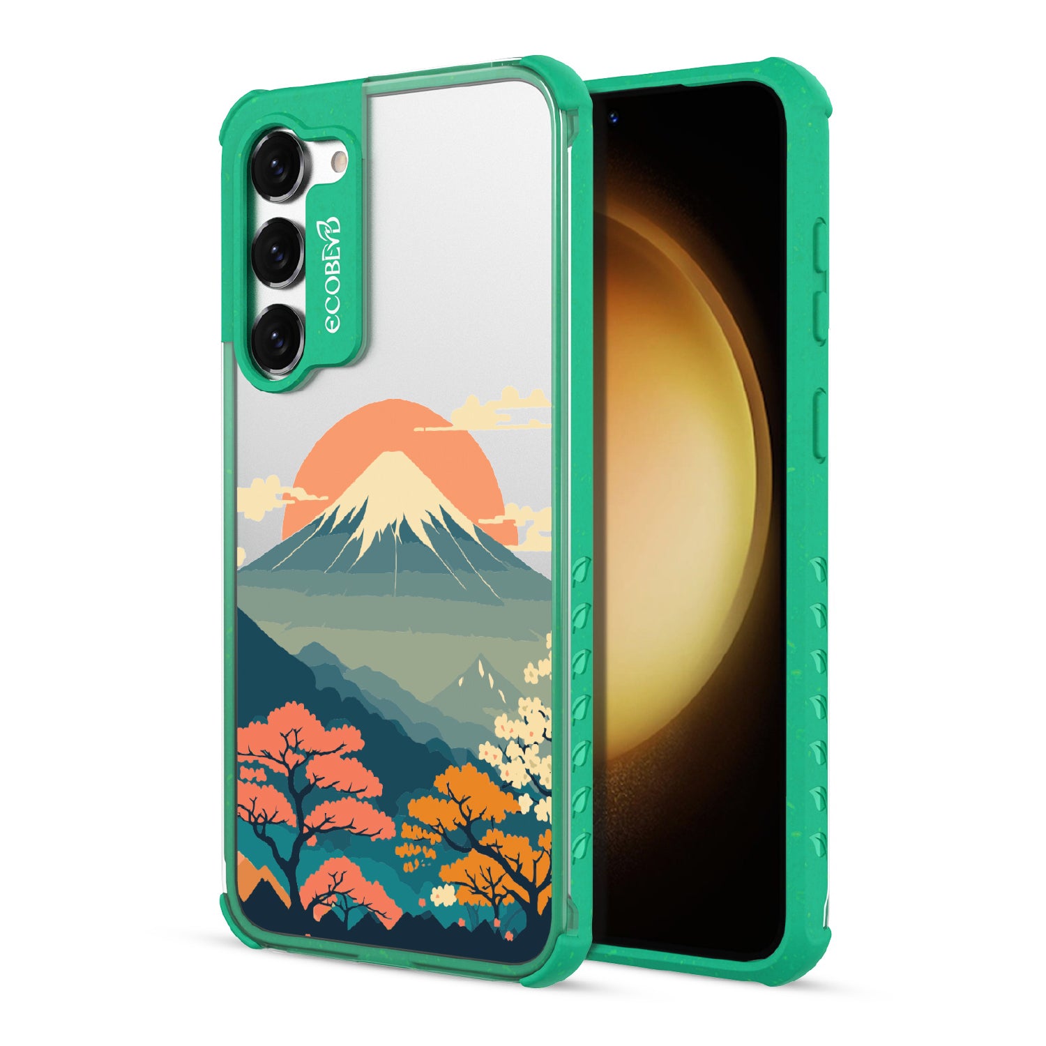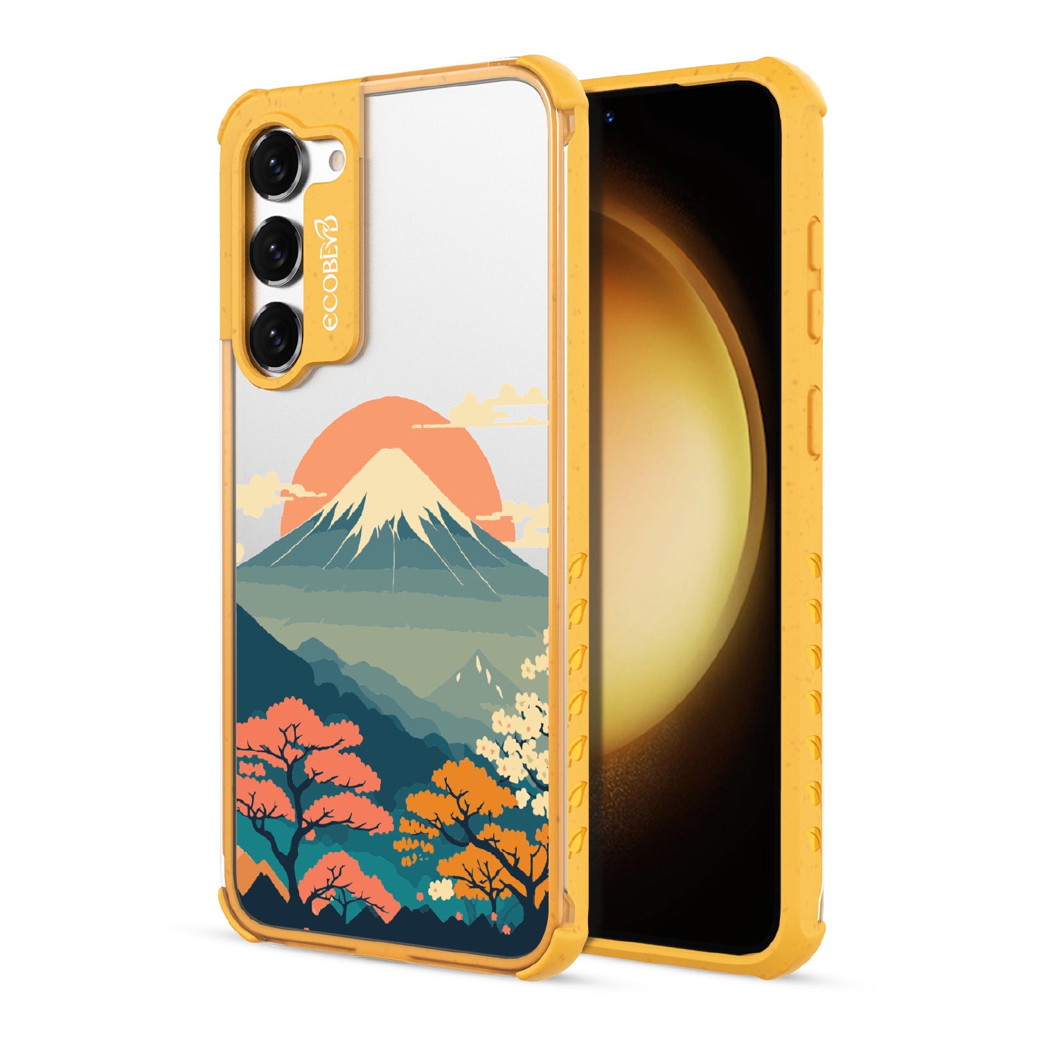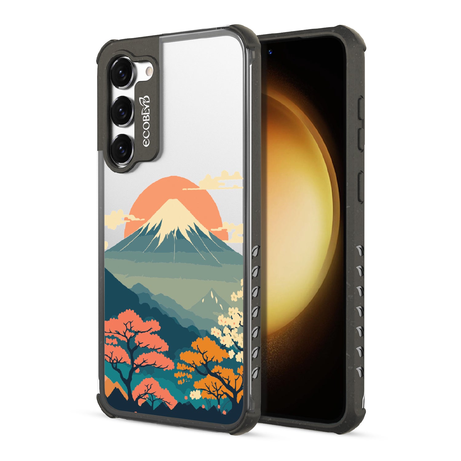Witness the mesmerizing sunrise over Mt. Fuji with this captivating design on our Laguna clear Galaxy S23 phone case. As dawn breaks over Japan's iconic peak, painting the sky in hues of pink and orange, let your phone transport you to the serene beauty of this majestic landmark.