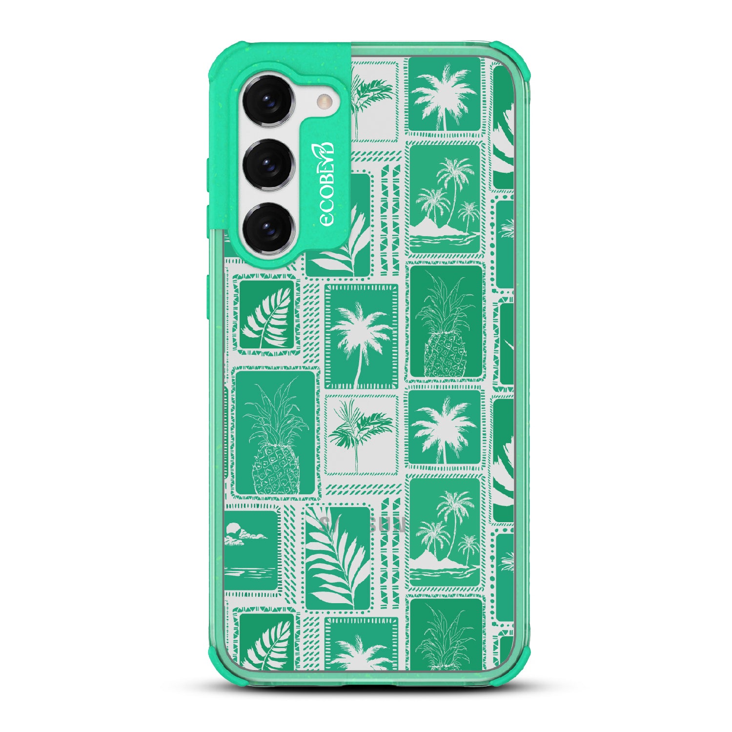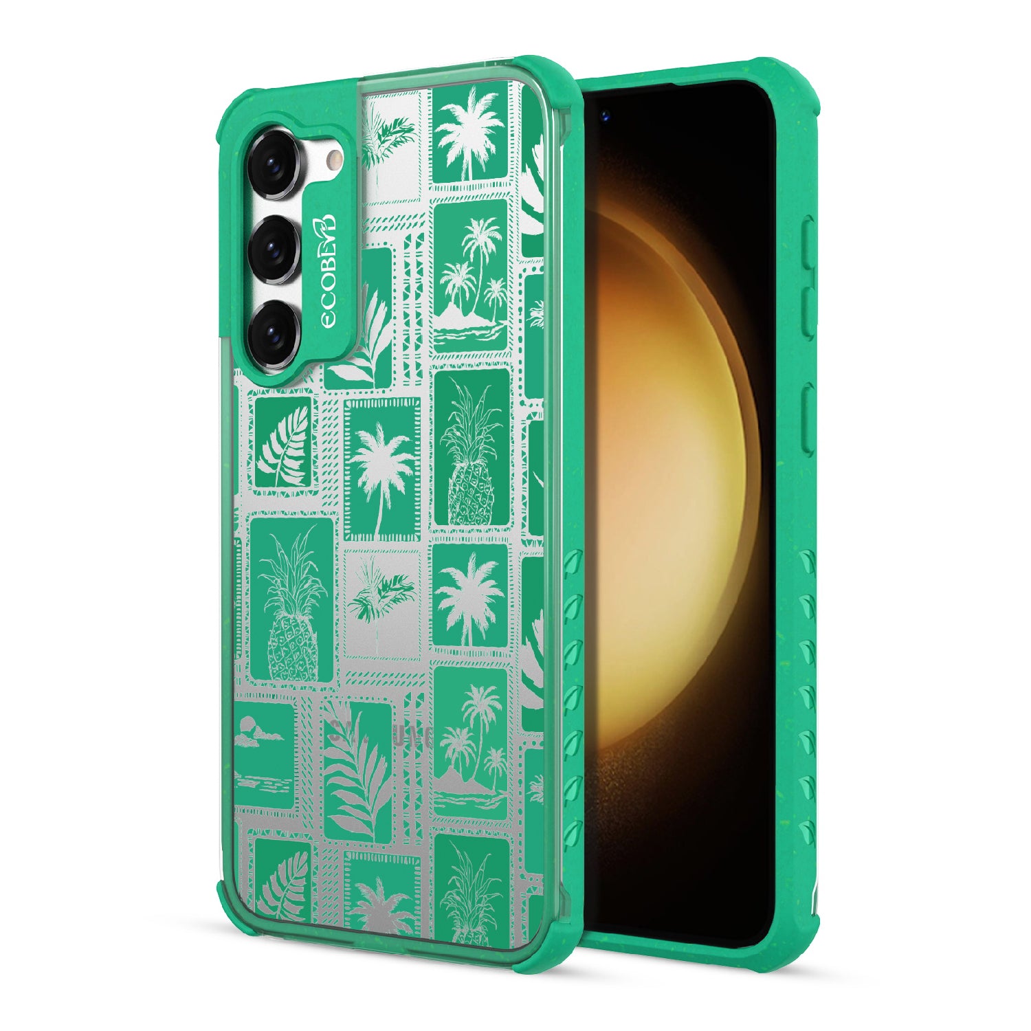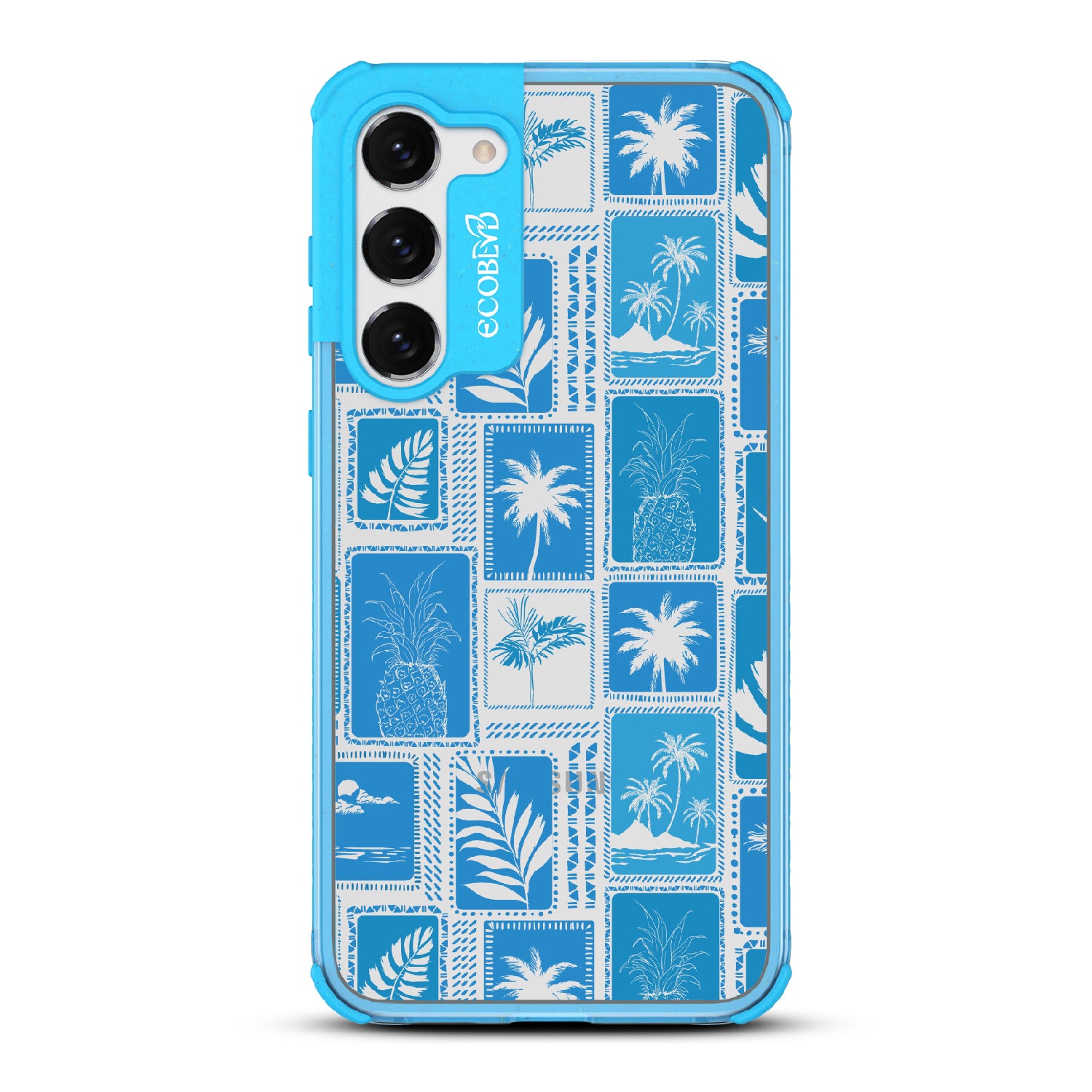 Get lost in the paradise of the Oasis design on our Laguna clear Galaxy S23 case. It's like a secret hideaway where palm trees, palm fronds, pineapples, and islands await your discovery. Slip your phone into this tropical wonderland and allow it to light up your imagination, fuel your wanderlust, and transport you to sun-soaked shores!