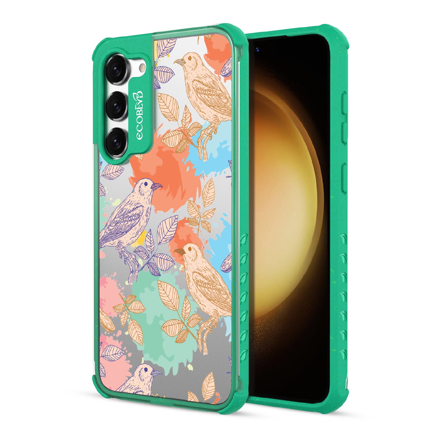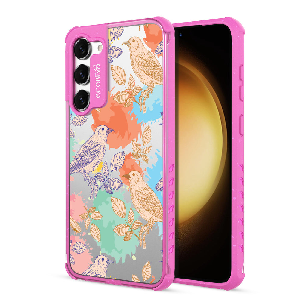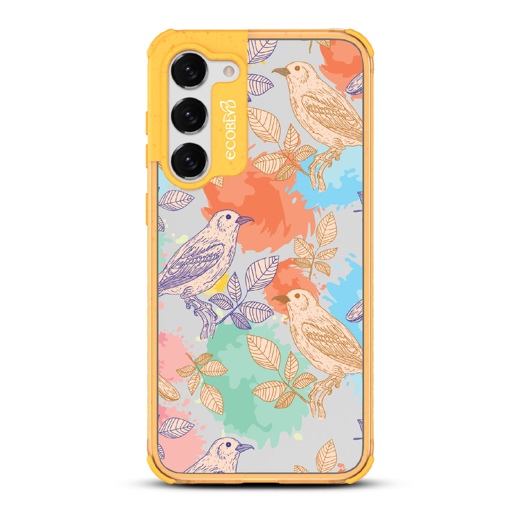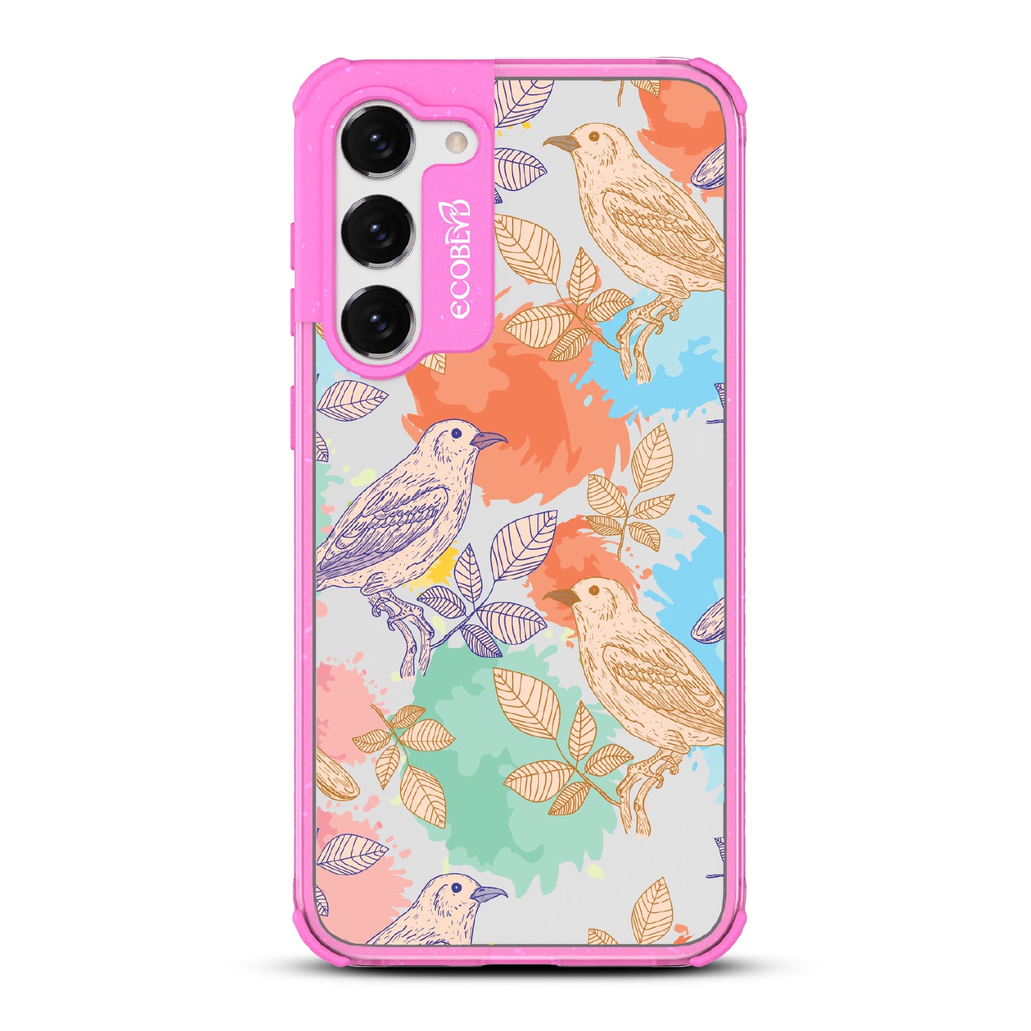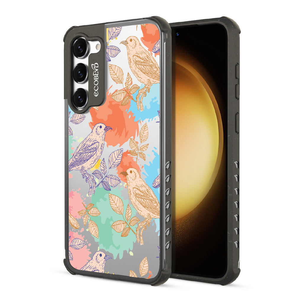Get ready to soar to new heights with the Perch Perfect design for the Laguna clear Galaxy S23 case. This feathered symphony will have you tweeting in delight as colorful birds perch on branches, creating a harmonious composition that hits all the right notes. The Perch Perfect design is like a symphony for your phone, hitting all the right notes with its playful bursts of color and intricate line art birds perched on a branch. Each bird adds its own unique melody to the song, creating a harmonious design that captures the essence of feeling wild and free. Let your phone be the conductor of this beautiful masterpiece with Perch Perfect in five captivating colors: Midnight Black, Cascade Blue, Foliage Green, Illuminating Yellow, and Wildflower Pink.