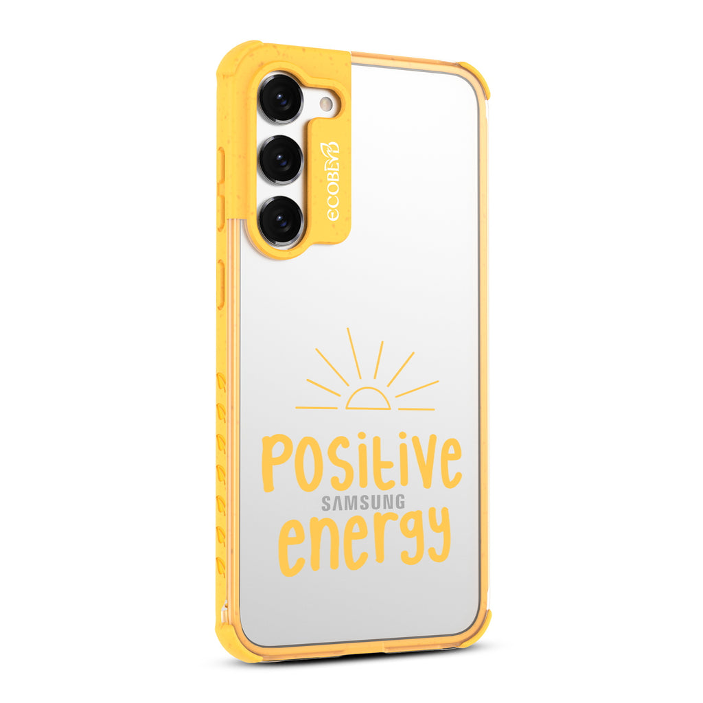 Radiate warmth and happiness from your phone with the Positive Energy design on our Laguna clear Galaxy S23 case, as the rising sun inspires you to spread joy from your Galaxy S23 in five vibrant colorways: Midnight Black, Cascade Blue, Foliage Green, Illuminating Yellow, and Wildflower Pink.