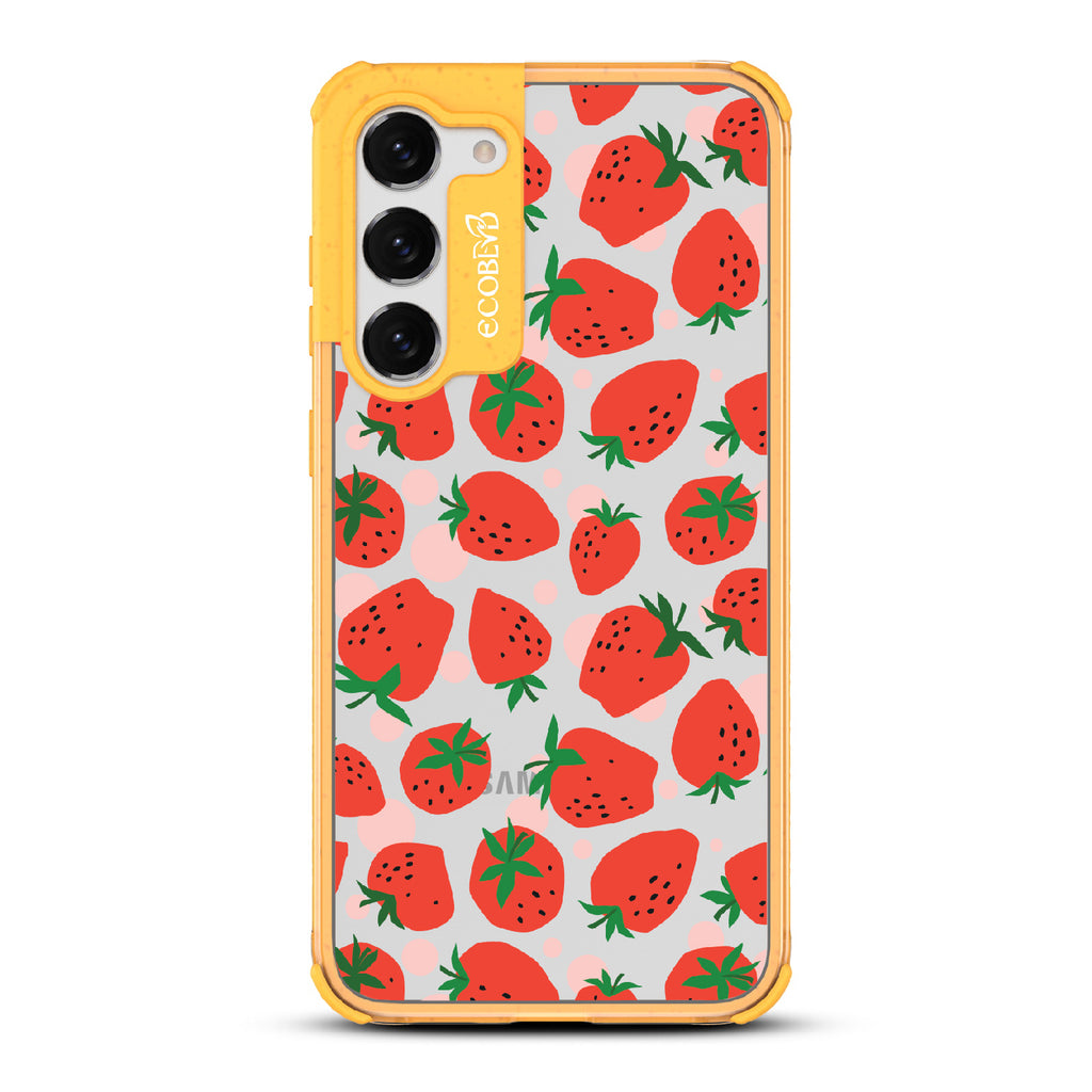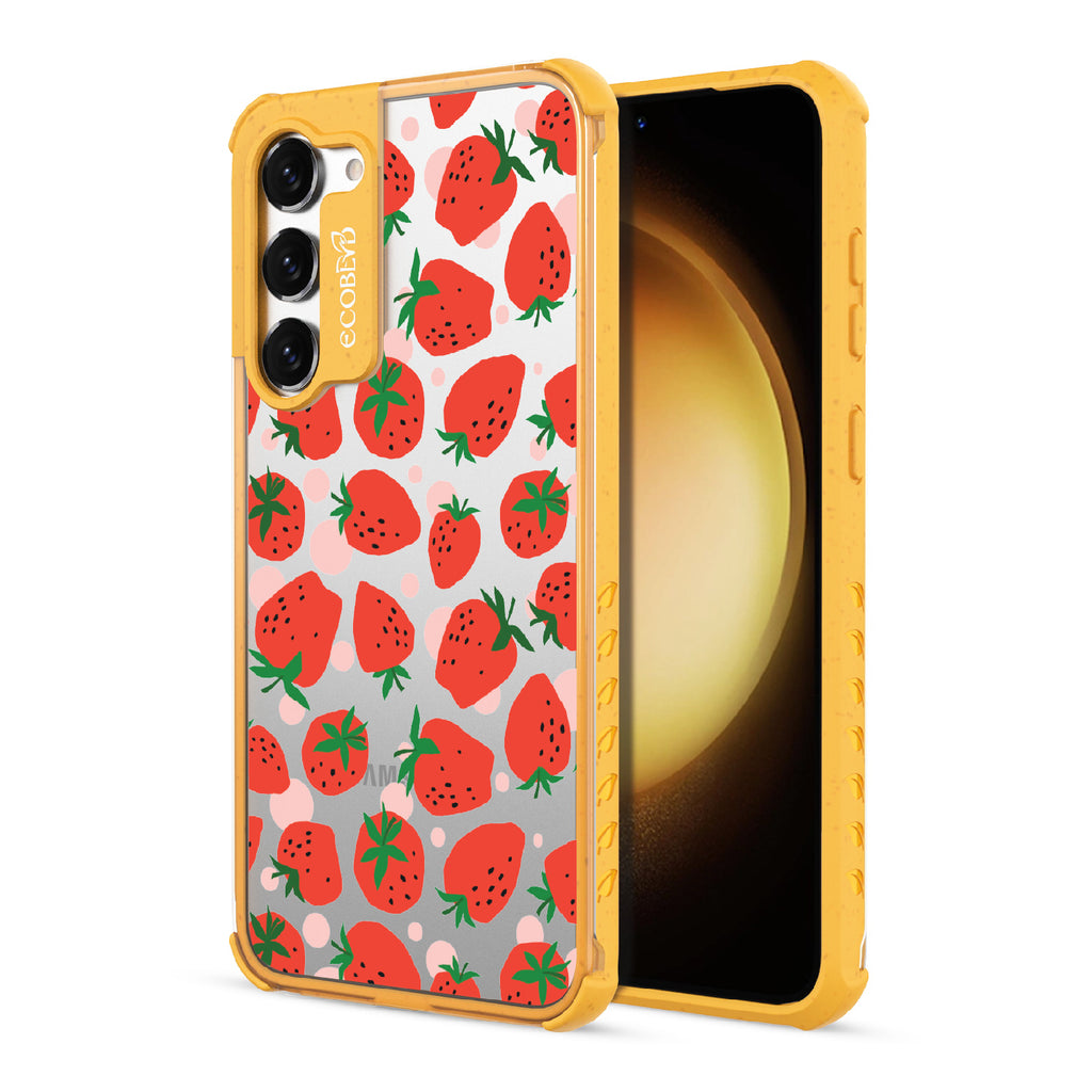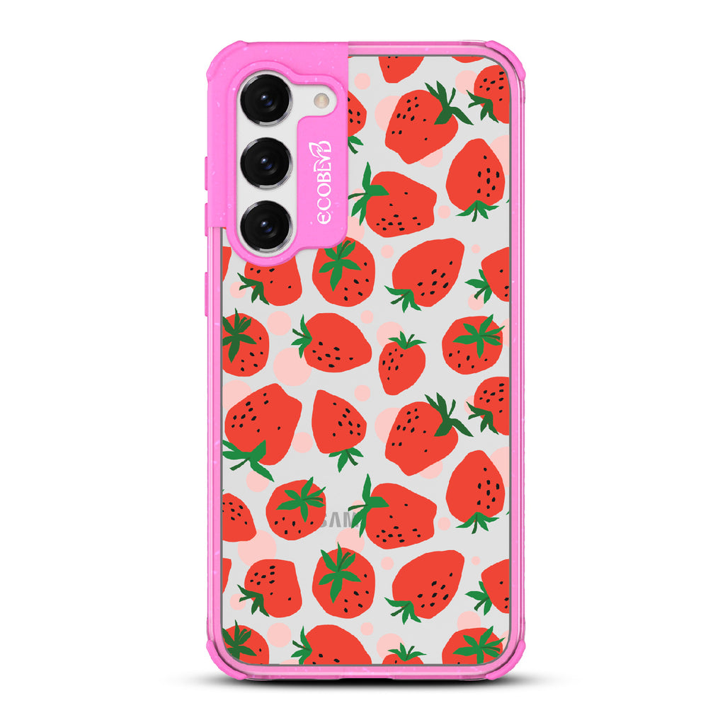 Prepare to pluck the freshest style with the Strawberry Fields design on our Laguna clear Galaxy S23 case. As a juicy tribute to the vibrant flavors of summer, this design evokes the allure of ripe strawberries. This delightful fruit can transform your phone into a ripe treasure showcasing its beauty and taste. Get in on the berry-licious vibes and let the Strawberry Fields design be your ripe companion wherever you go.