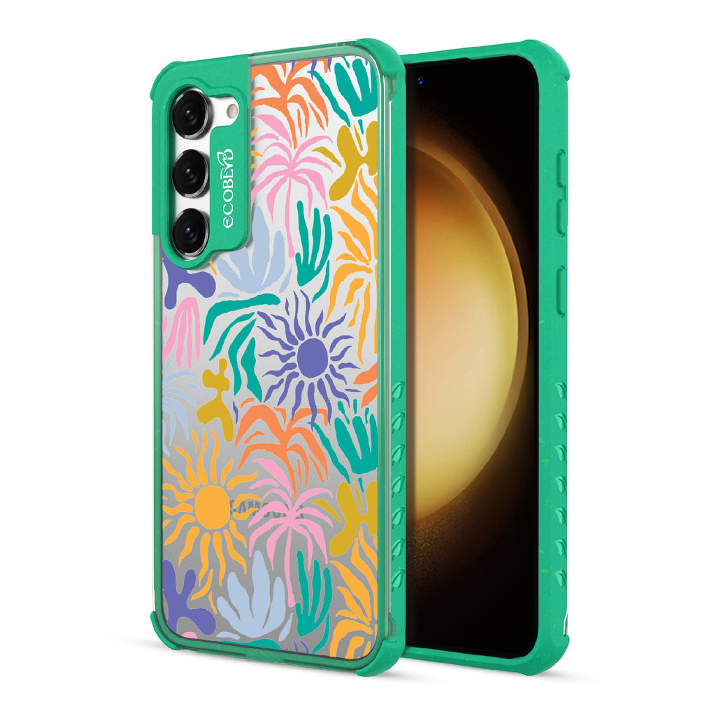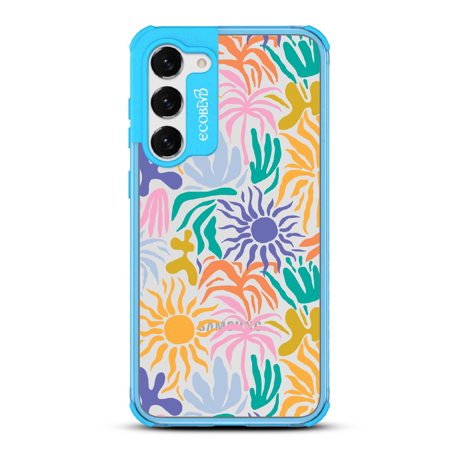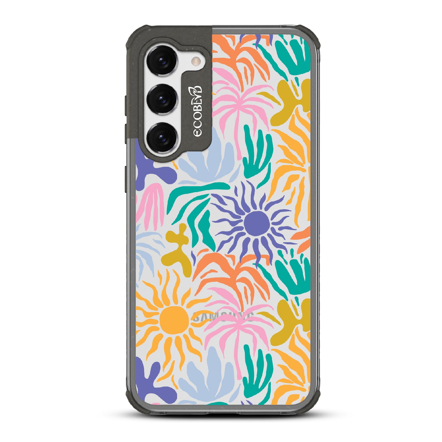Set your phone aglow with our bright Sun-Kissed design on our Laguna clear Galaxy S23 case. With its sun-shaped bud and colorful petals, this device becomes a moving canvas, radiating joy and positivity. This design embodies the warmth and vibrancy of sunflowers, capturing the essence of sun-kissed days and infusing every moment with a cheerful and uplifting energy.