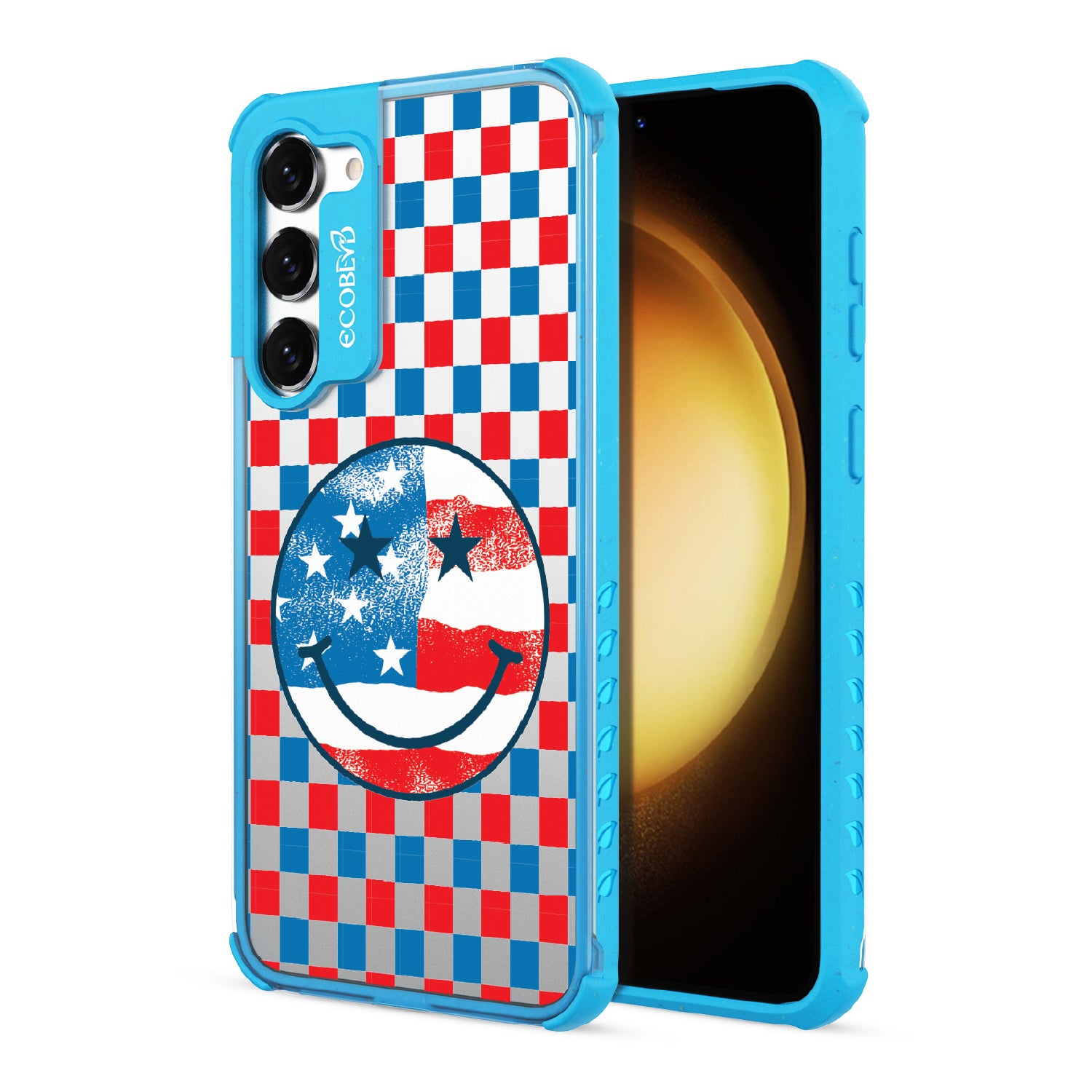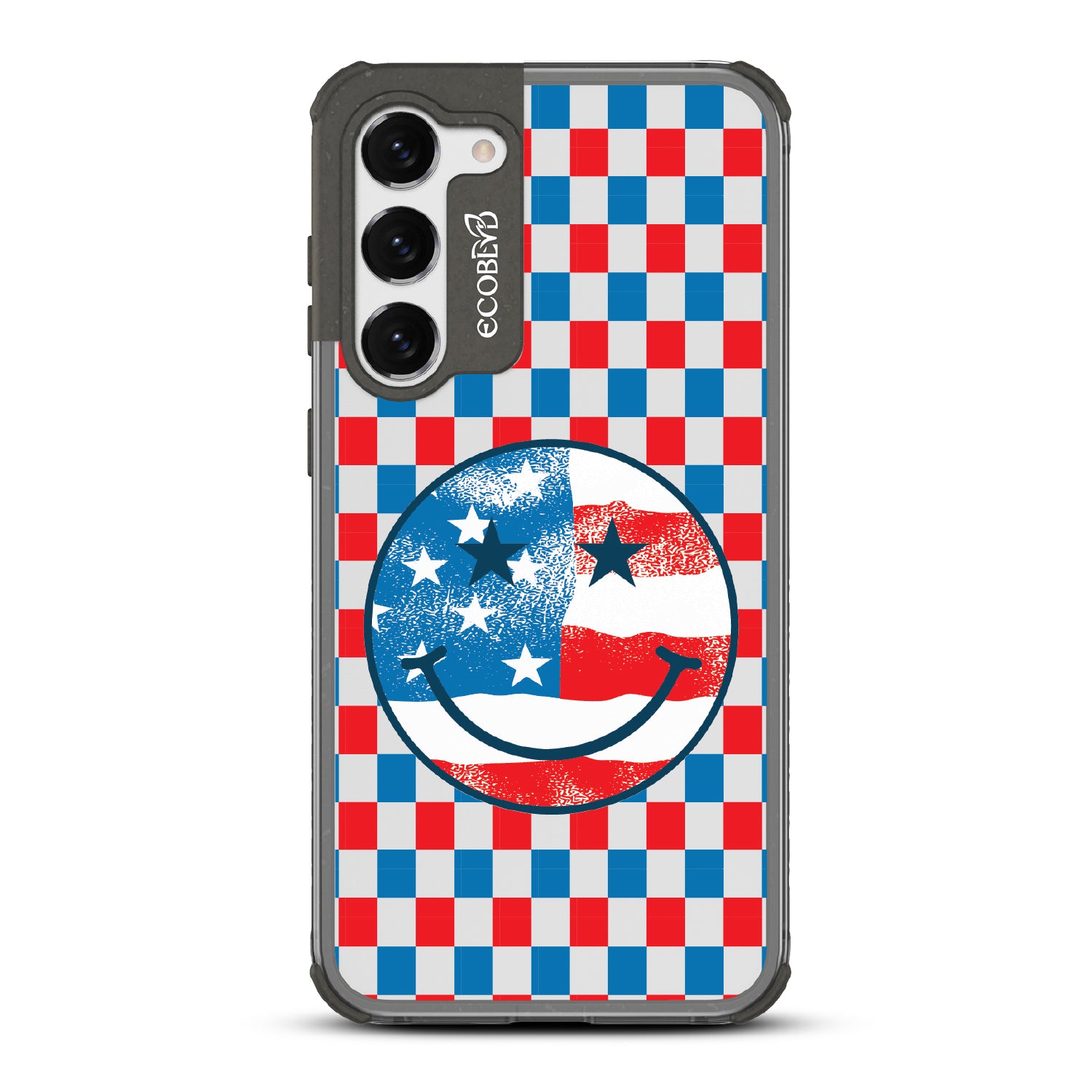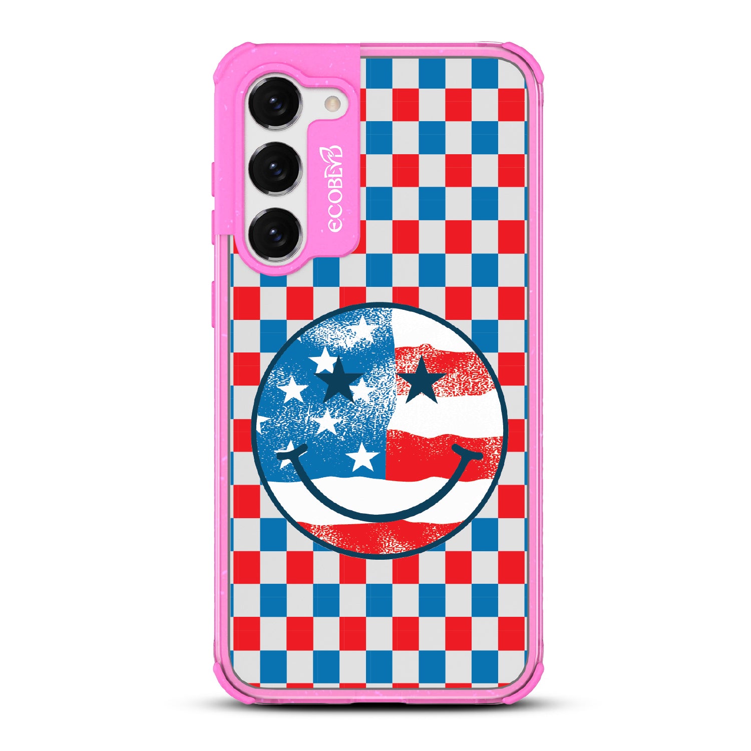 Rock your stars and stripes with The Anthem design on our Laguna clear Galaxy S23 phone case. The edgy red, white, and blue checker print and iconic smiley face embody the punk spirit of freedom. Turn up the volume and let your phone sing its anthem.