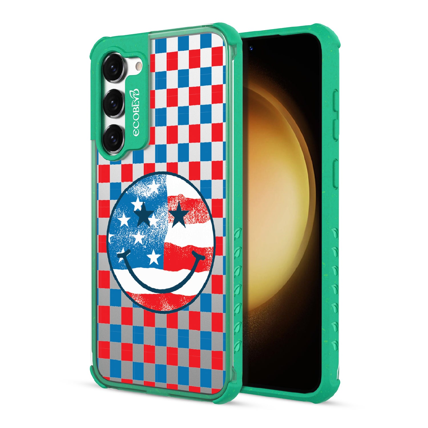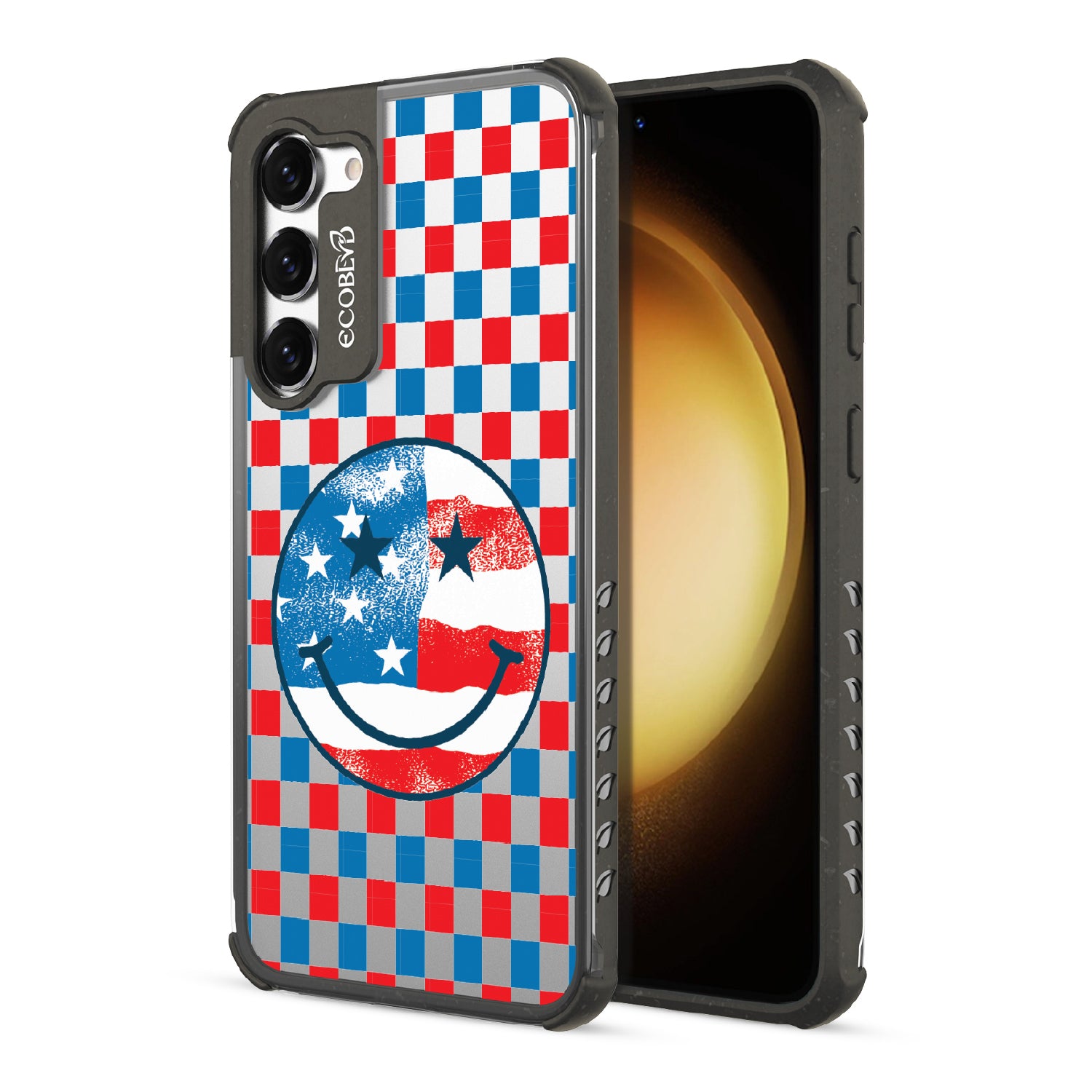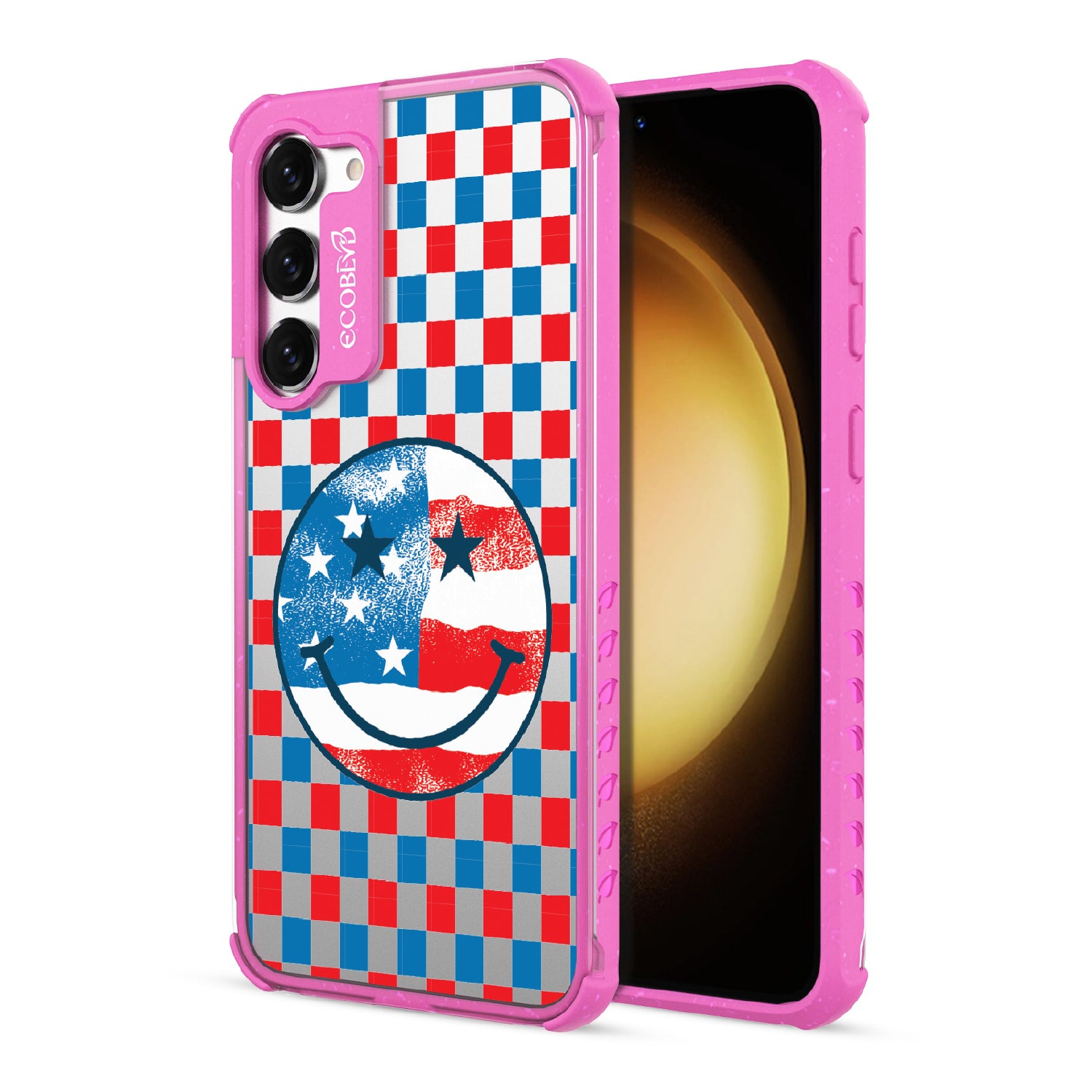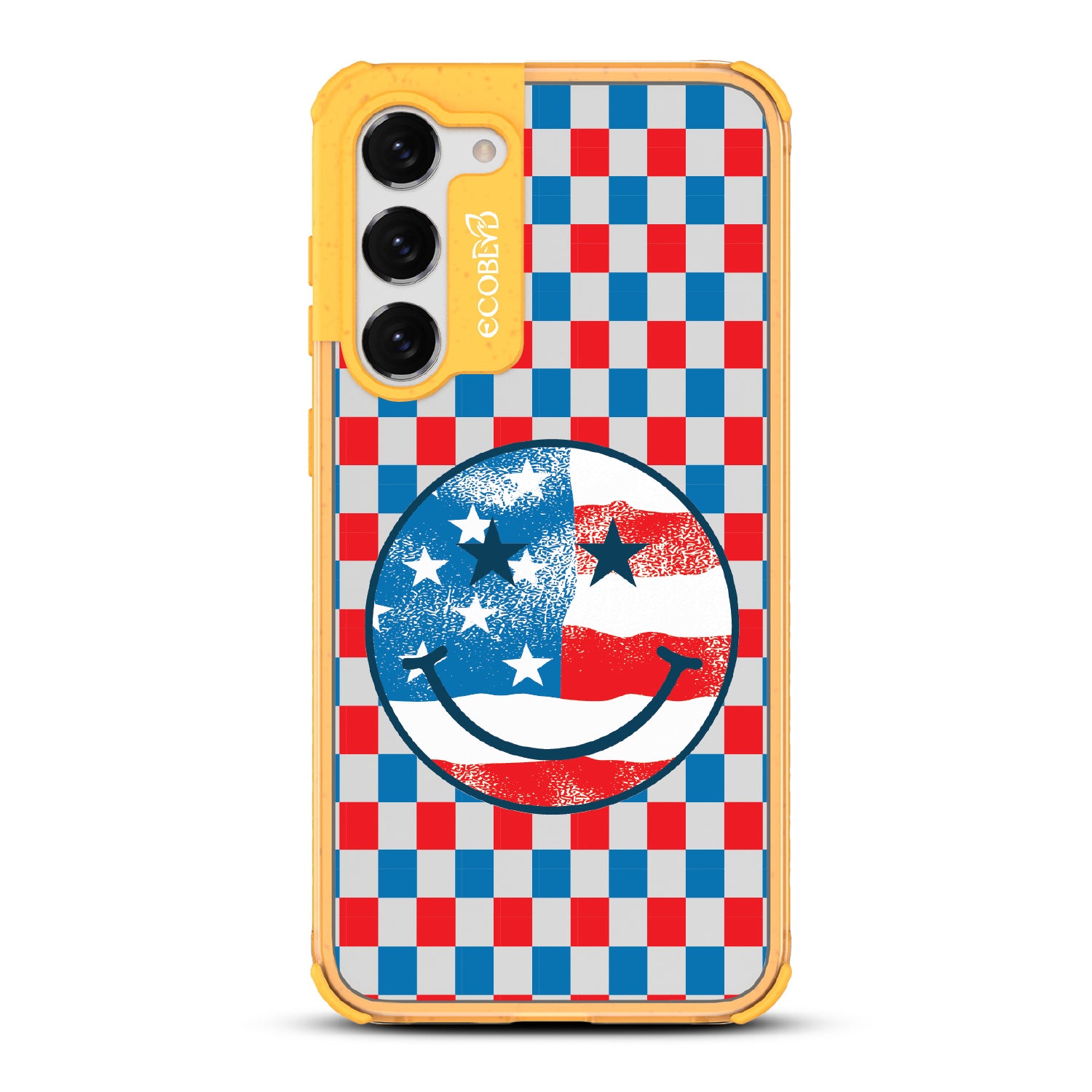 Rock your stars and stripes with The Anthem design on our Laguna clear Galaxy S23 phone case. The edgy red, white, and blue checker print and iconic smiley face embody the punk spirit of freedom. Turn up the volume and let your phone sing its anthem.