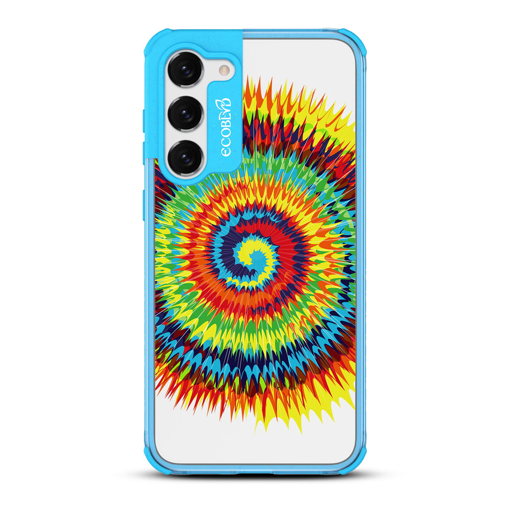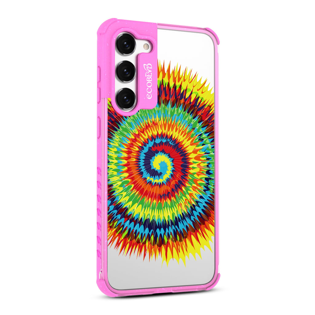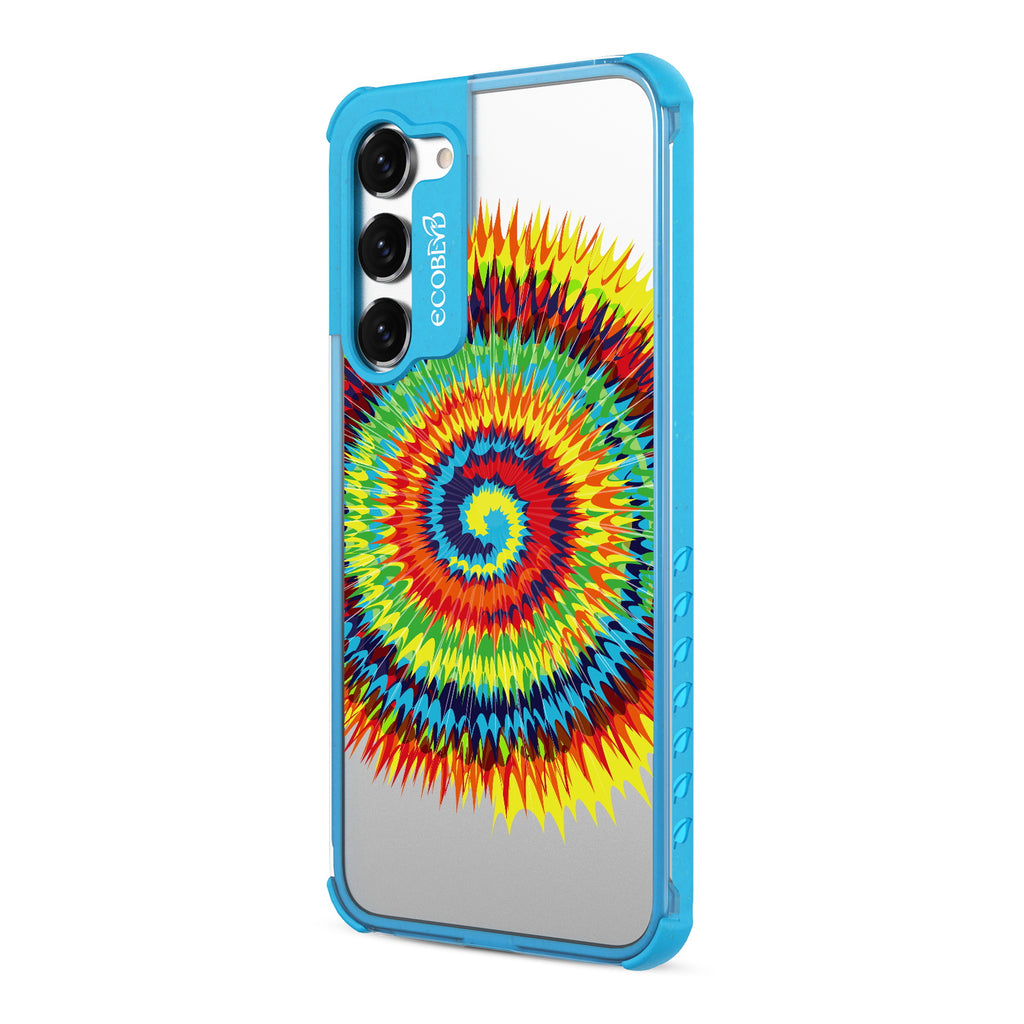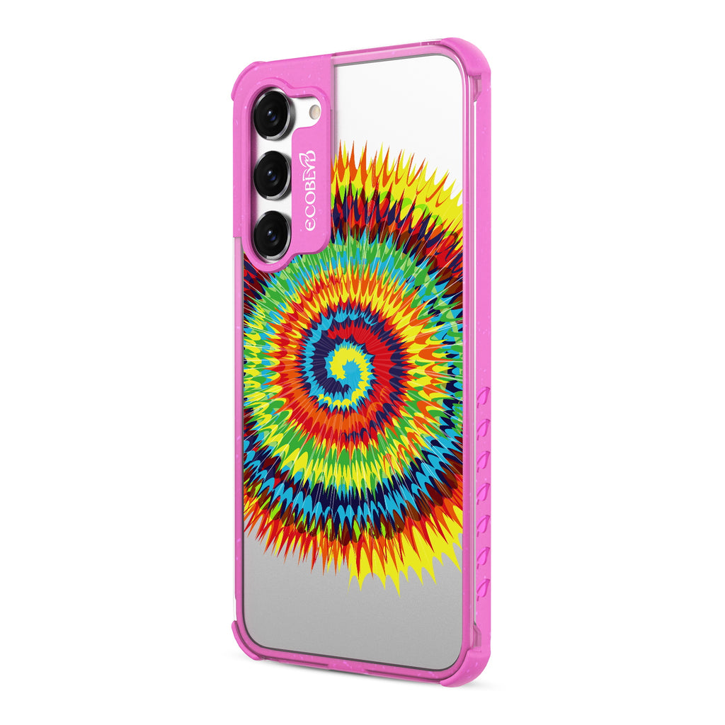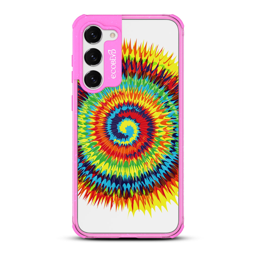 Bringing back the summer days of backyard BBQs, beach days, and fun in the sun, the Tie Dye design on our Laguna clear Galaxy S23 case features a retro rainbow swirl pattern giving your phone an eye-catching twist.
