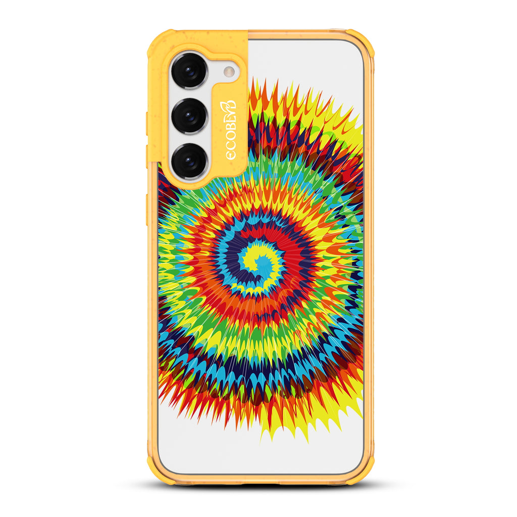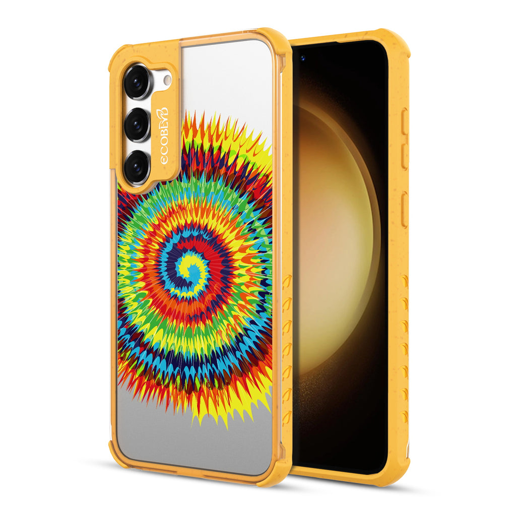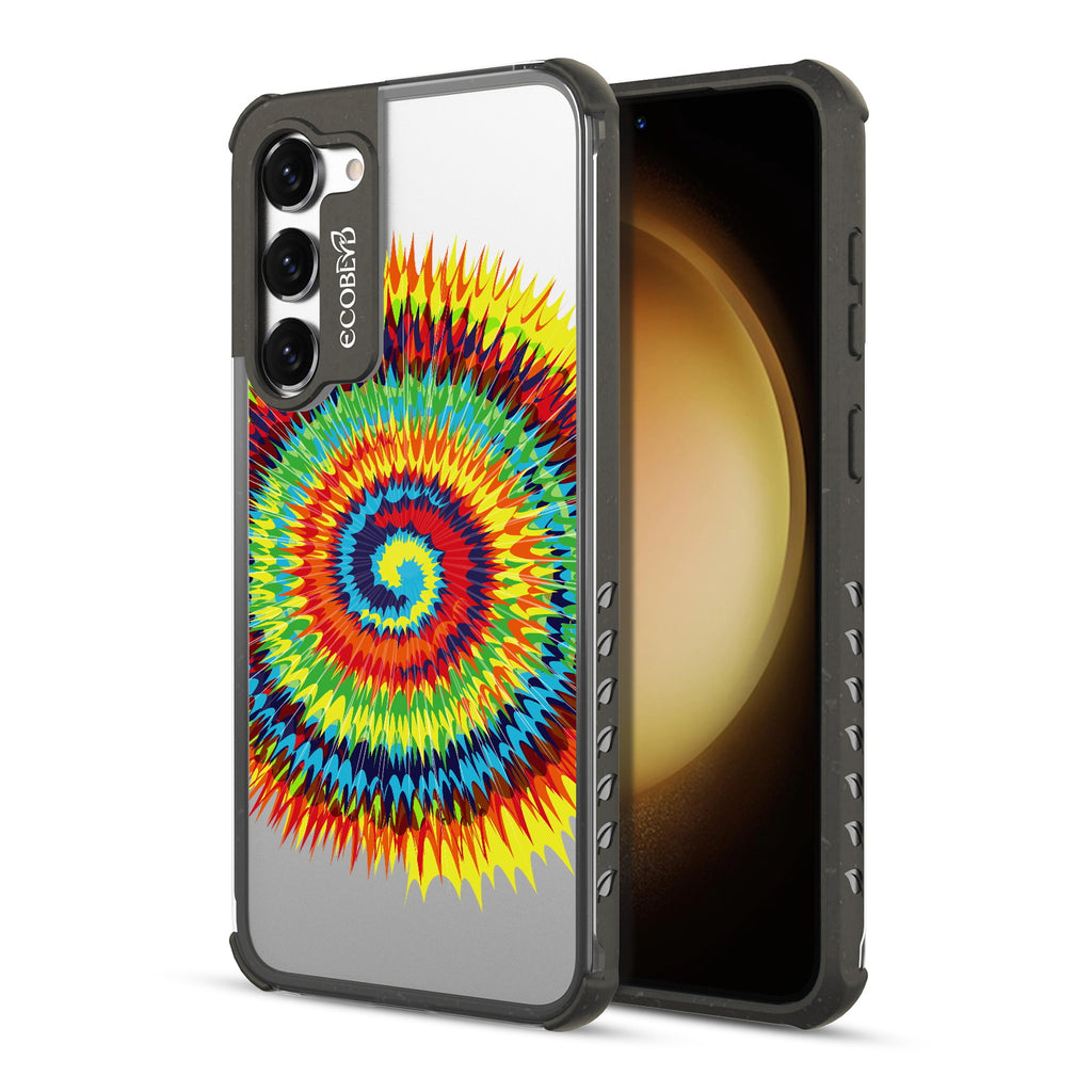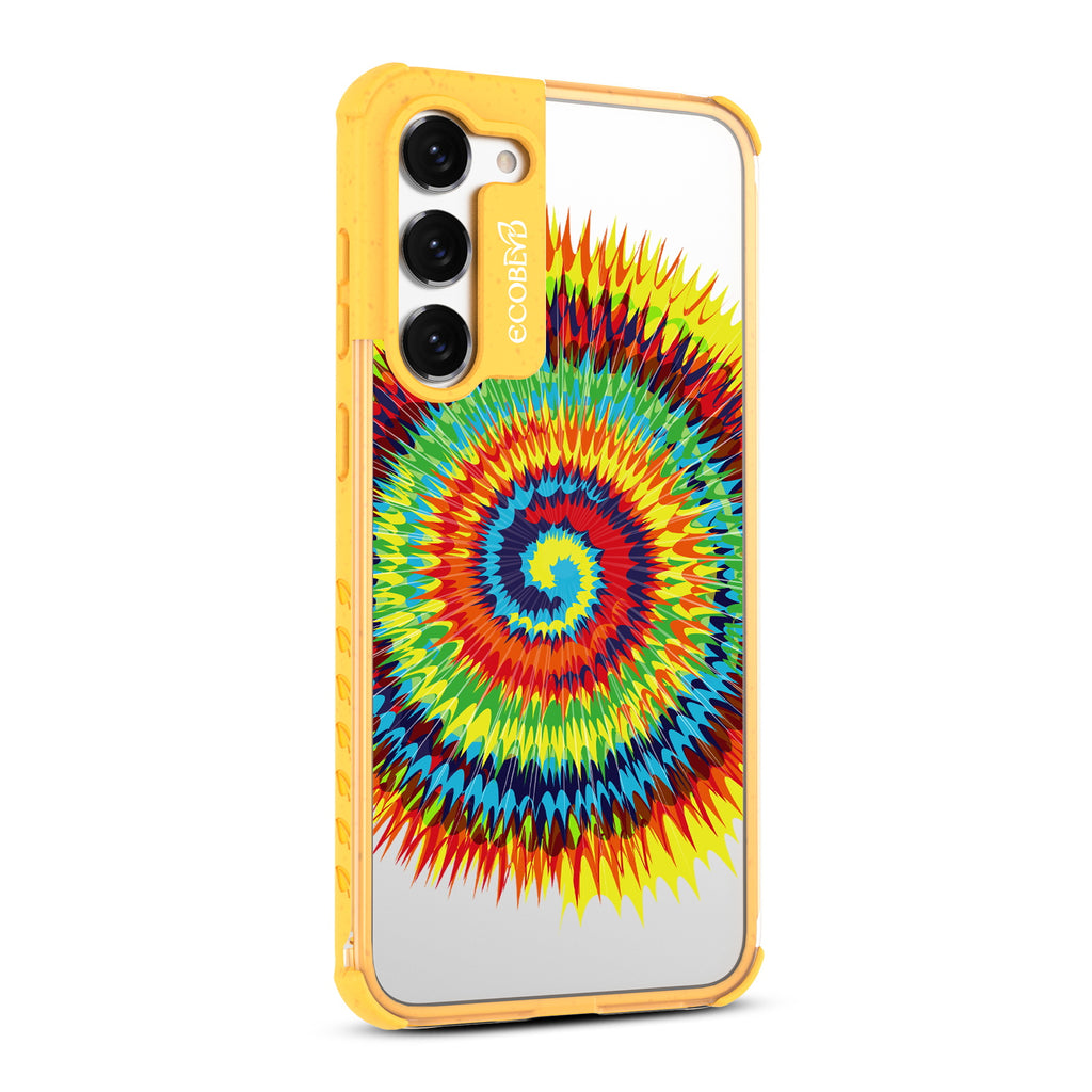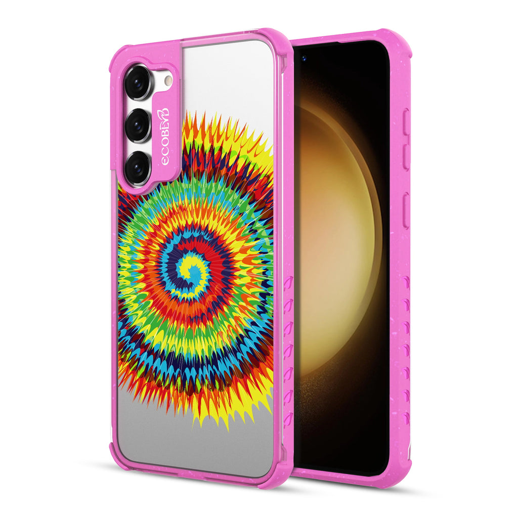 Bringing back the summer days of backyard BBQs, beach days, and fun in the sun, the Tie Dye design on our Laguna clear Galaxy S23 case features a retro rainbow swirl pattern giving your phone an eye-catching twist.