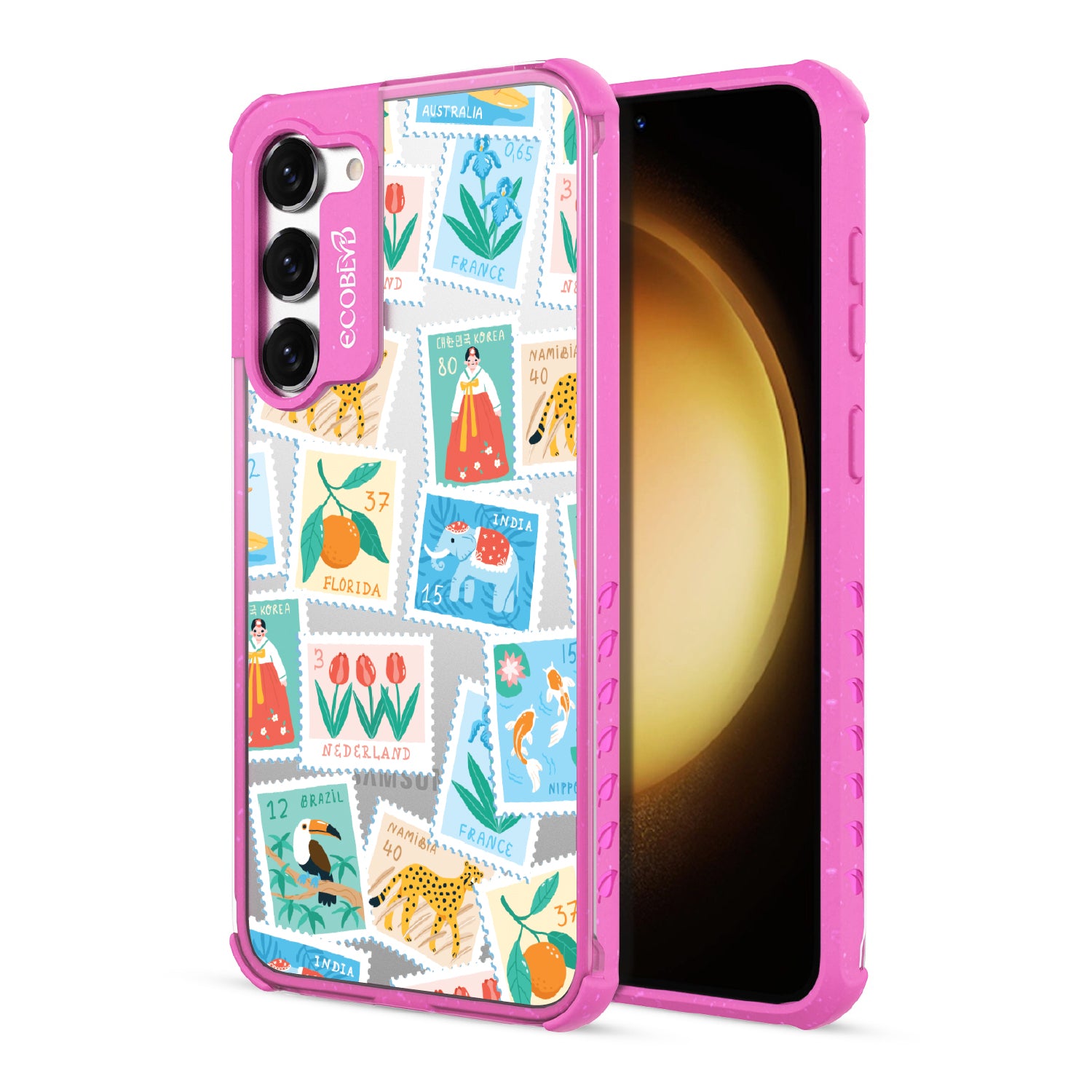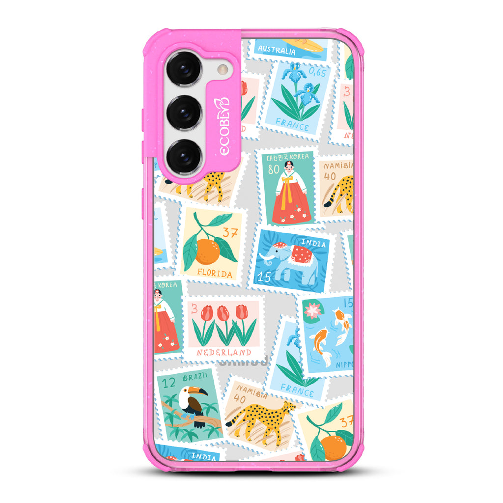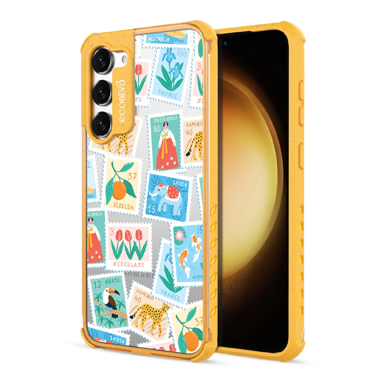 Collect a world of memories with the Wish You Were Here design on our Laguna clear Galaxy S23 case, a patchwork of postcard-perfect stamps from Florida to France. Each stamp is a window into a new world, an invitation to gather stories from far and wide. Decorate your phone with this mosaic of travel logs, and let it be a colorful collage of all the places that whisper, 'Wish you were here.'