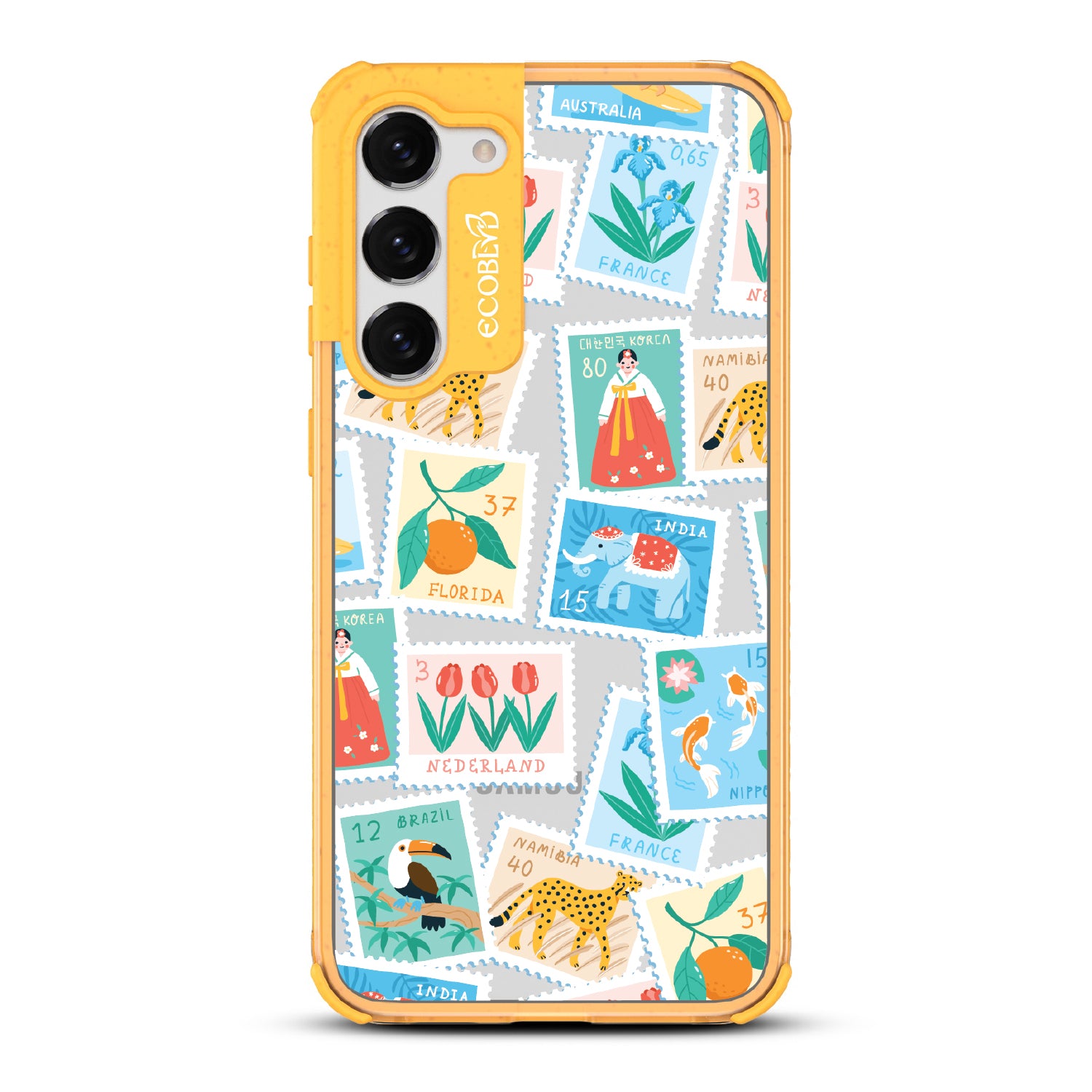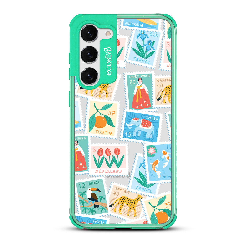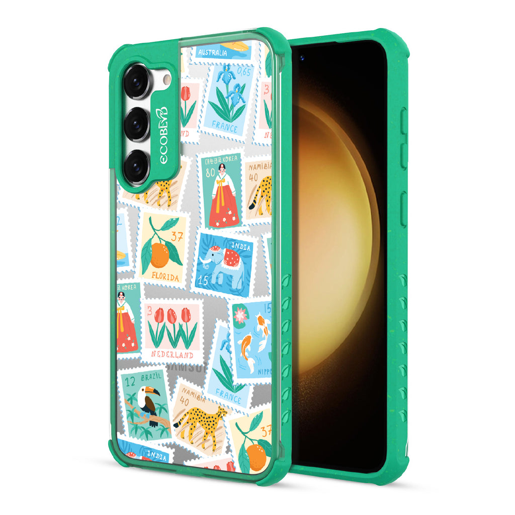 Collect a world of memories with the Wish You Were Here design on our Laguna clear Galaxy S23 case, a patchwork of postcard-perfect stamps from Florida to France. Each stamp is a window into a new world, an invitation to gather stories from far and wide. Decorate your phone with this mosaic of travel logs, and let it be a colorful collage of all the places that whisper, 'Wish you were here.'