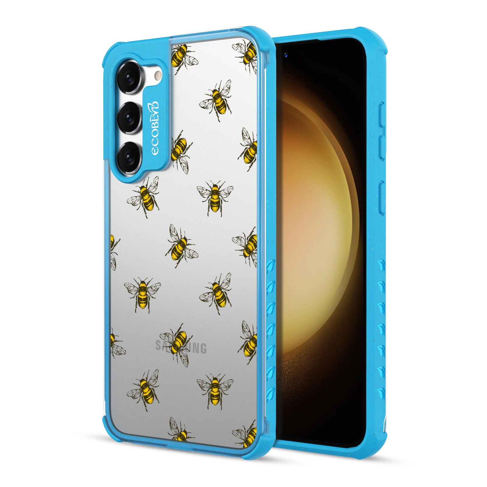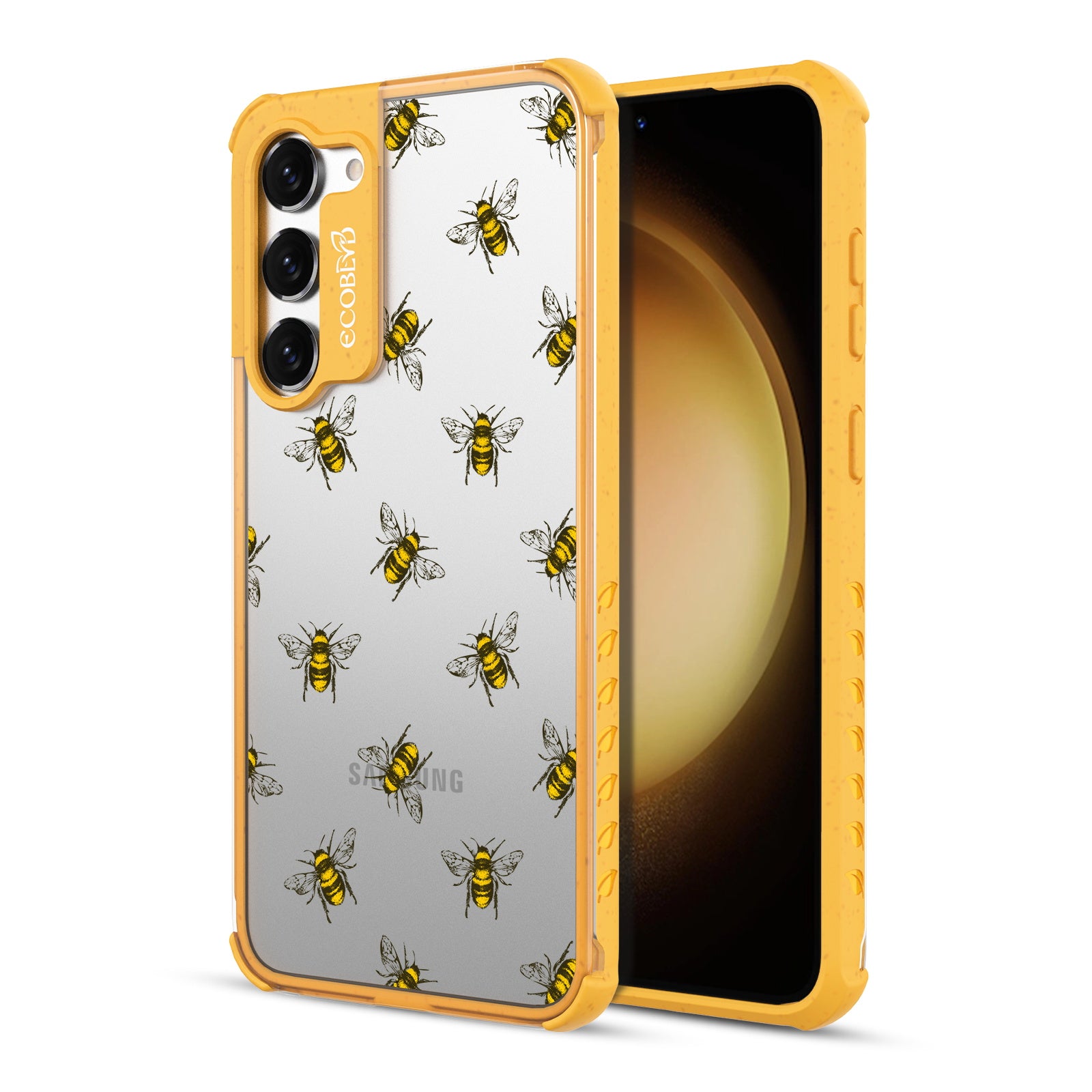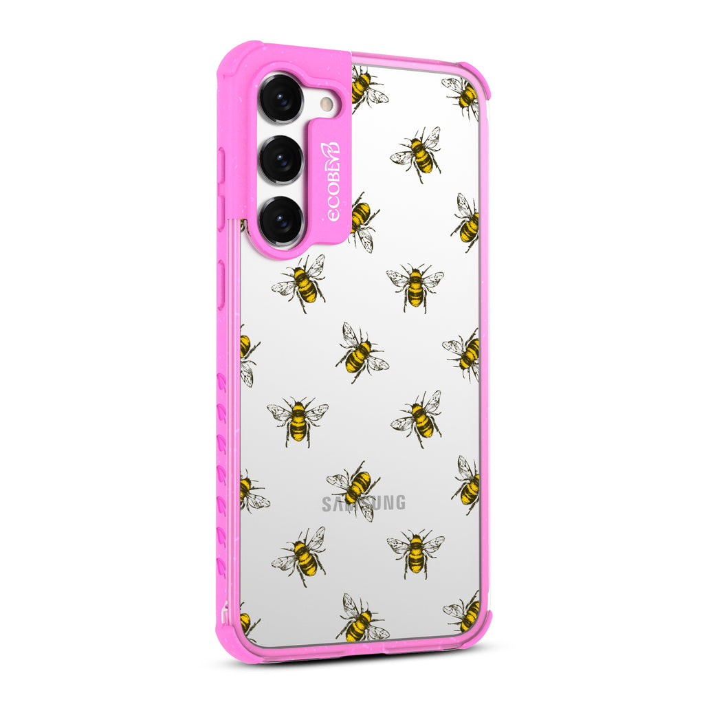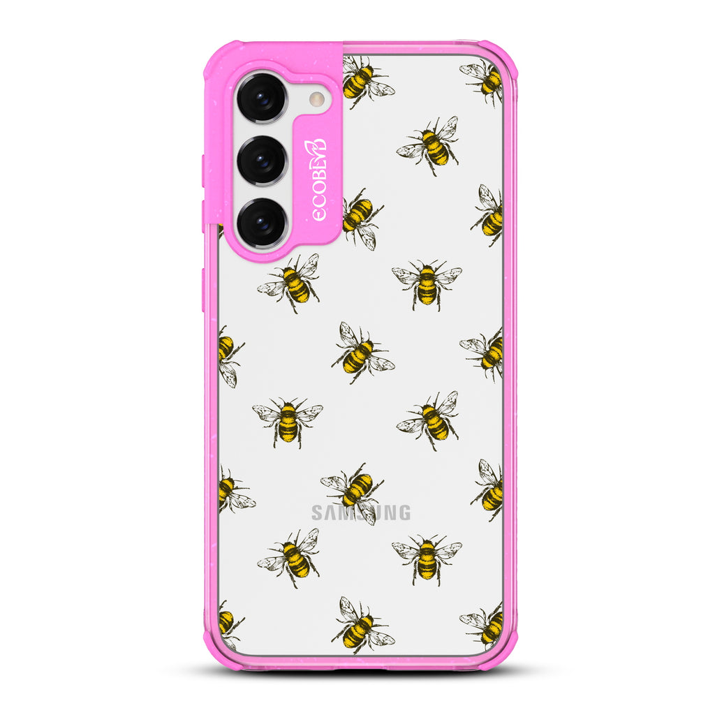 Give your phone and style a new reason to buzz, as the Bees design on our Laguna clear compostable Samsung Galaxy S23 Plus case features a group of busy honey bees flying around it across five colors: Midnight Black, Cascade Blue, Foliage Green, Illuminating Yellow, and Wildflower Pink.