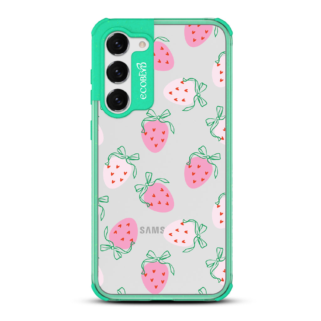 Galaxy S23 Plus phone case lives up to its name with luscious strawberries and coquettish bows, giving your phone a picked-for-you look. This pattern brings a touch of playful femininity, perfect for any coquette girl. Sweeten things up and show off a truly juicy style. Grab the Berry Cute case and let your phone be the berry best!
