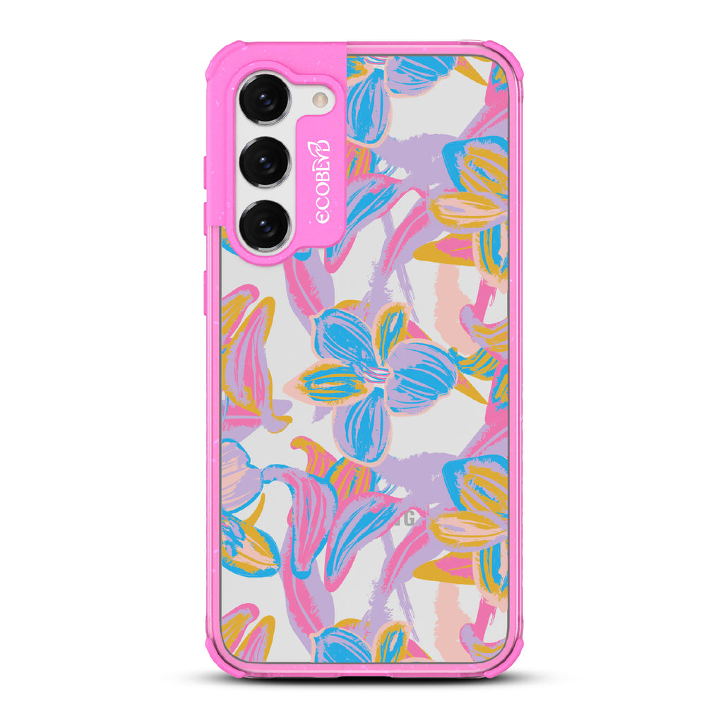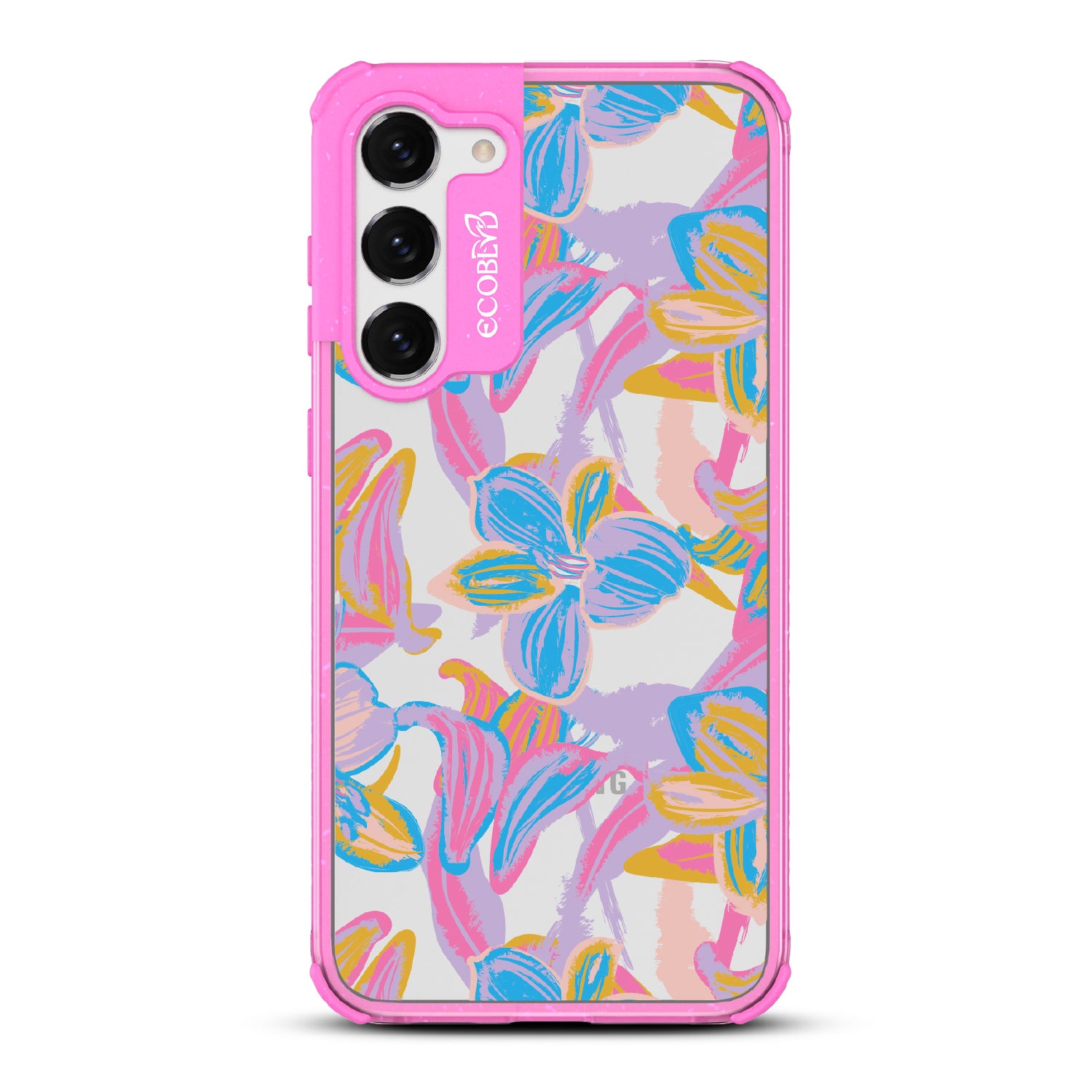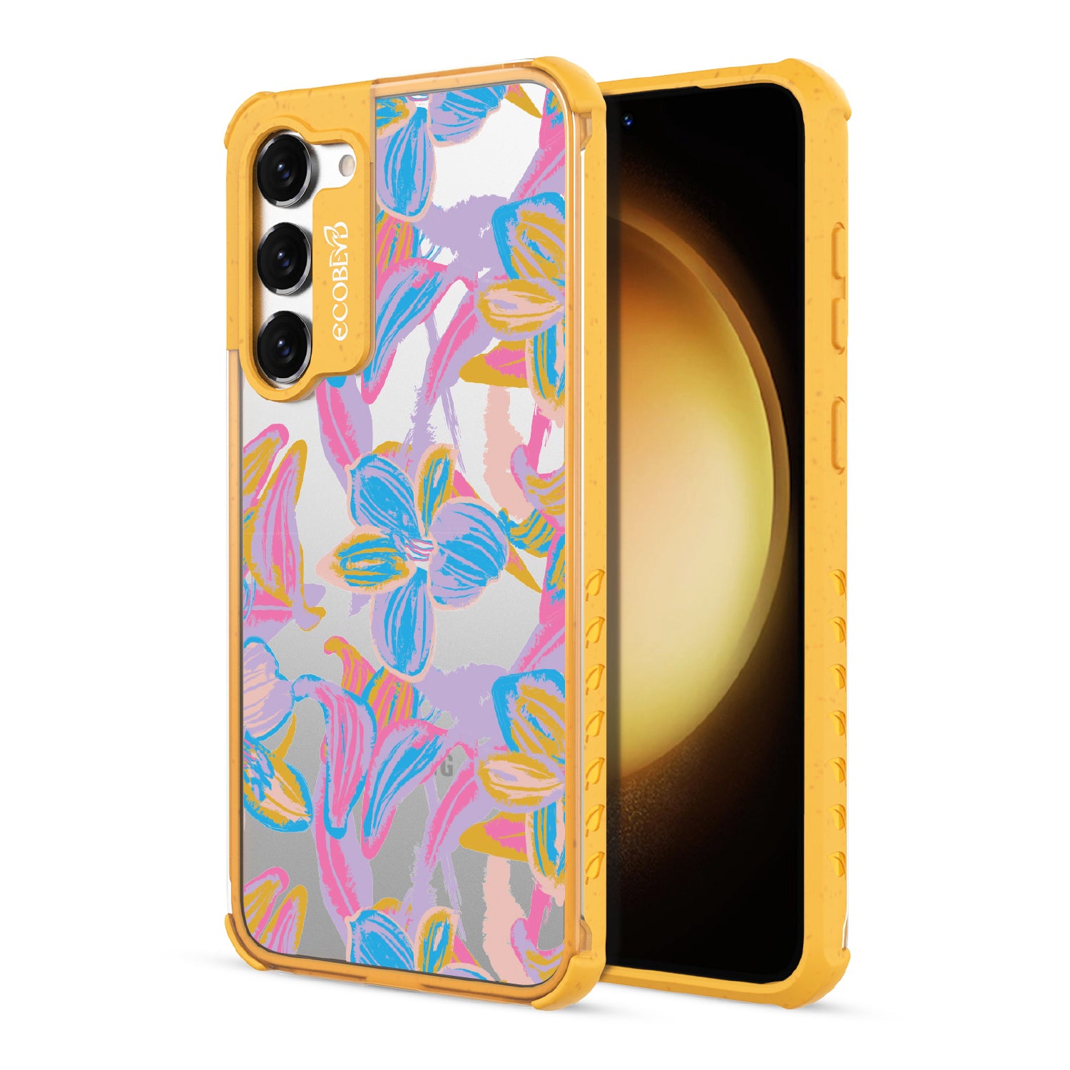Illuminate your look with the Electric Feel design on our Laguna clear Galaxy S23 Plus case, where pastel flowers glow with an almost neon vibrance. Pastel petals infused with neon-like brightness give this design an electric feel, adding a modern twist to the natural beauty of flowers. Energize your phone and style with a burst of spring's electric beauty, making every moment vibrant and lively.