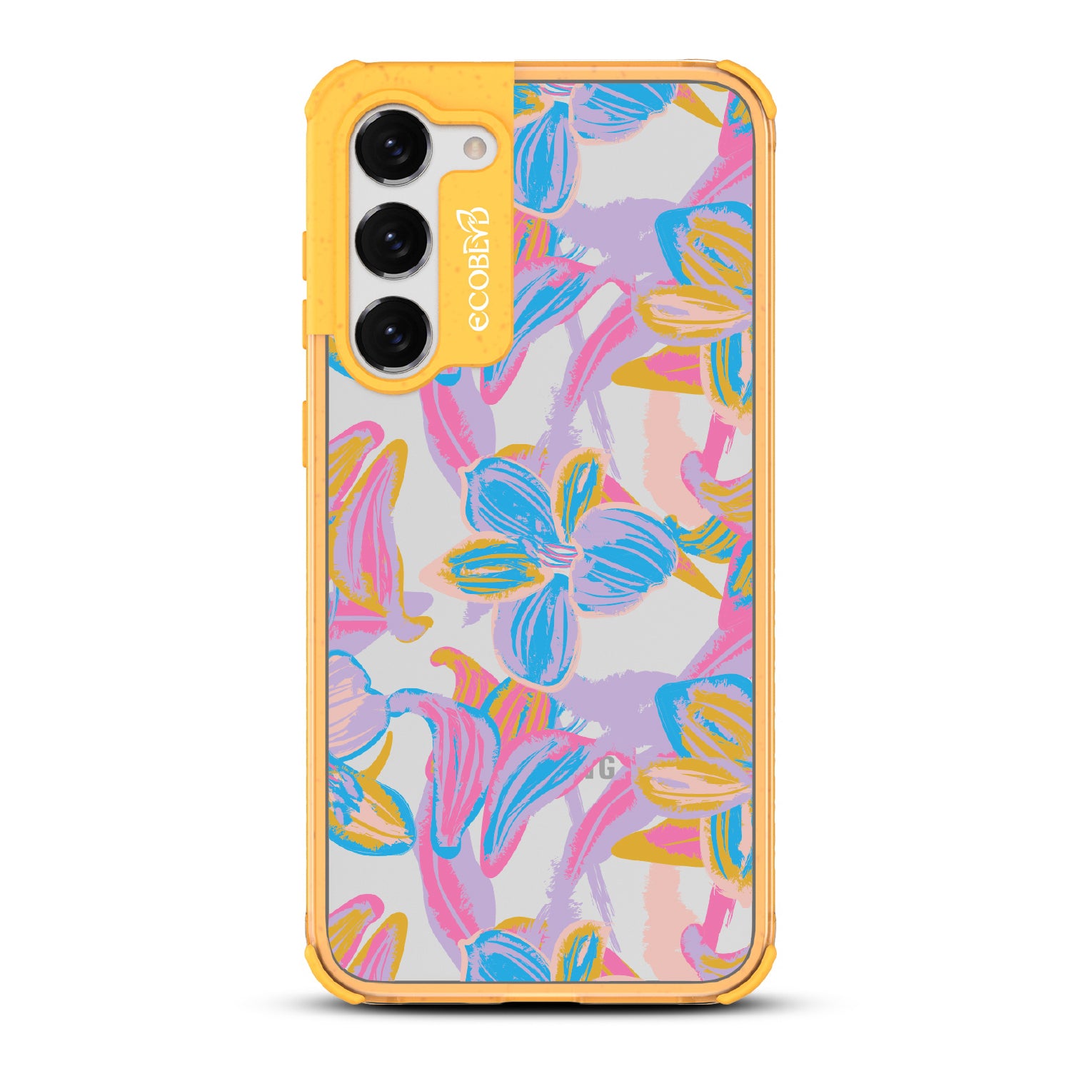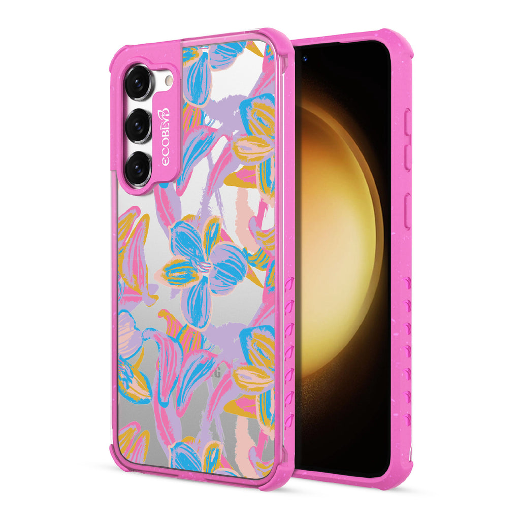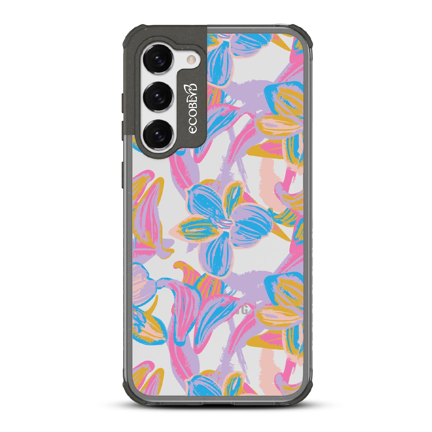 Illuminate your look with the Electric Feel design on our Laguna clear Galaxy S23 Plus case, where pastel flowers glow with an almost neon vibrance. Pastel petals infused with neon-like brightness give this design an electric feel, adding a modern twist to the natural beauty of flowers. Energize your phone and style with a burst of spring's electric beauty, making every moment vibrant and lively.